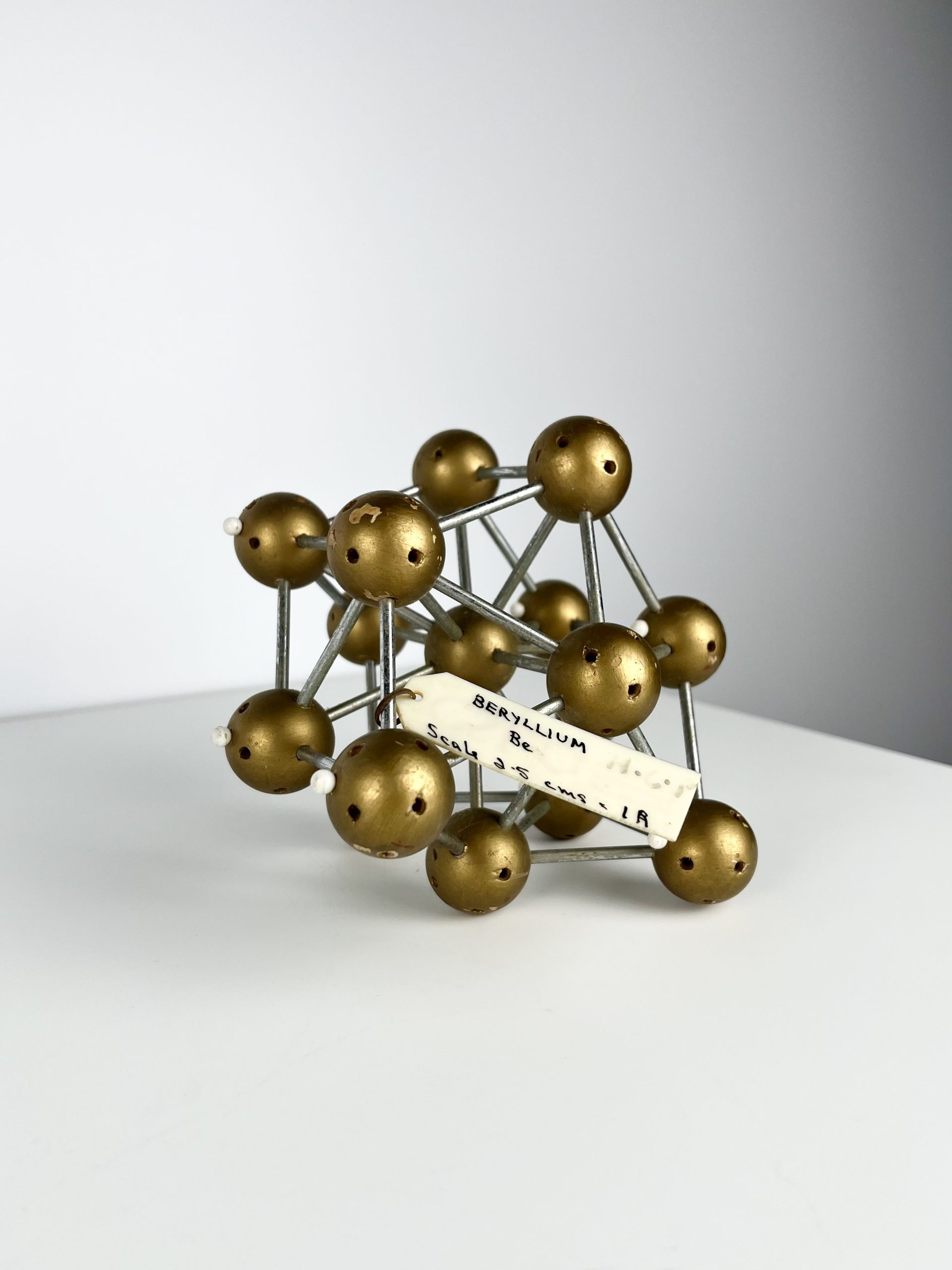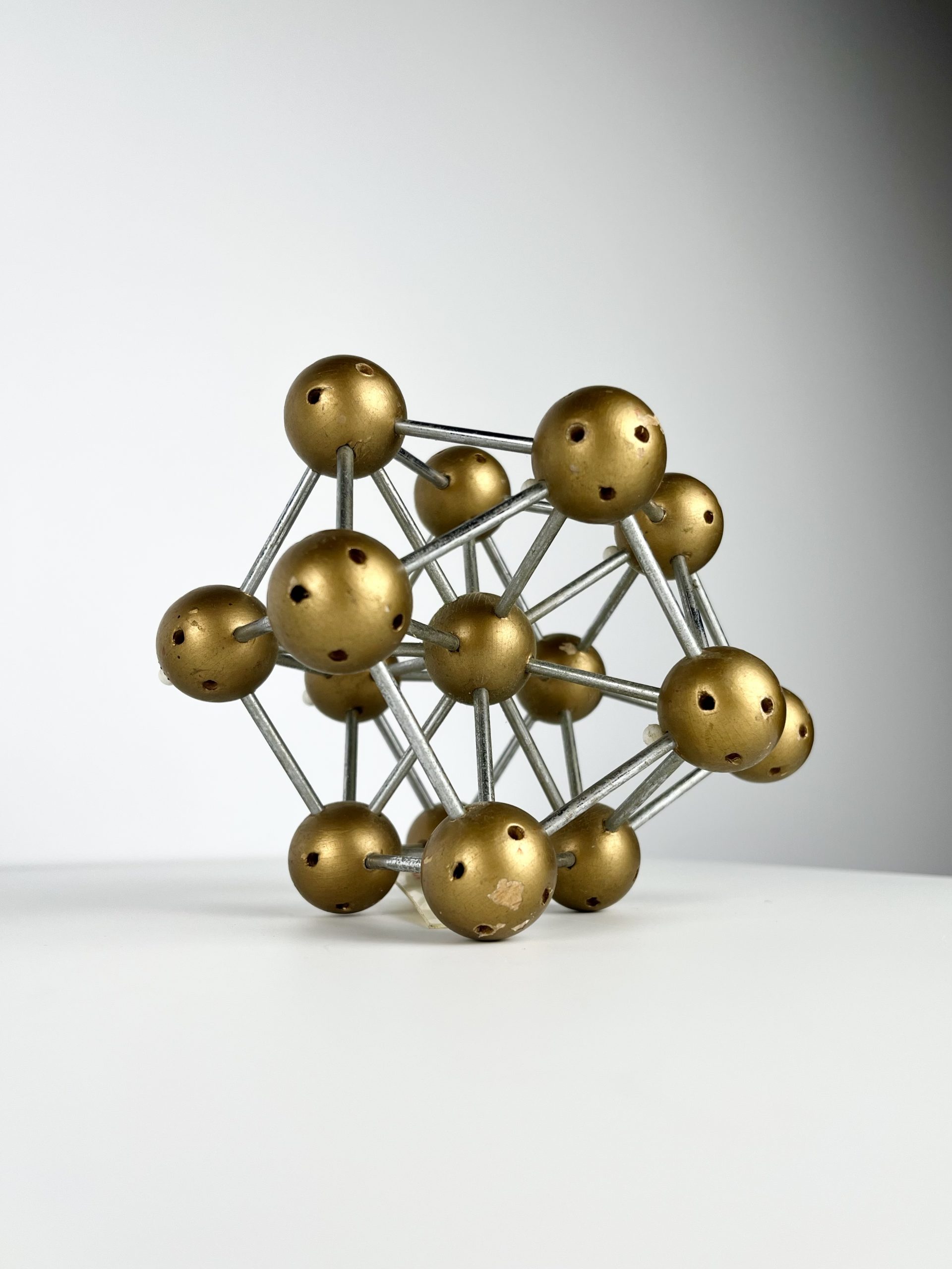 This awesome molecular model was produced as a teaching aid during the 1950s, by Crystal Structures Ltd of Cambridge. Coloured wooden spheres are connected by steel rods, creating this sculptural, atomic form.