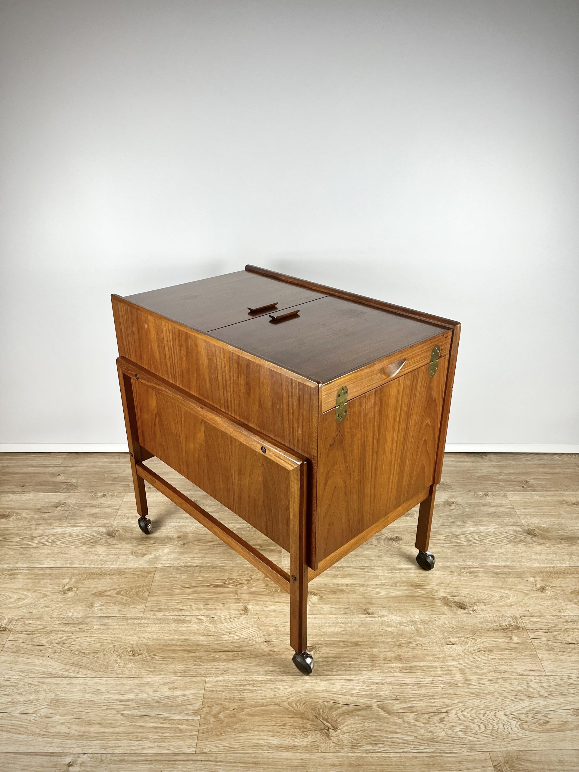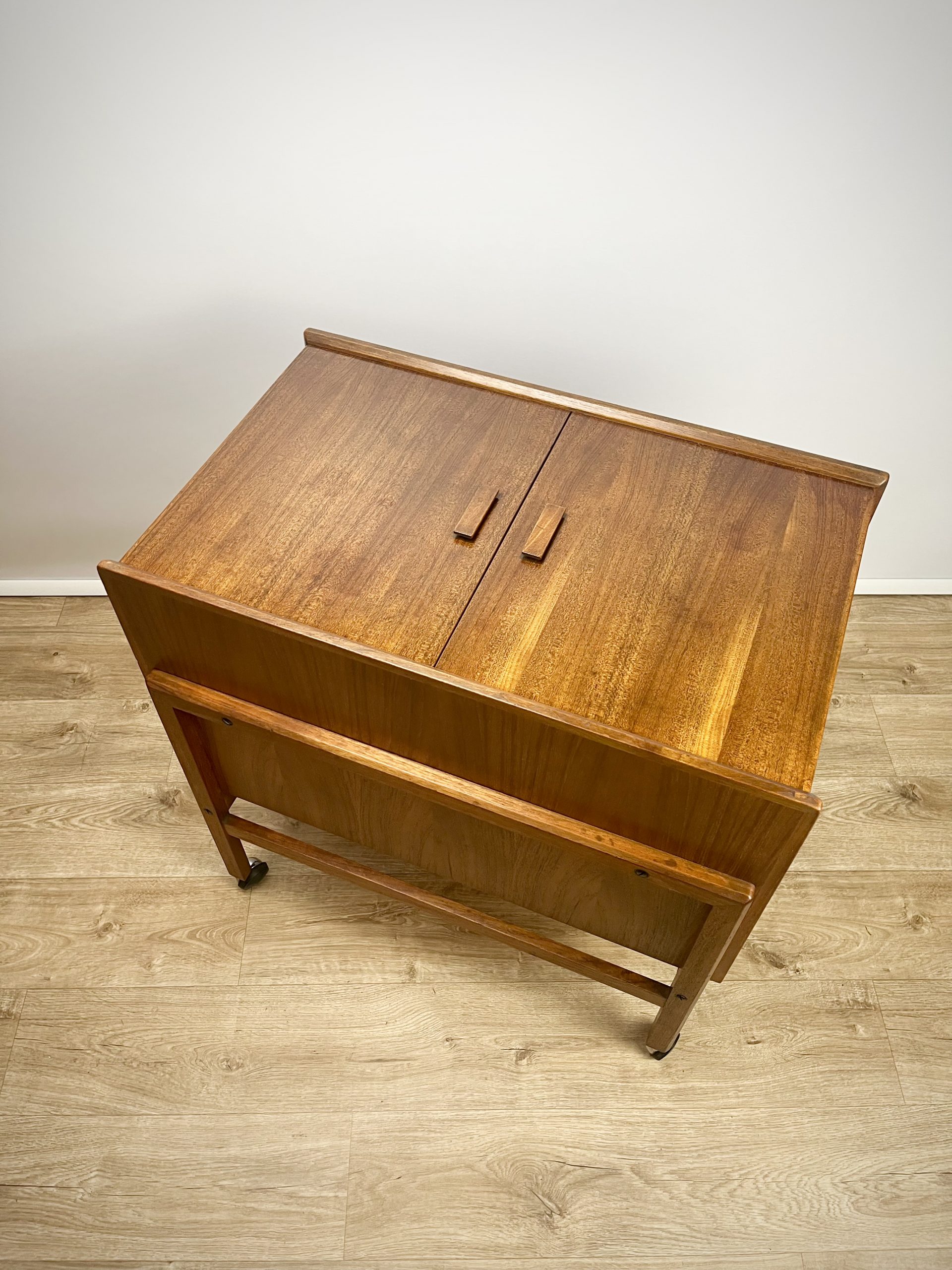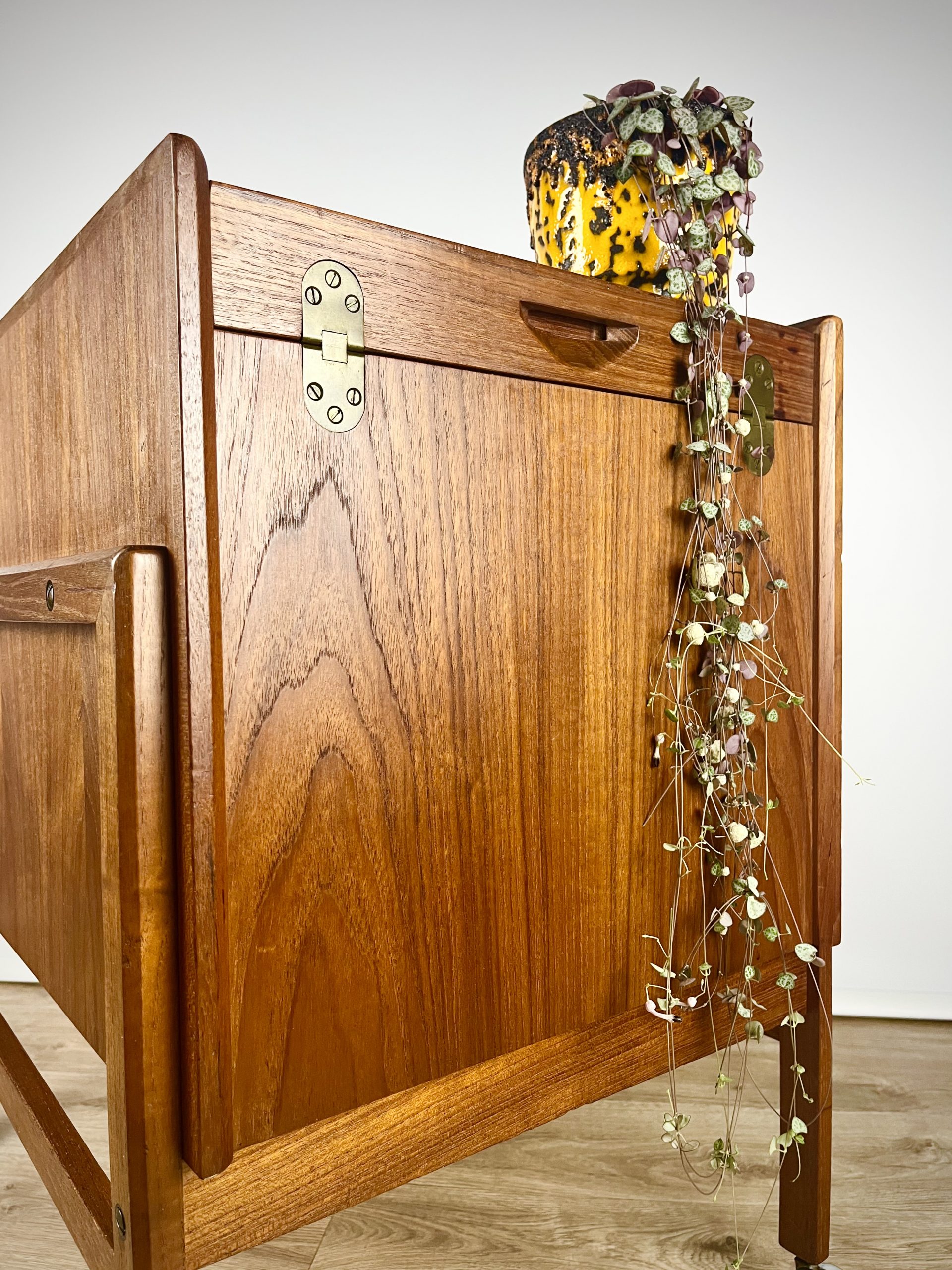 This cracking piece of Scandinavian design doubles as a side table when not in use, and comes in very good vintage condition with only a little wear to the interior and beautifully grained teak veneers.