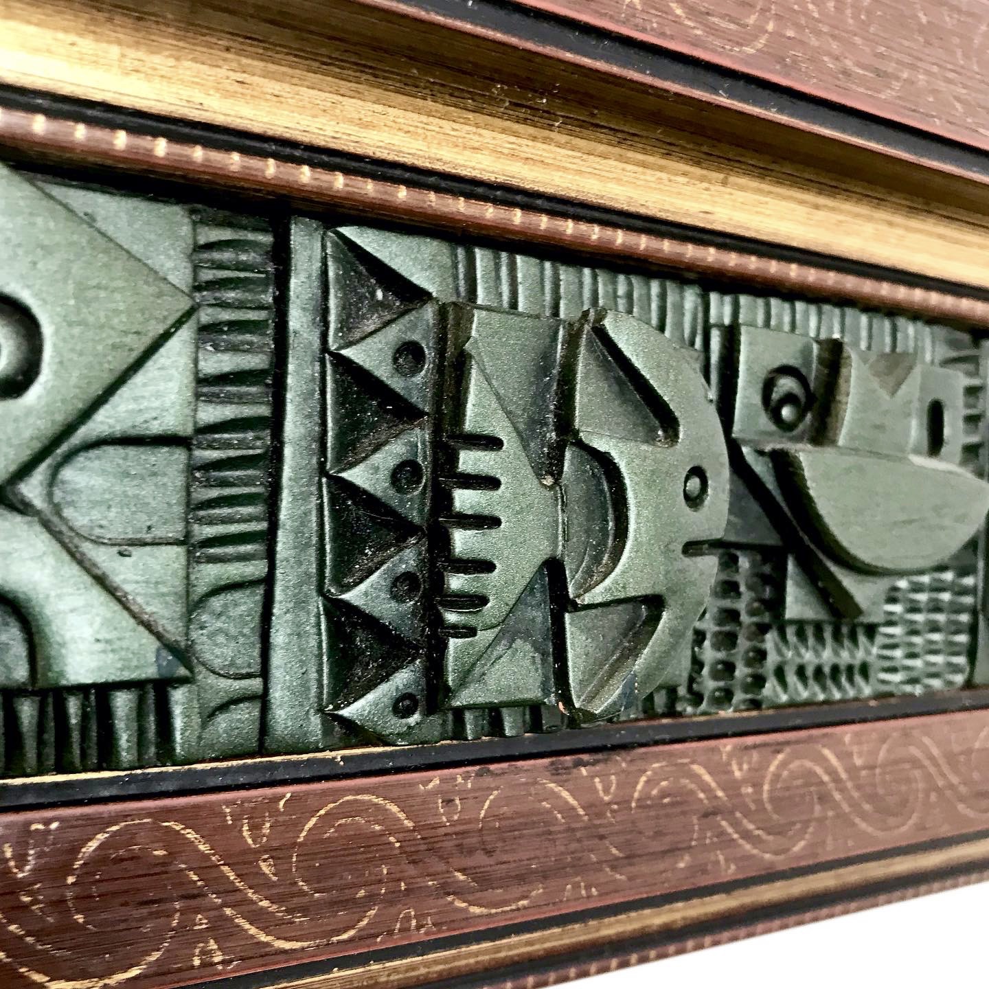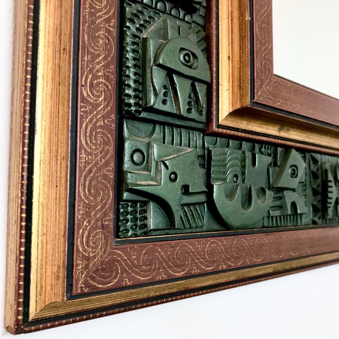 In the 1950s he channeled his talents into creating unique works of art from his lively home in Hackney. He often used these Picasso and Hepworth inspired tiles to adorn mirrors and picture frames and even a four-poster bed, while others were incorporated into panels and wall reliefs.