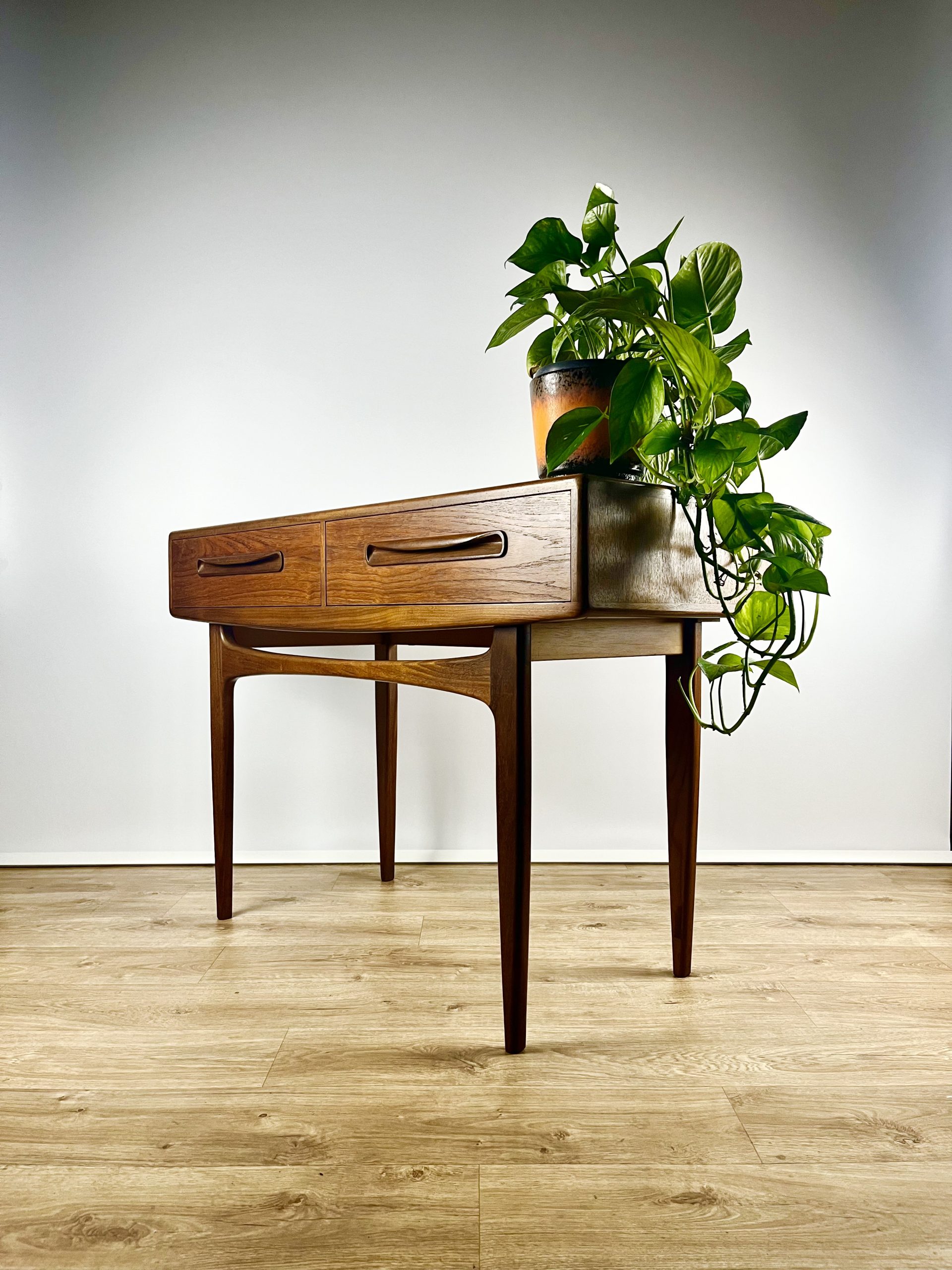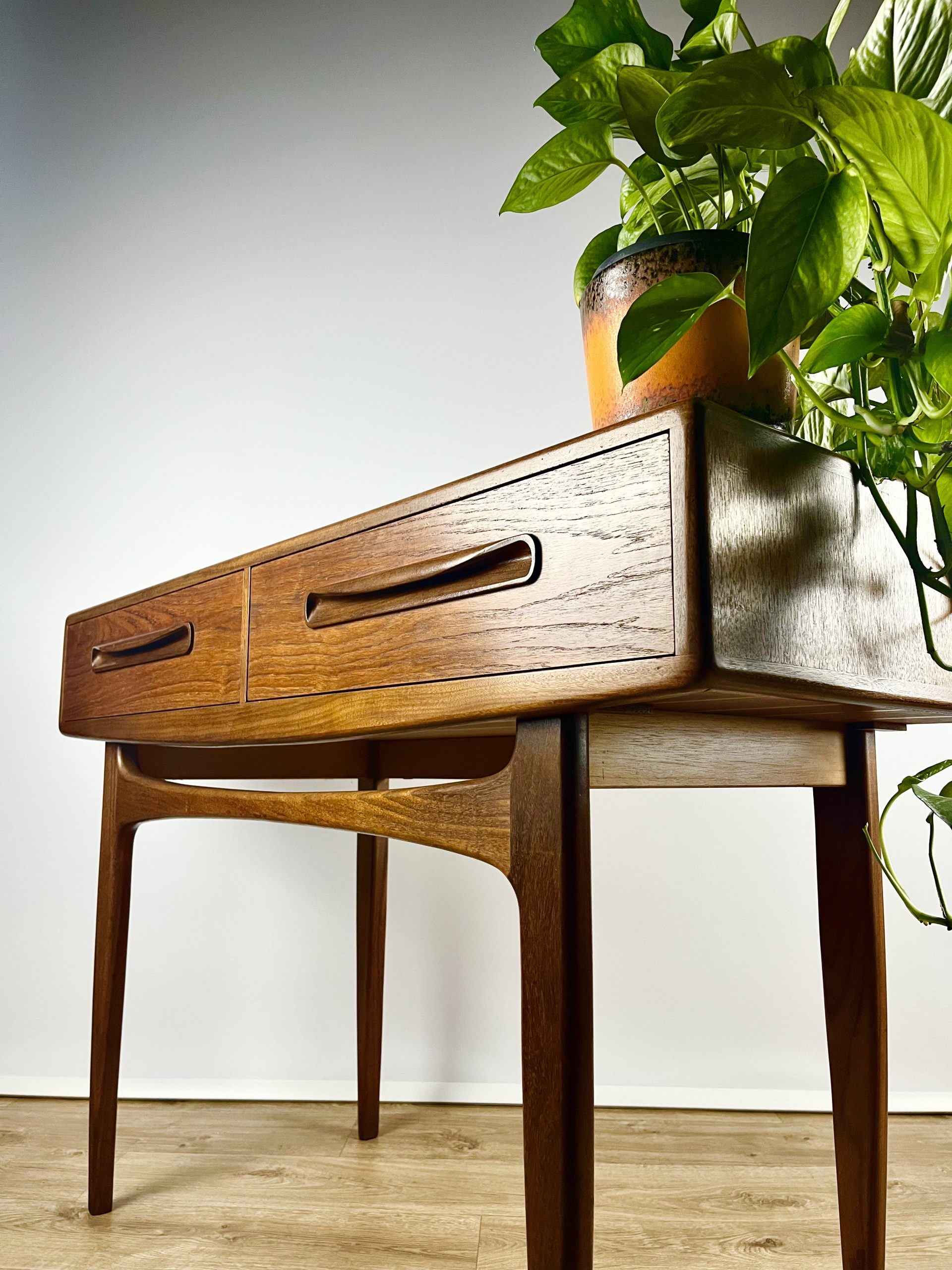 Designed by Victor Bramwell Wilkins and produced in the 1960s by British furniture icon, G Plan, this classic teak console table was part of the Fresco range, with its clean lines and stripped down design giving it a distinctive, modernist look!