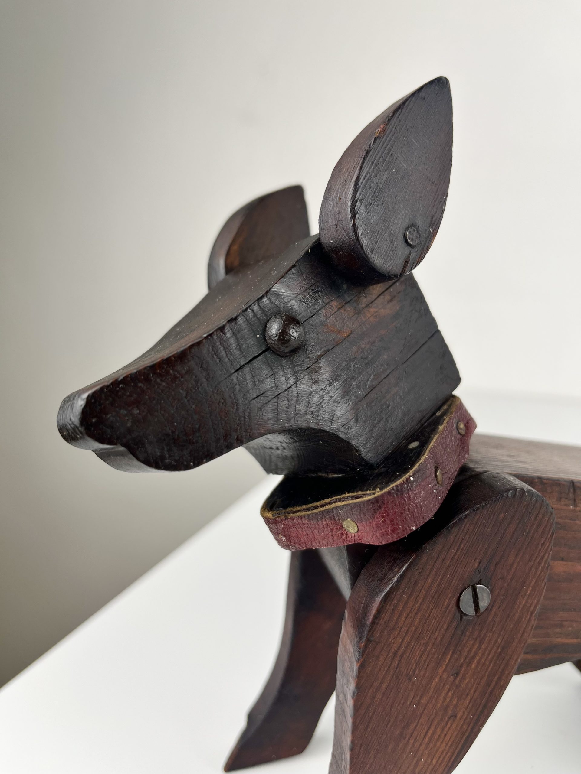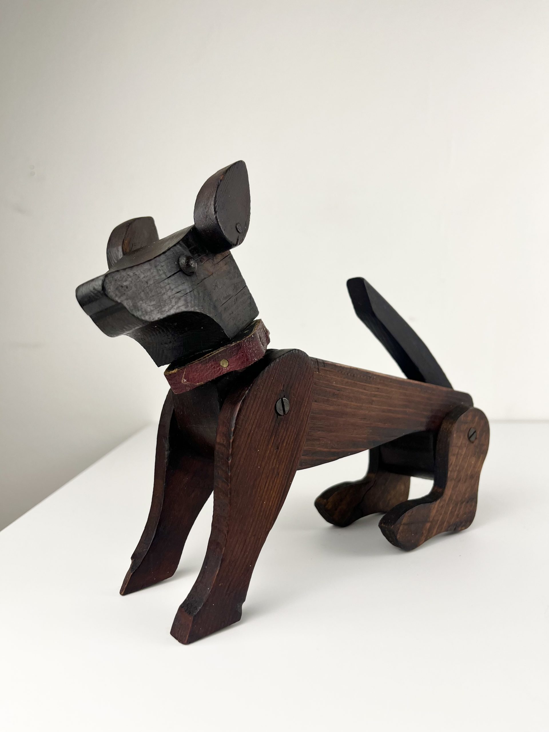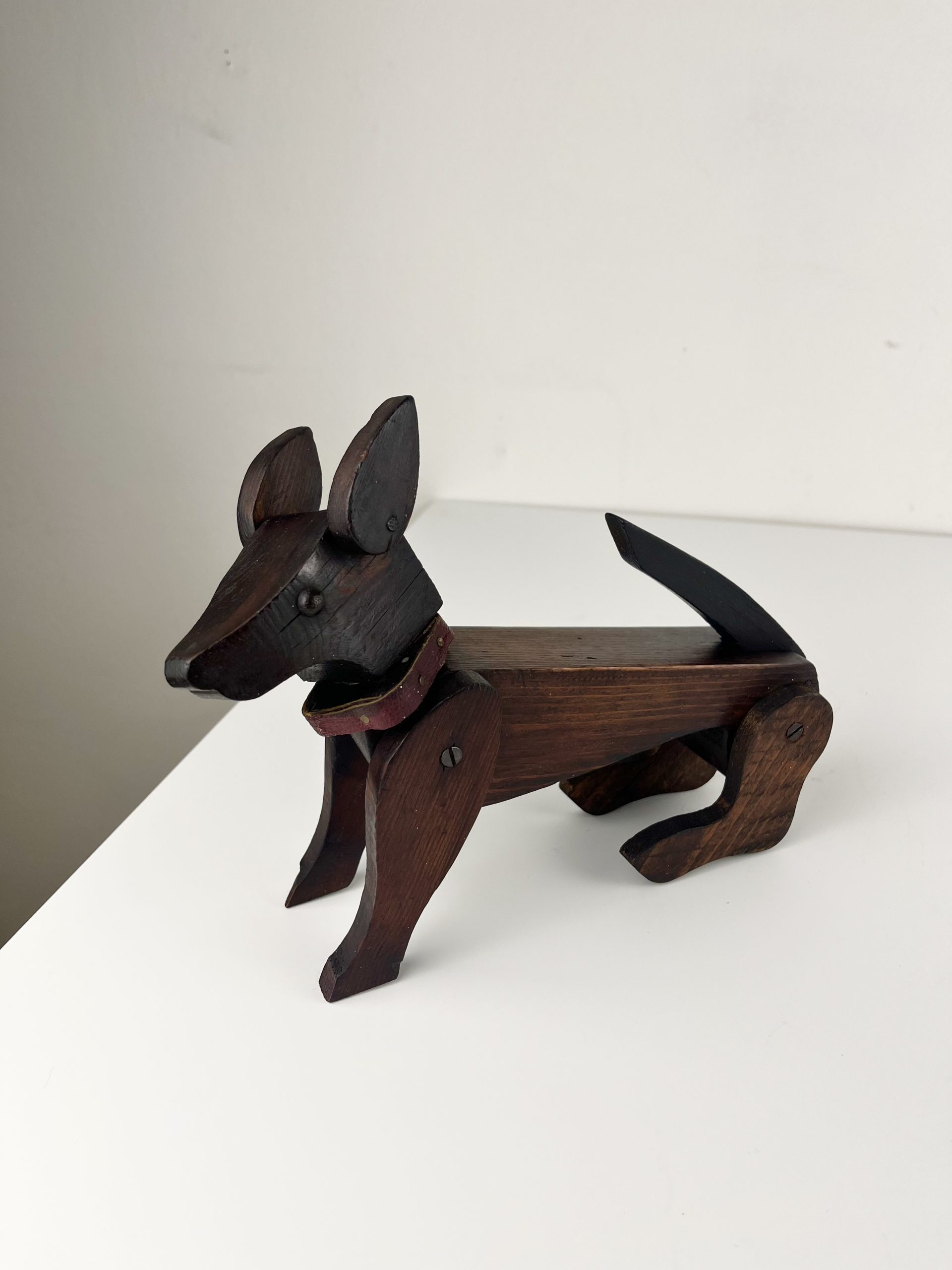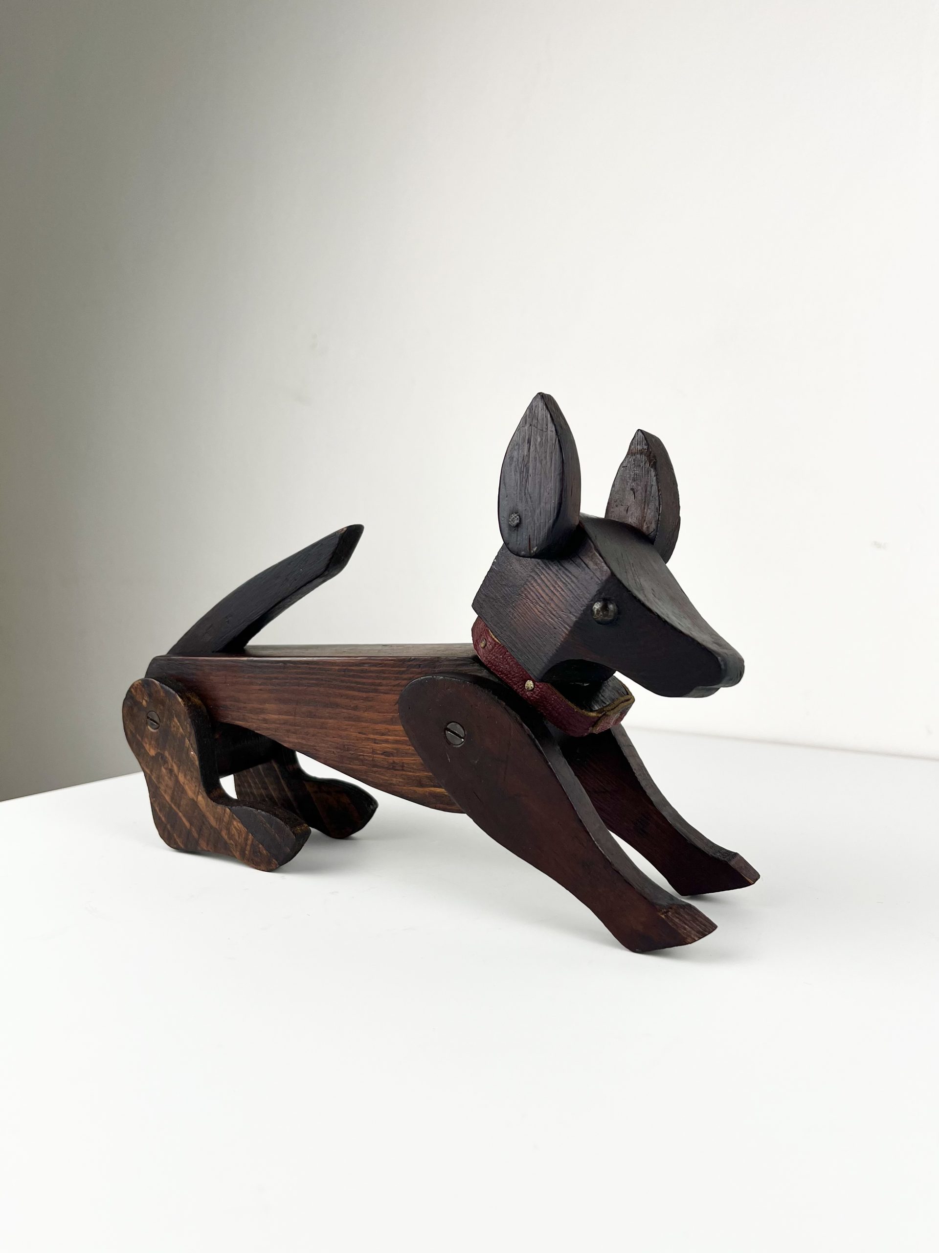 These scratch-built wooden dogs were produced as home projects throughout the 19th and early 20th centuries, and can be found in a variety of different styles. They are now highly collectible and considered little works of folk art.