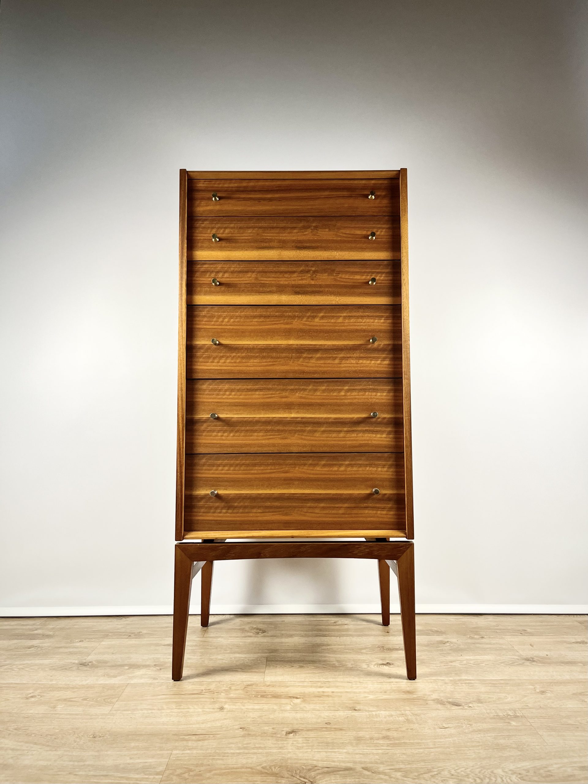 One of my all time favourite designs from one of my all time favourite designers, this majestic 1960s tall boy was designed by John Herbert and produced by quality British furniture maker, A. Younger Ltd.