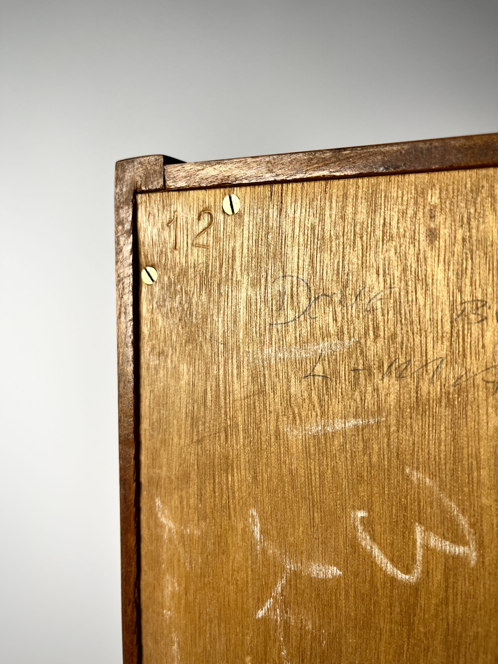 The top drawer is complete with both the manufacturer’s tag the original retailer’s label, and the carcass is engraved with the number ‘12’ on its reverse.