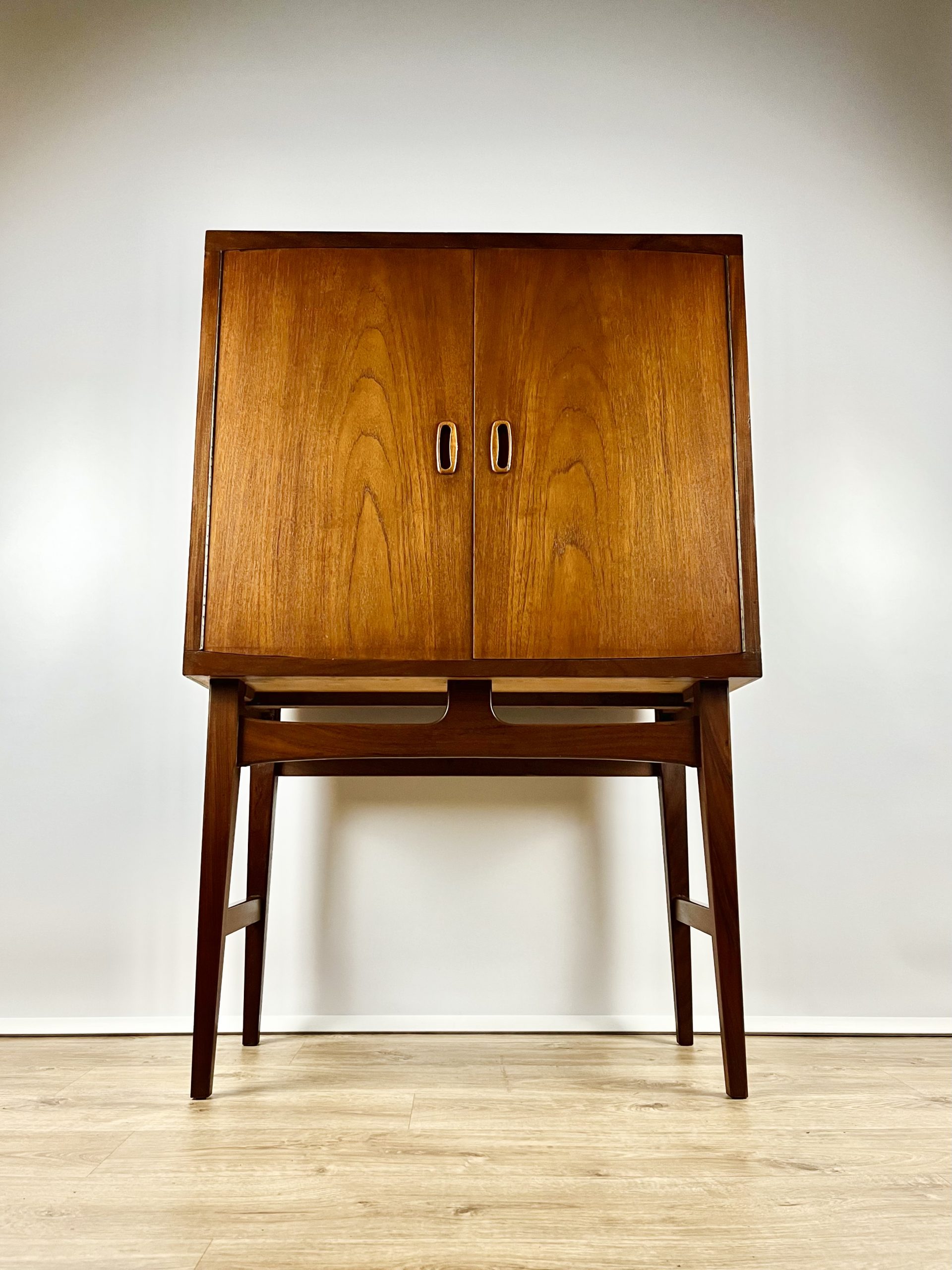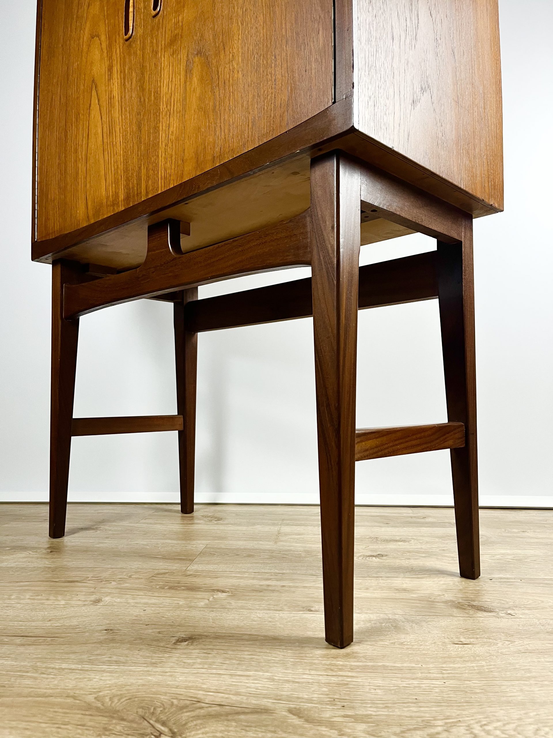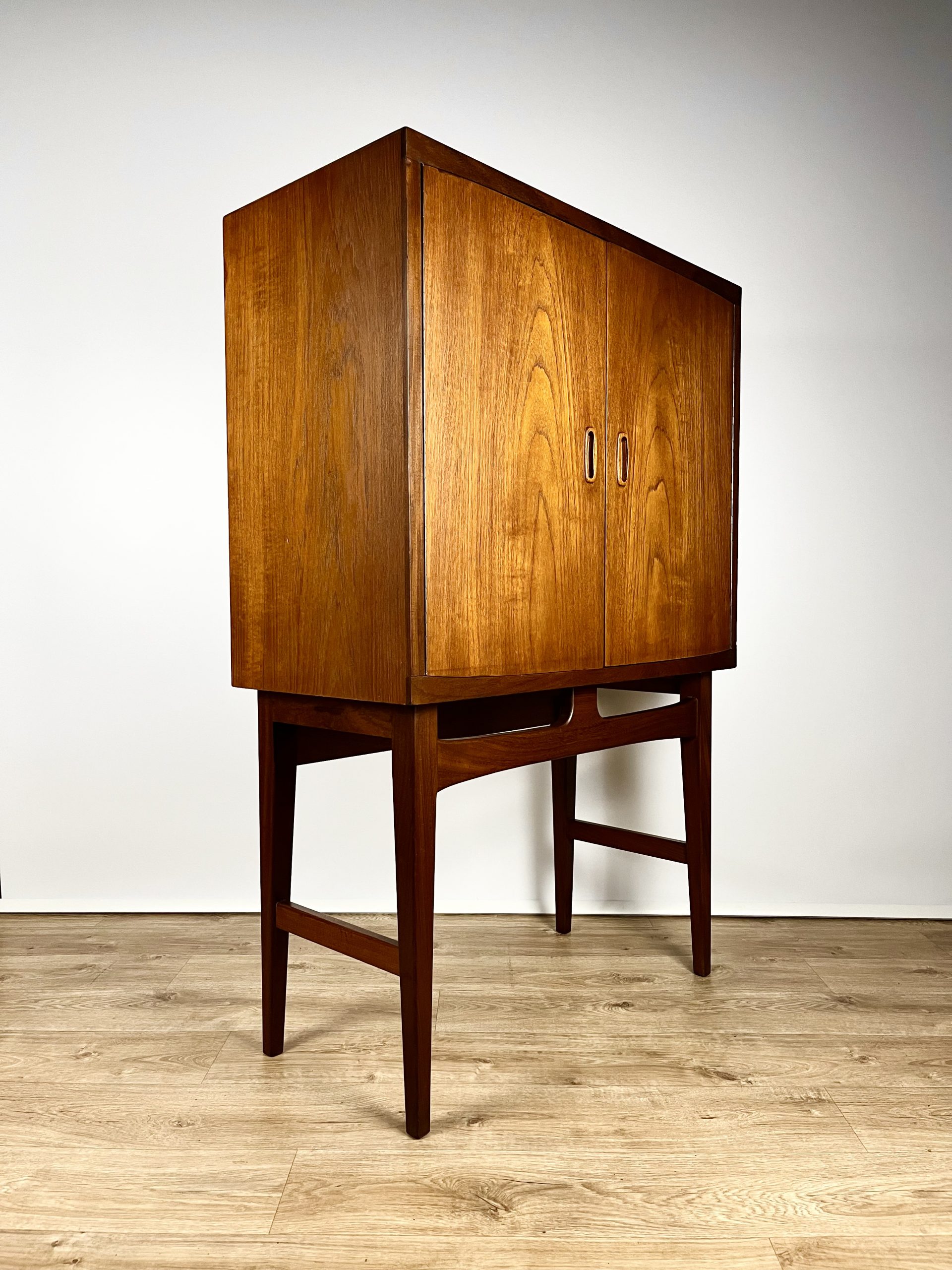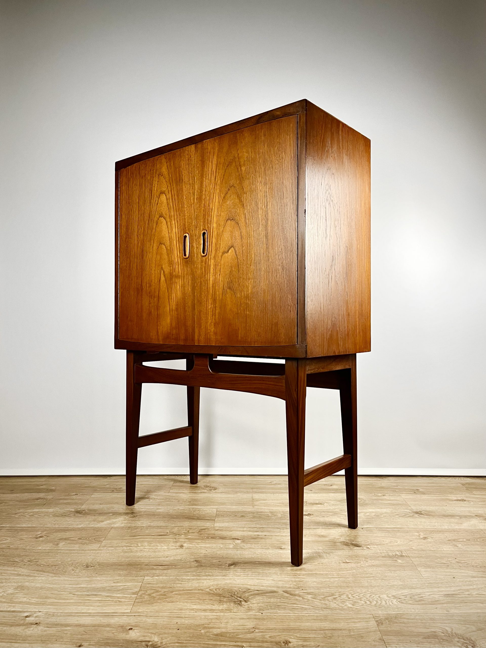 Designed by Torbjørn Afdal and produced in Norway during the 1960s, this very elegant cocktail cabinet is beautifully made with fine teak veneers and slender solid teak legs.