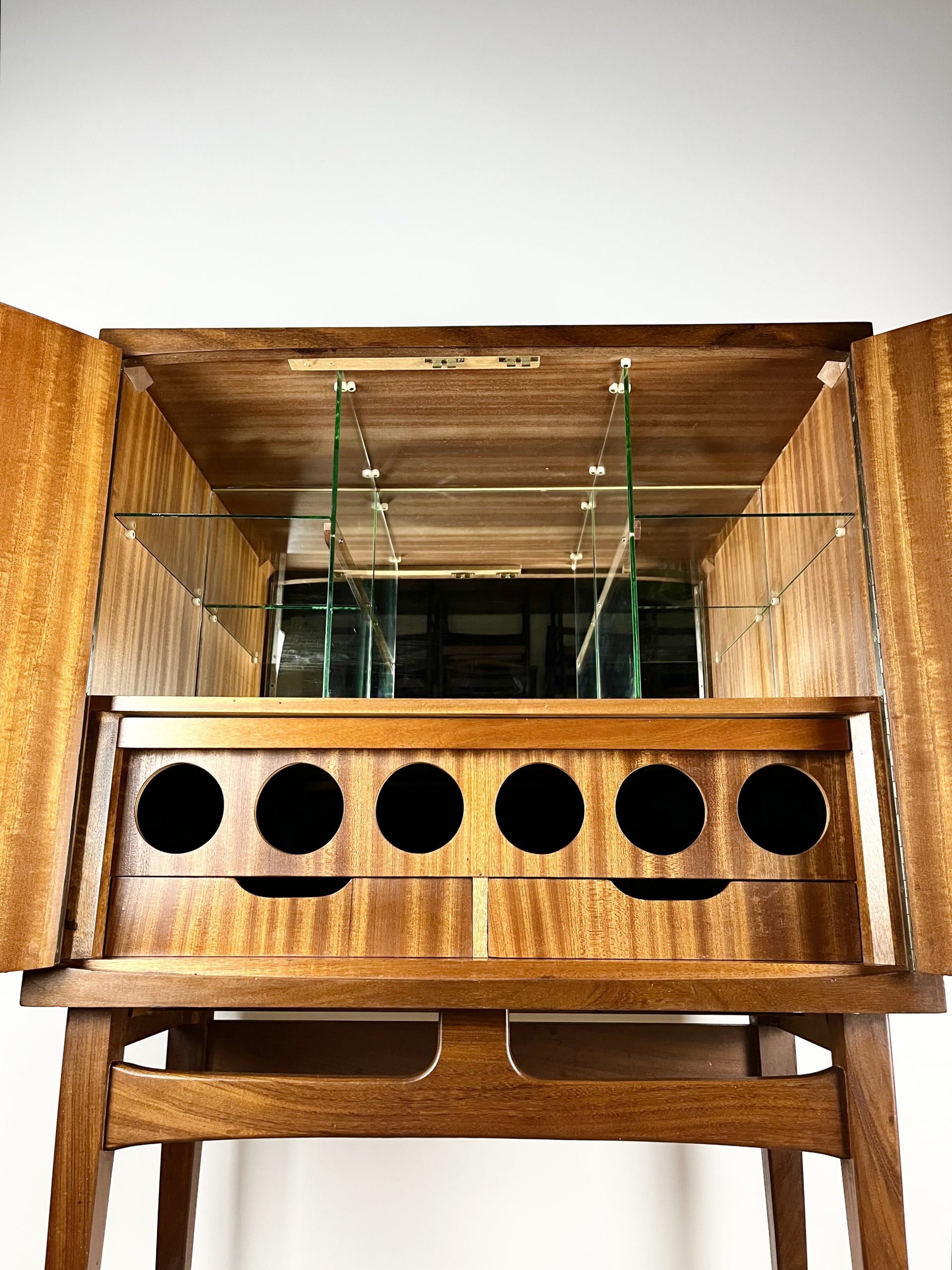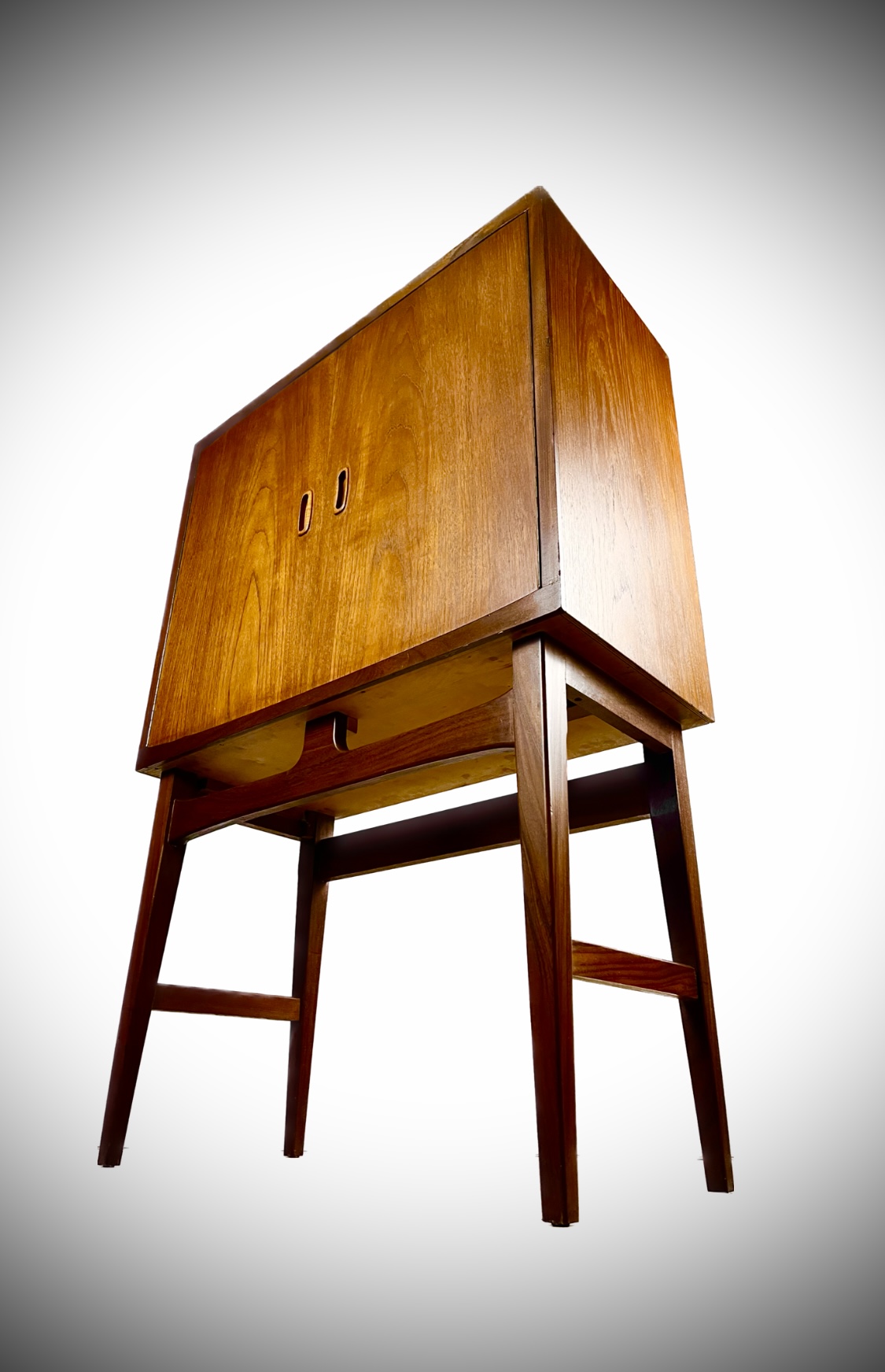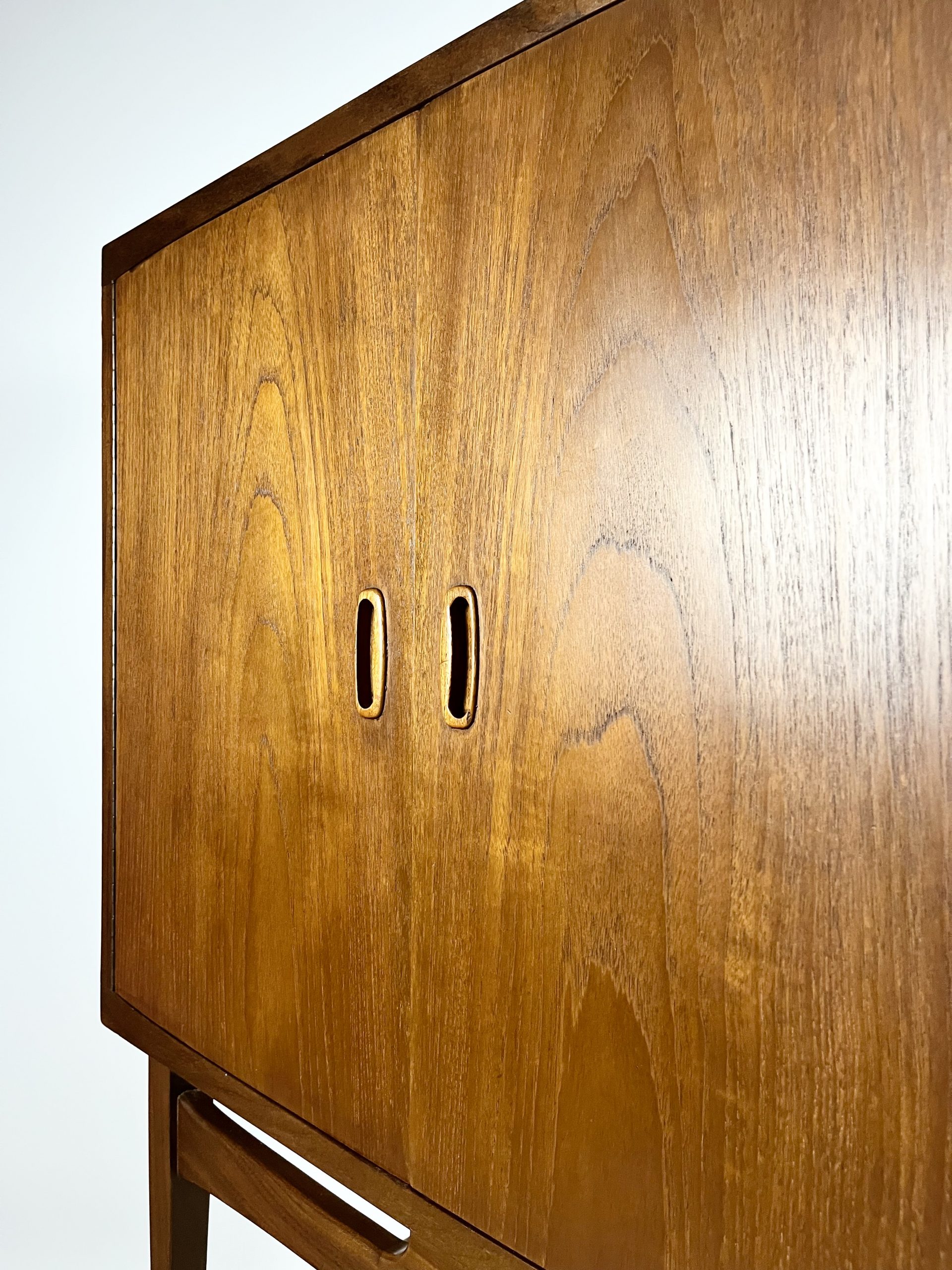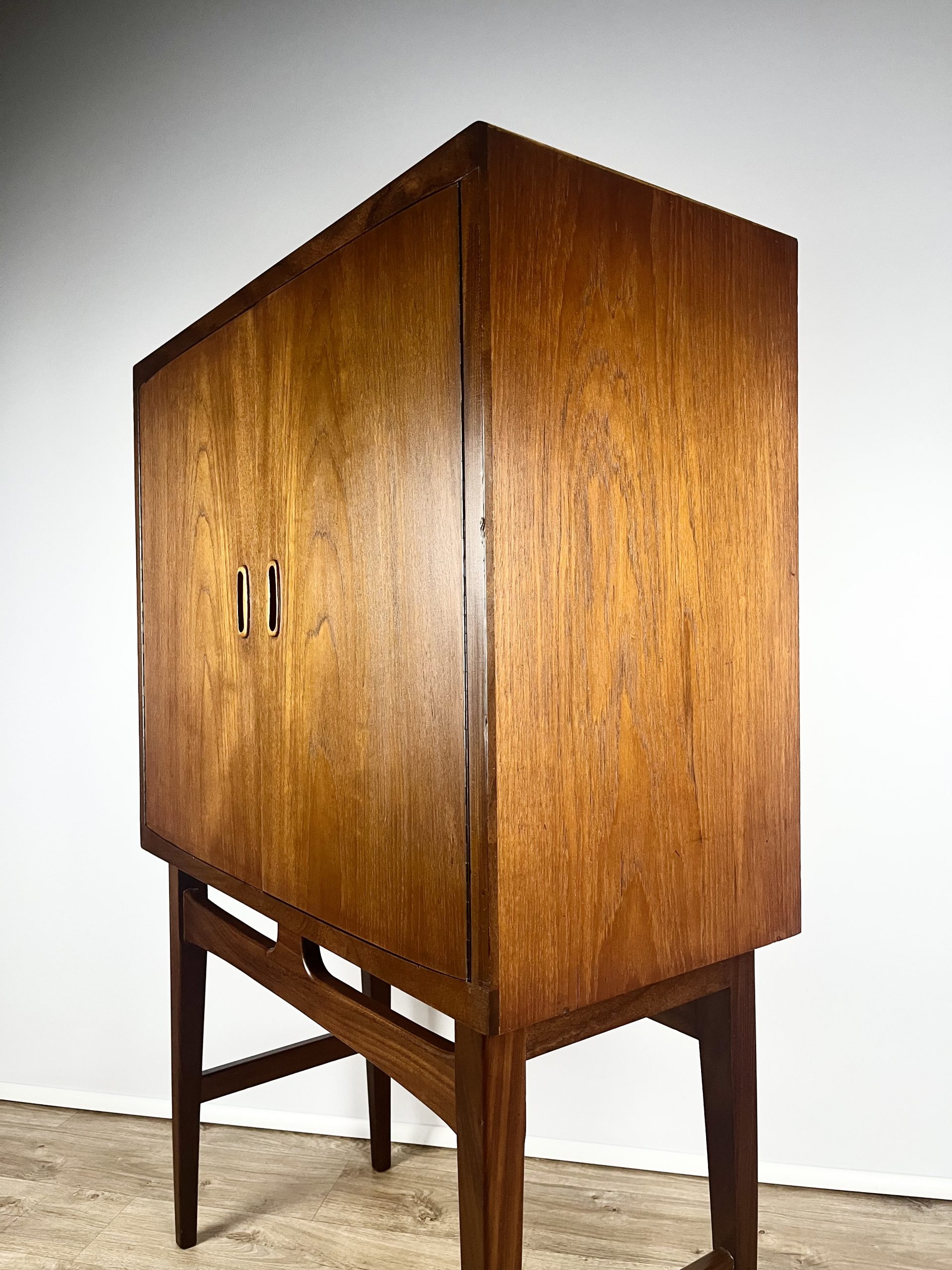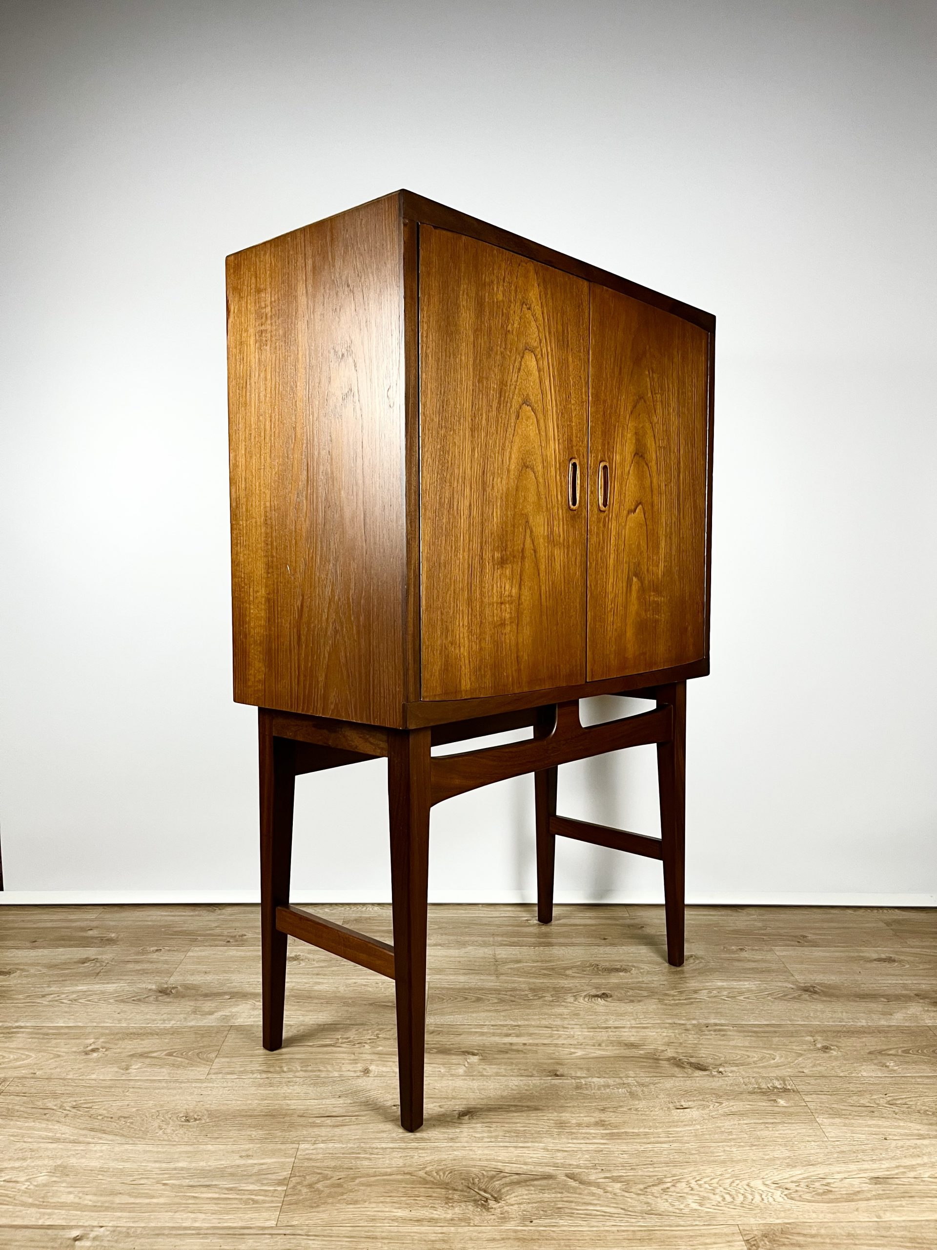 Designed by Torbjørn Afdal and produced in Norway during the 1960s, this very elegant cocktail cabinet is beautifully made with fine teak veneers and slender solid teak legs.