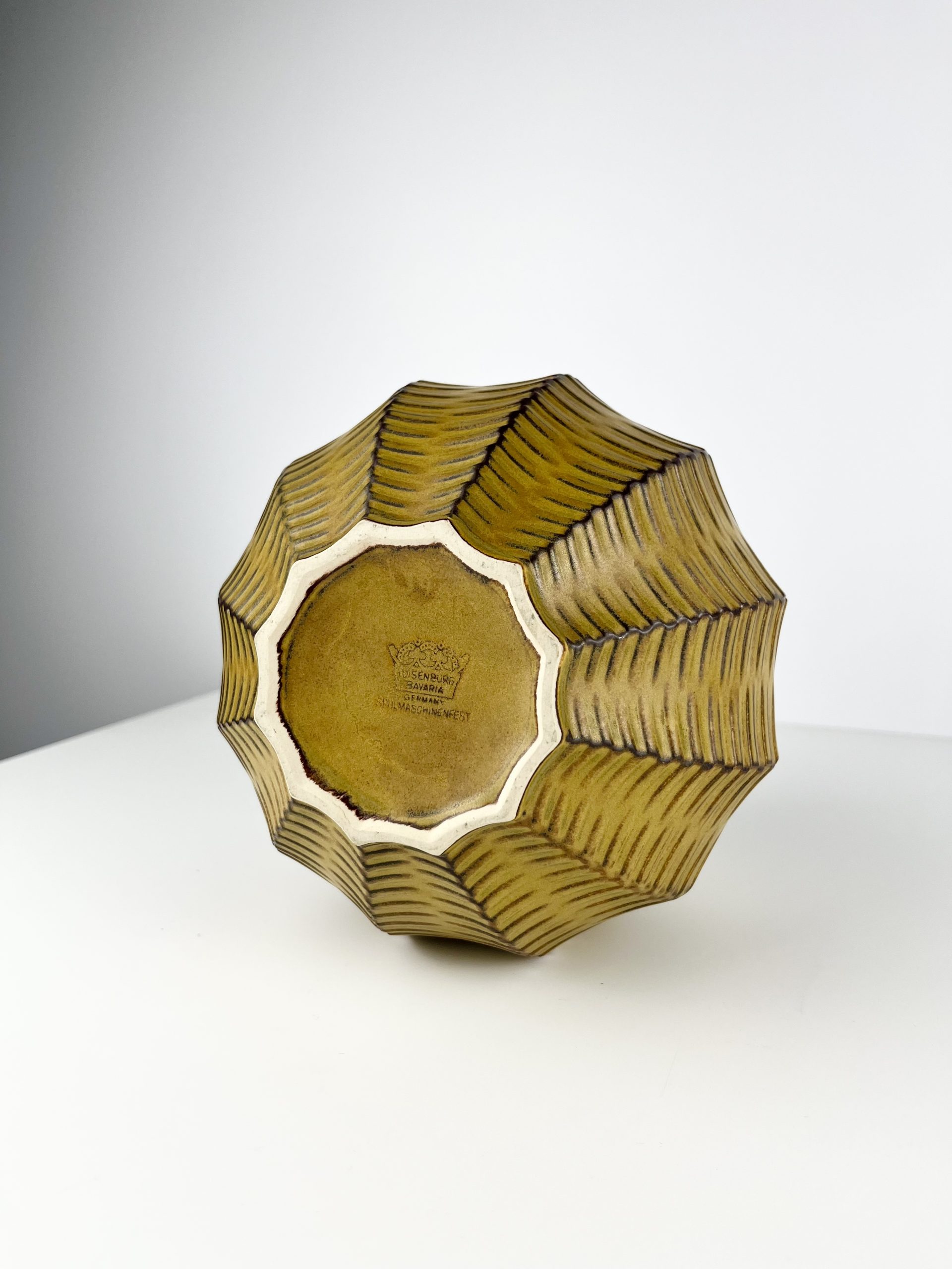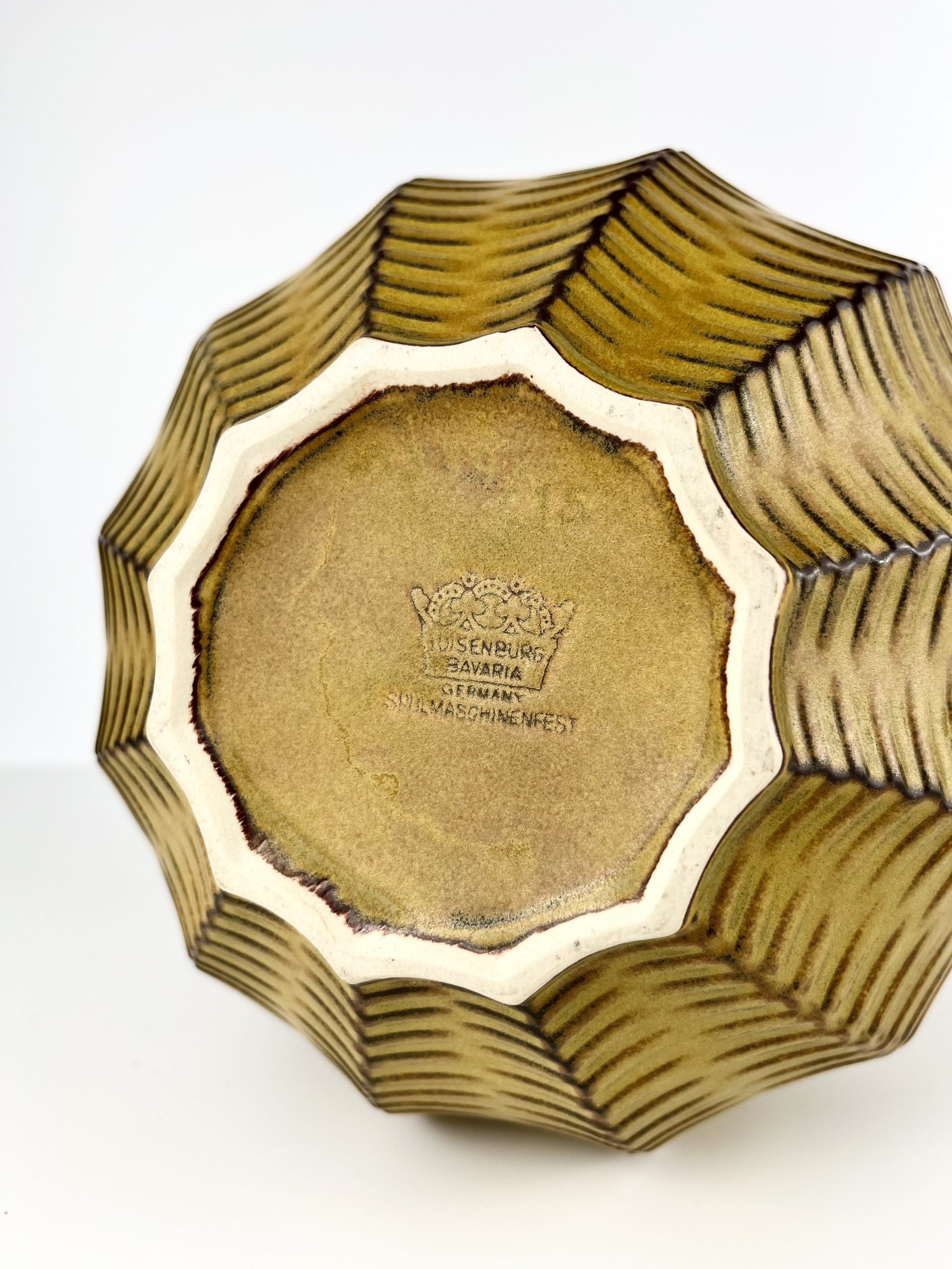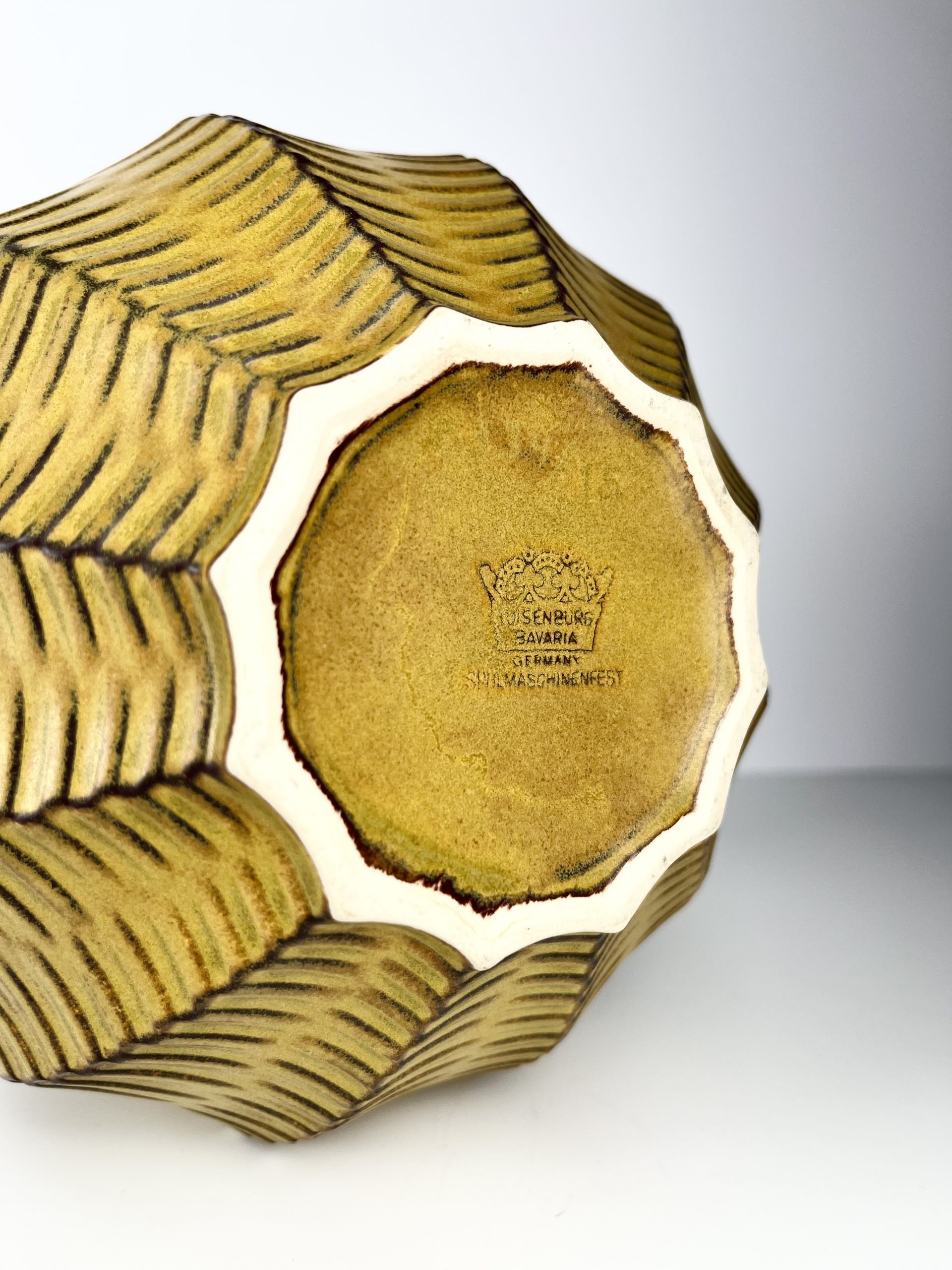 Heinrich Fuchs was known for his striking, faceted ceramic designs, and collaborated with prestigious ceramics manufacturers Luisenburg and Hutschenreuther to produce his works during the 1960s – 1970s.