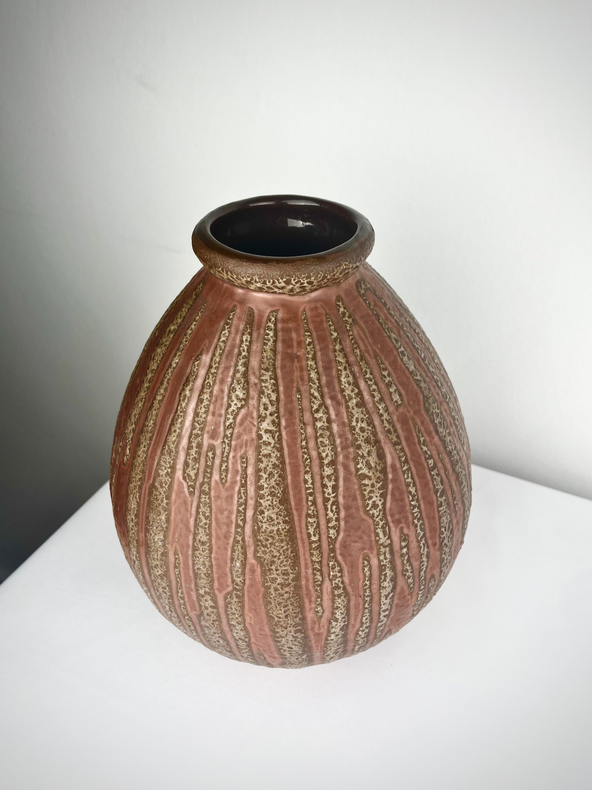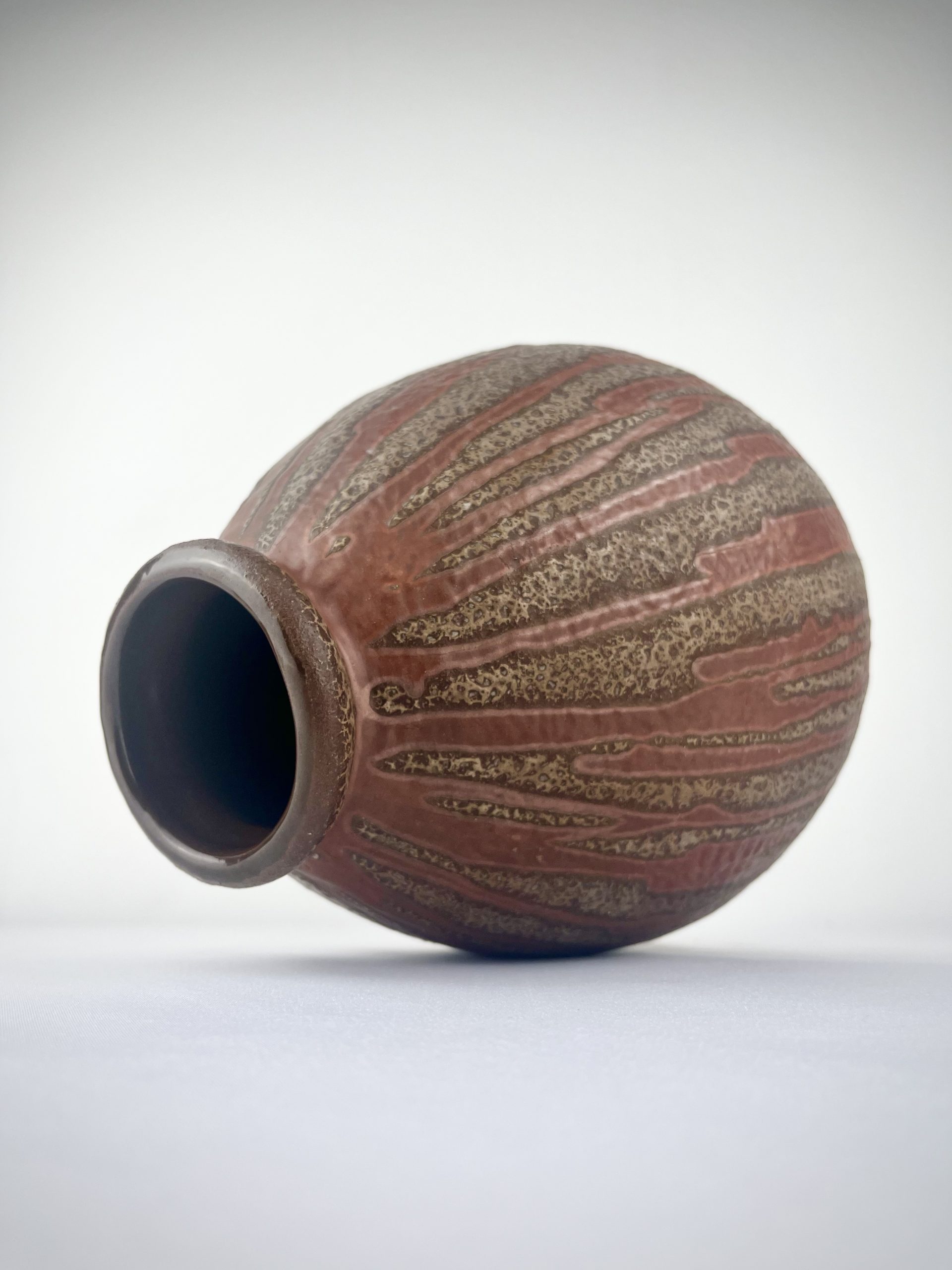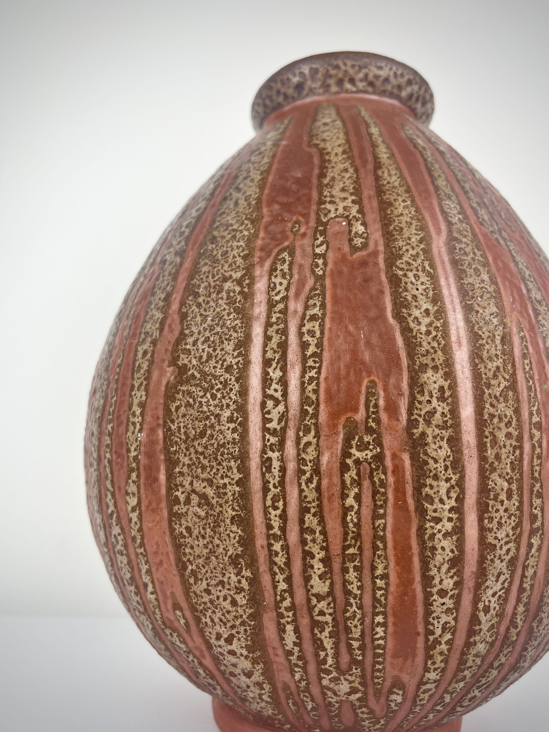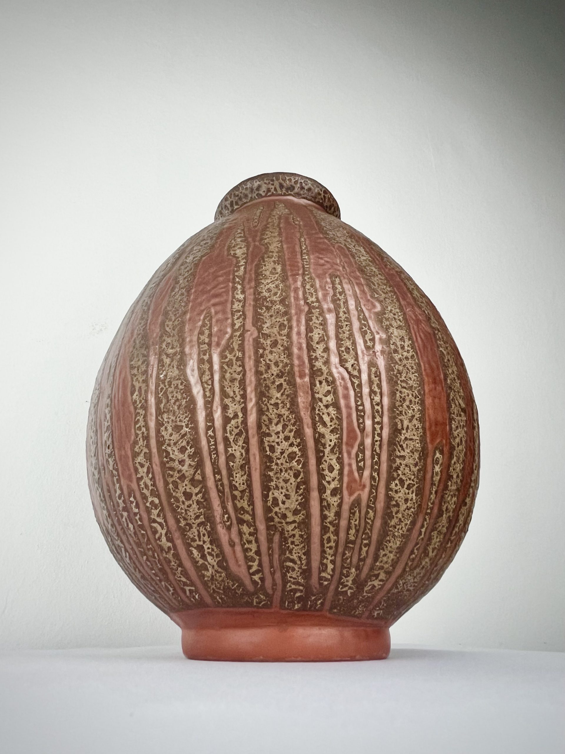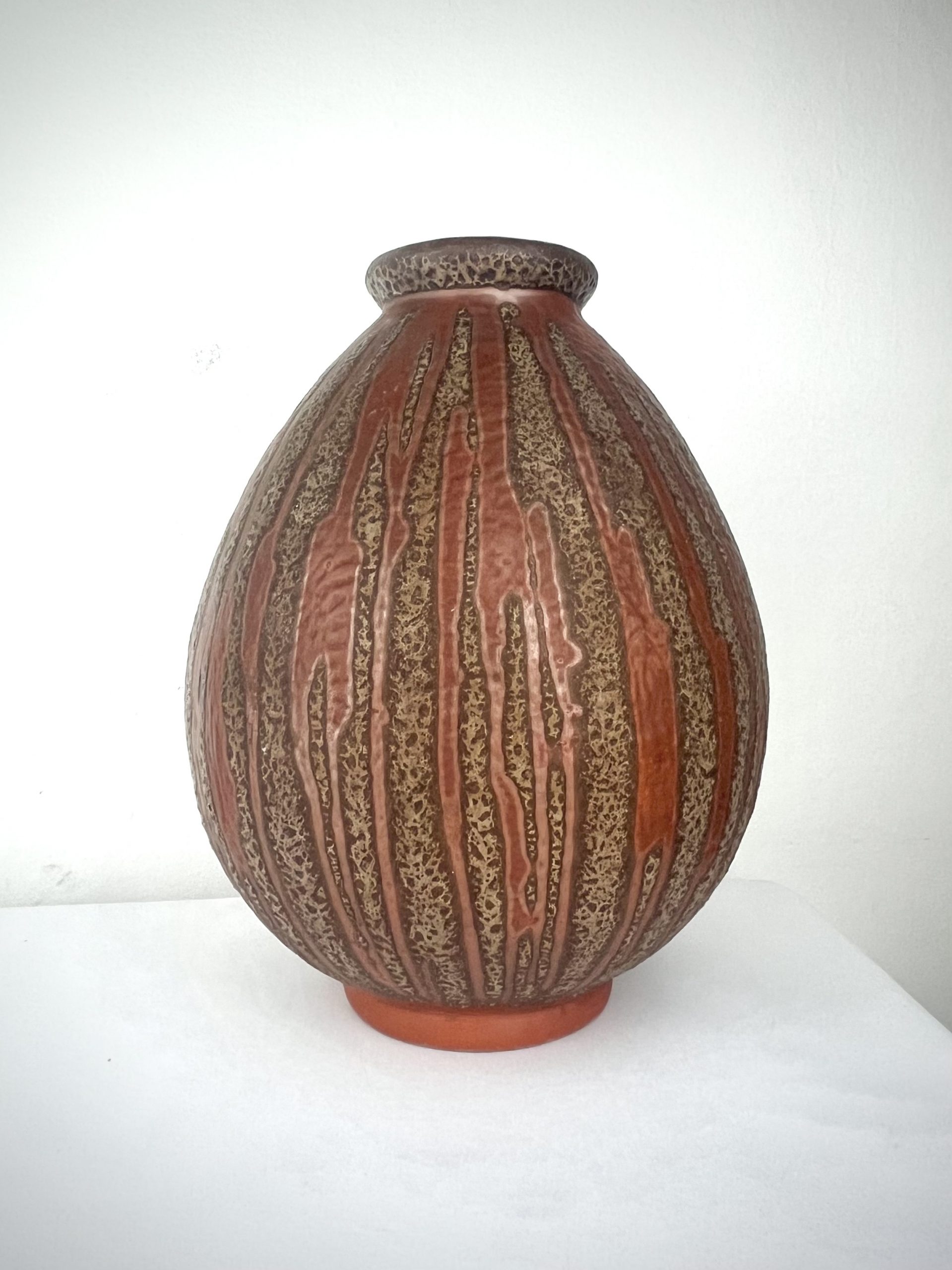 A rare and very large Gerda Heuckeroth vase, with a brick red and grey Velociraptor glaze!