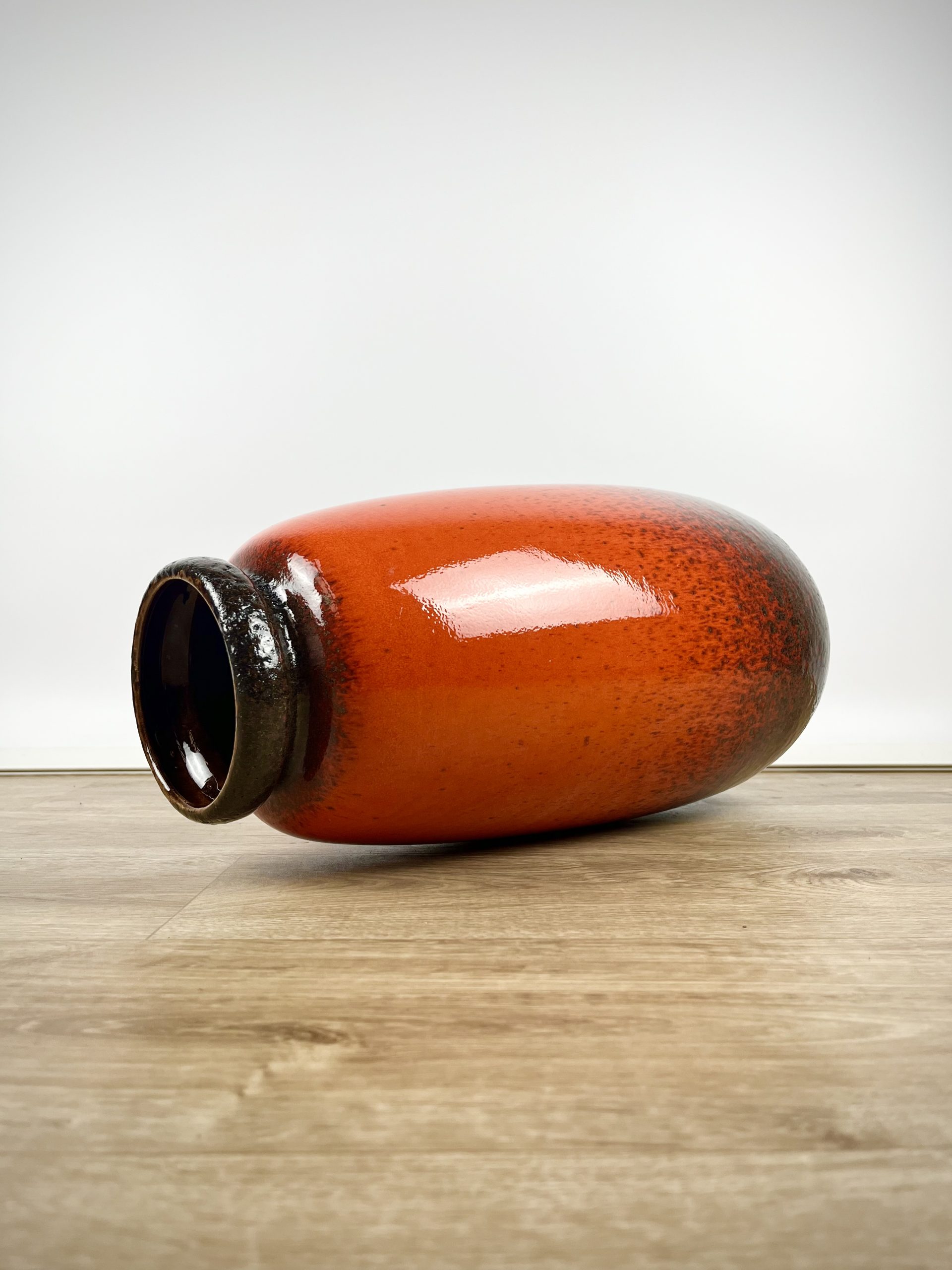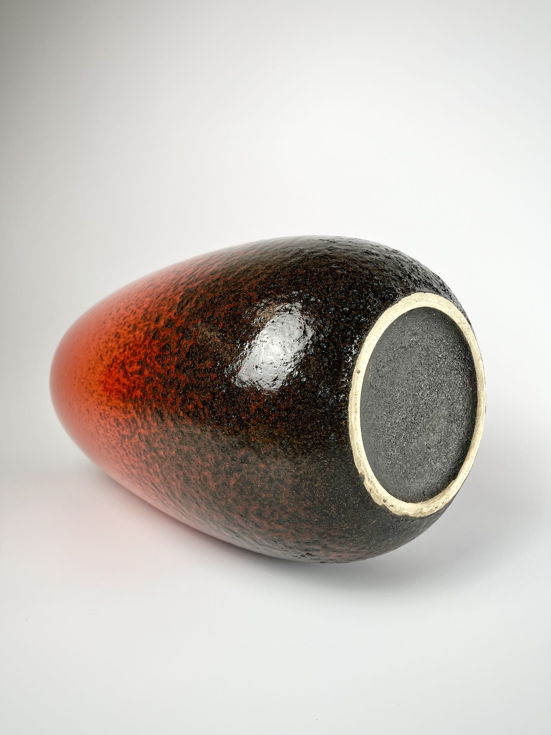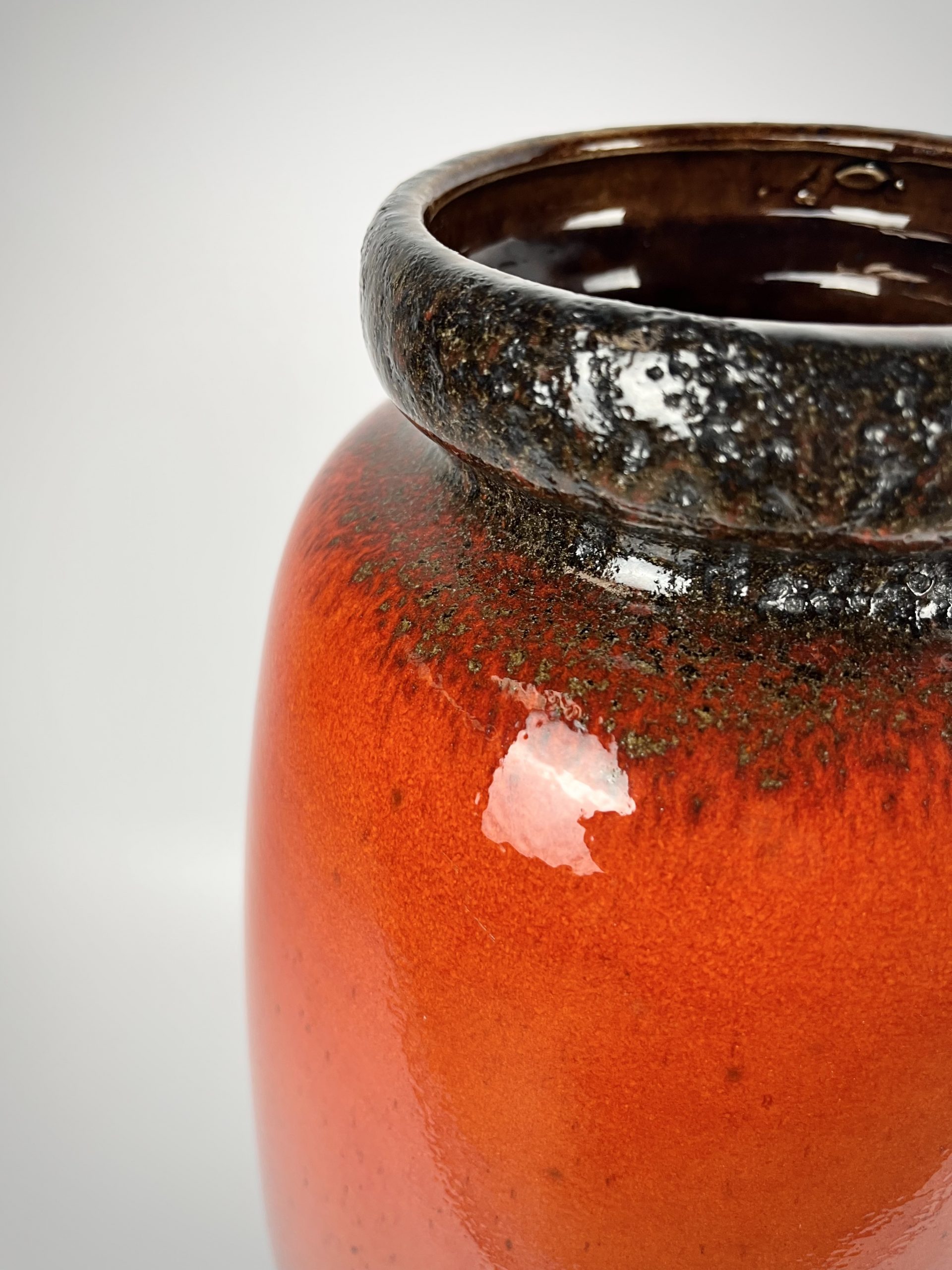 A glossy deep orange and black lava glaze, with model number ‘284-47 ‘ and ‘W. Germany’ stamped on its base.