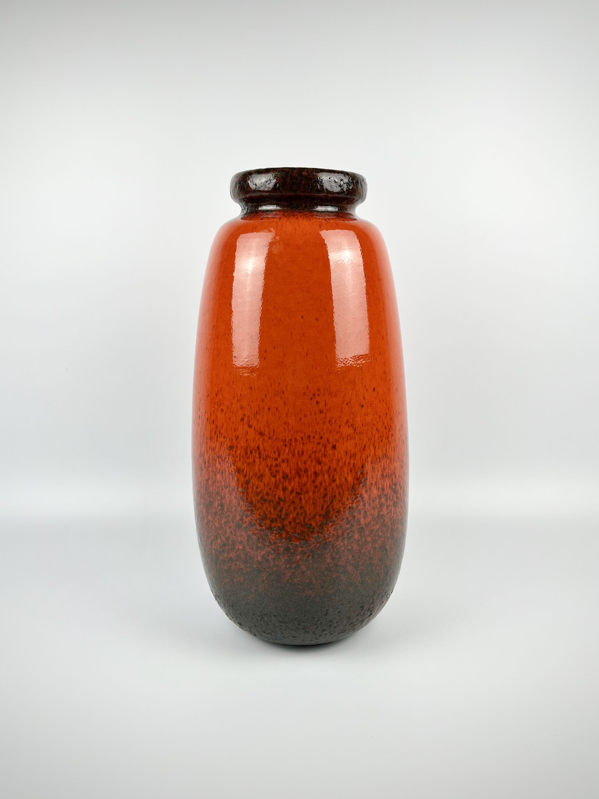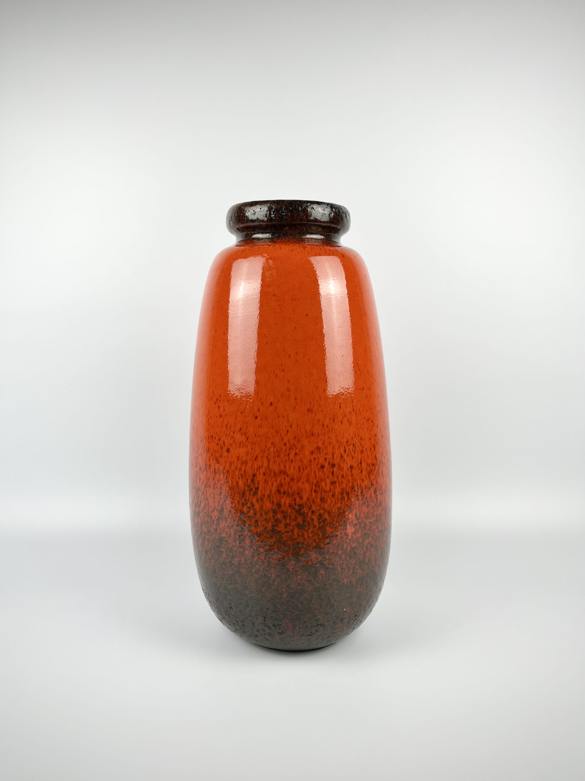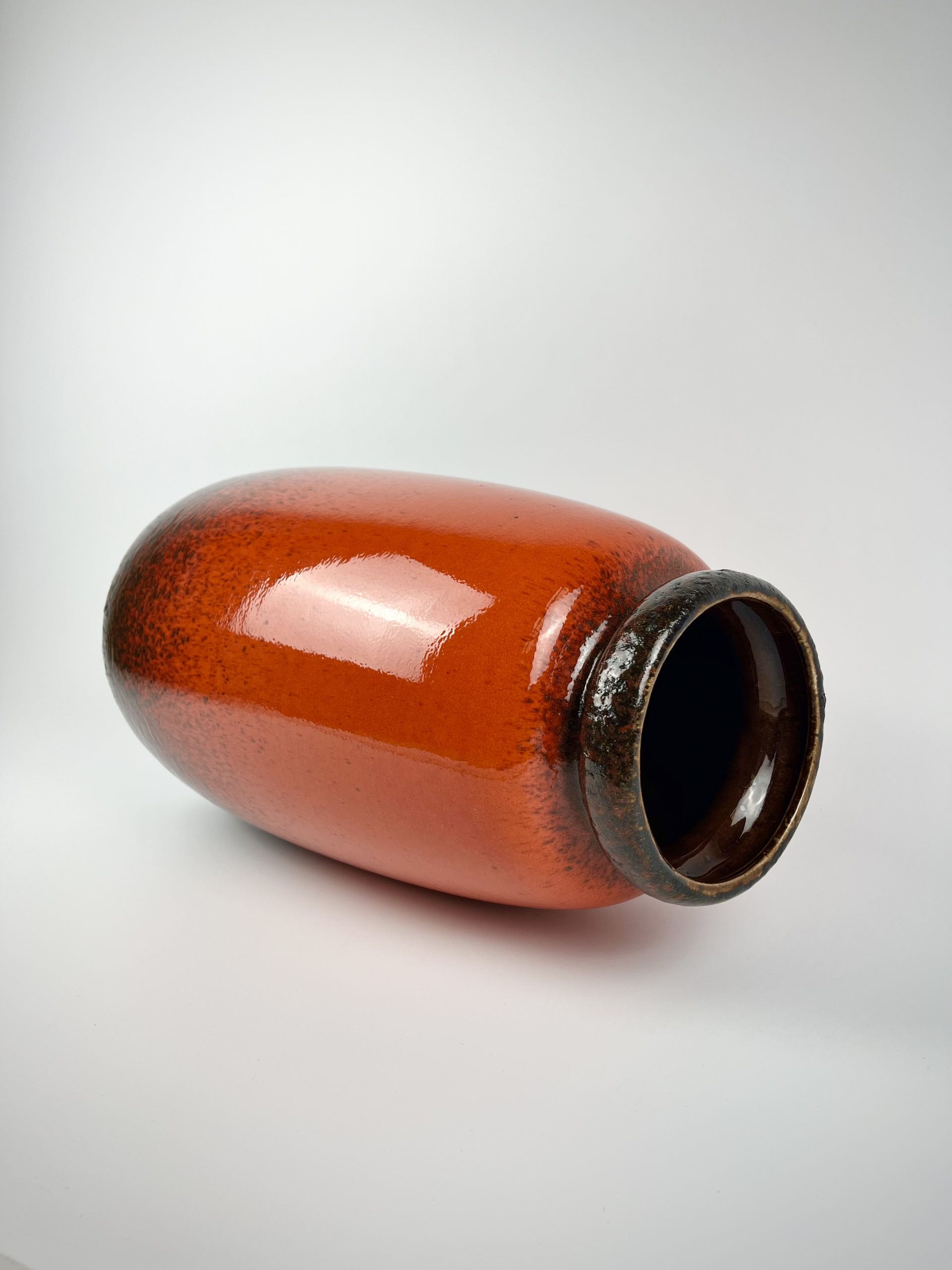 A glossy deep orange and black lava glaze, with model number ‘284-47 ‘ and ‘W. Germany’ stamped on its base.