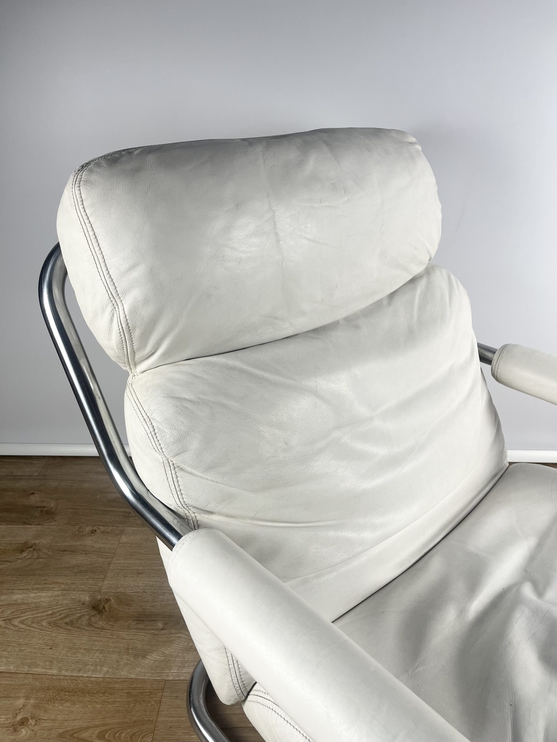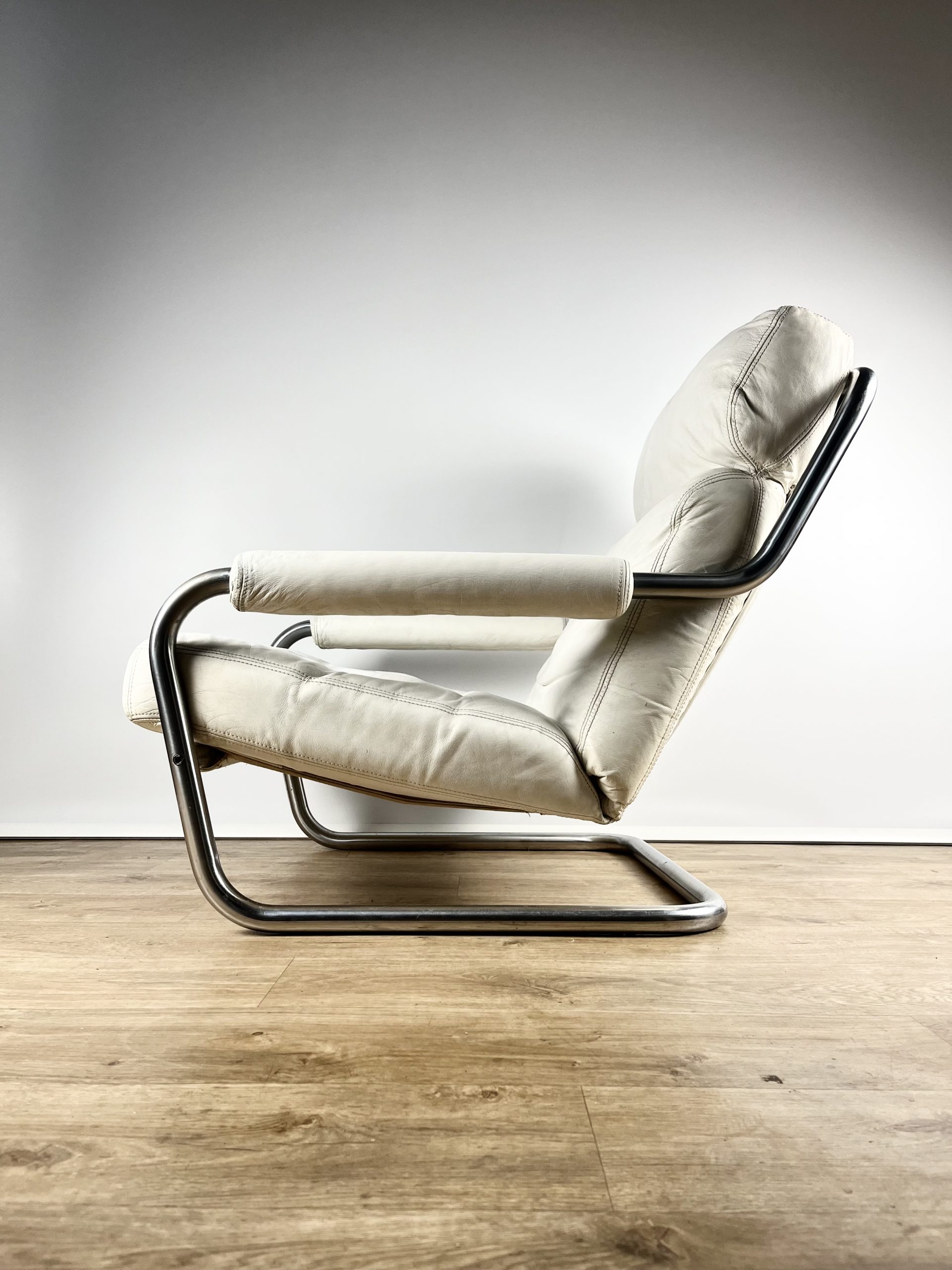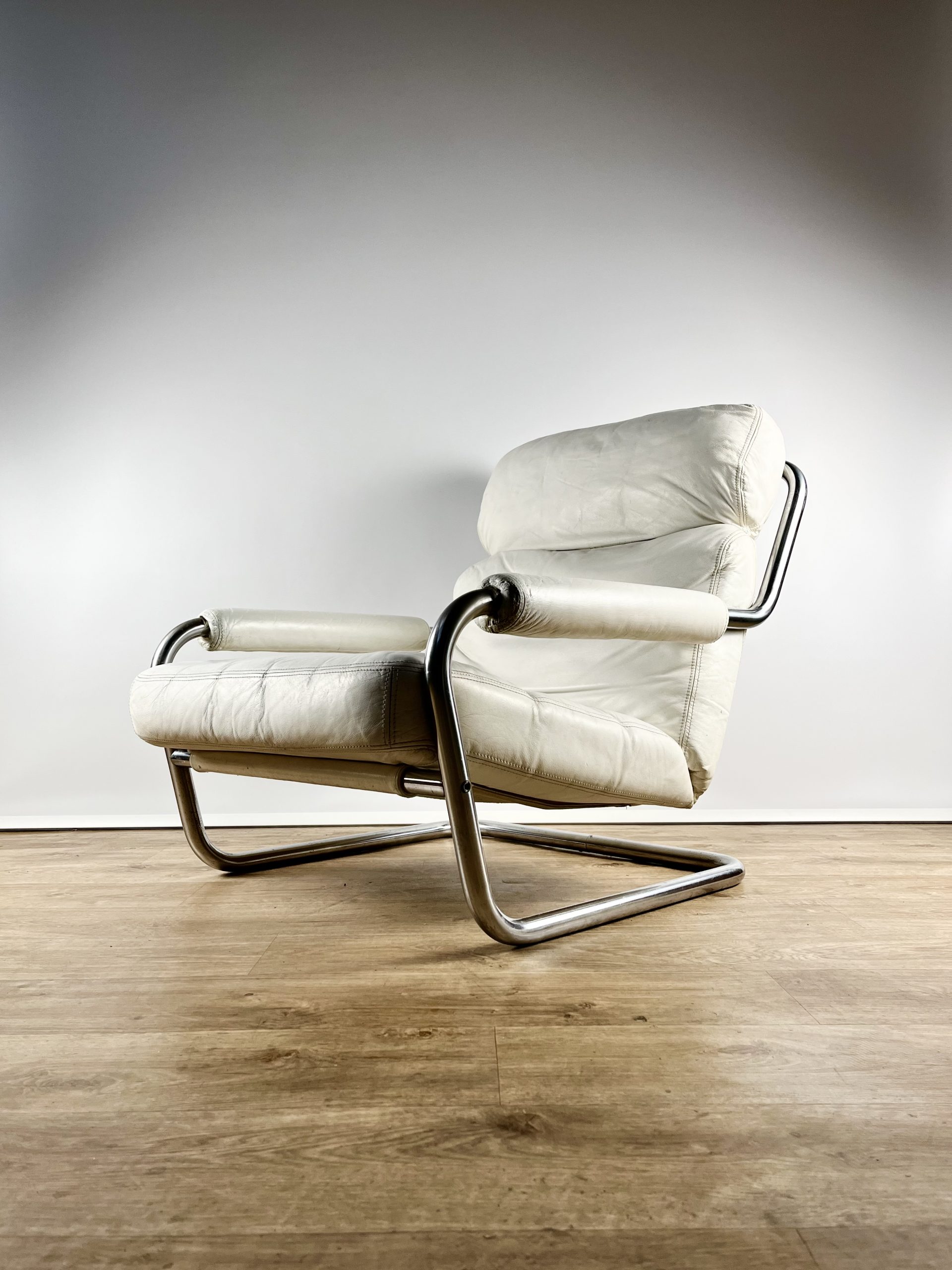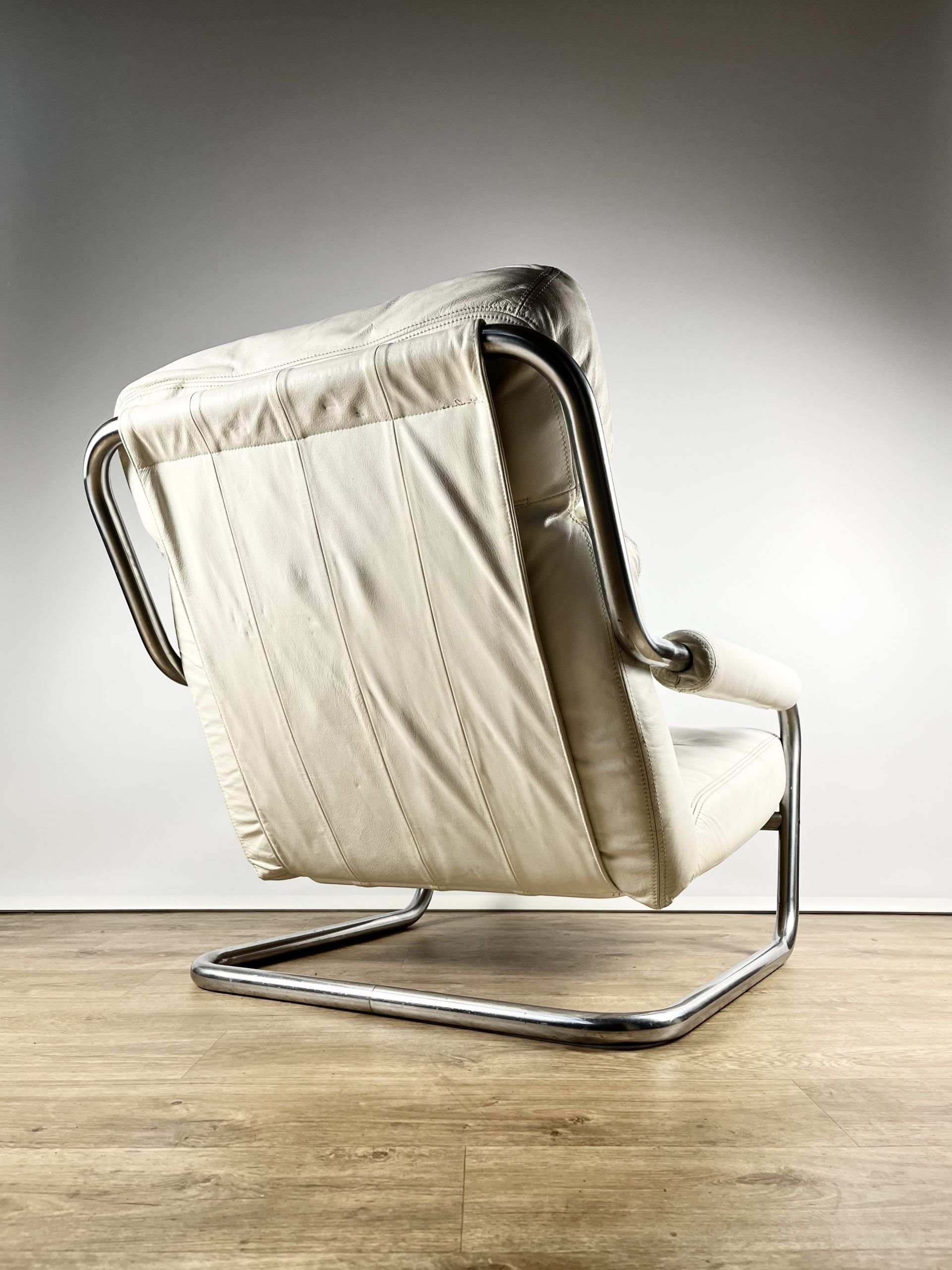 A slick looking leather and chrome easy chair, designed by Dutch architect, Jan des Bouvrie.
