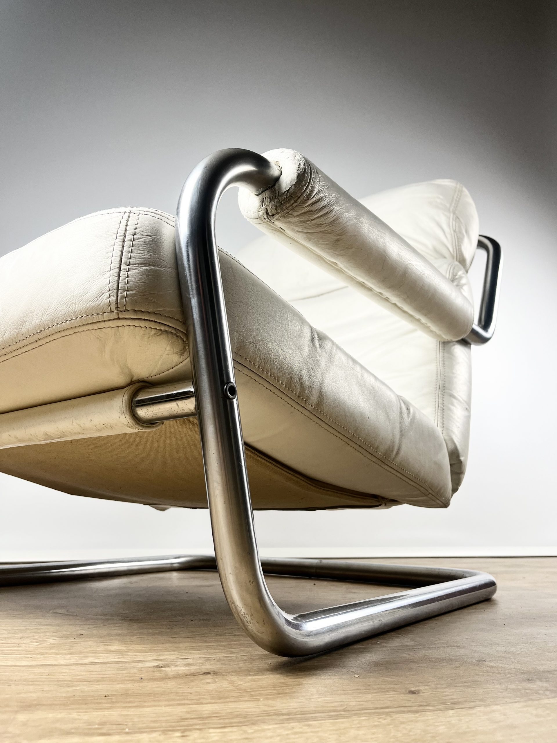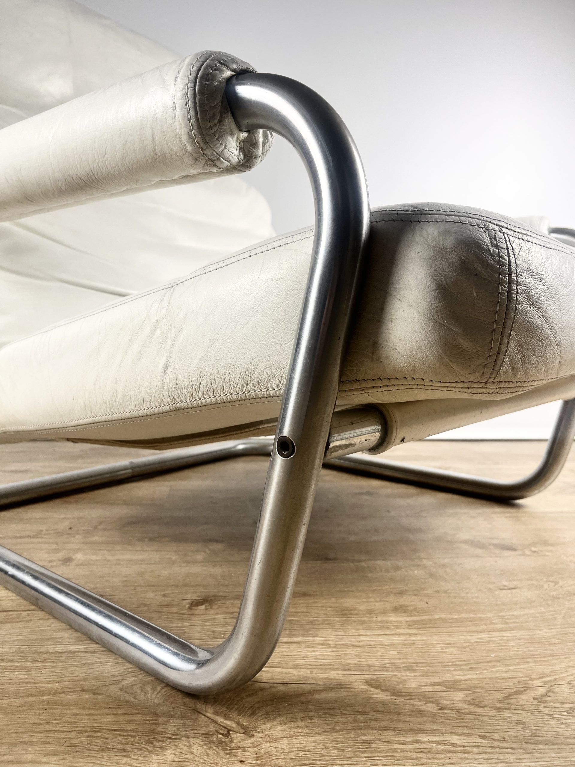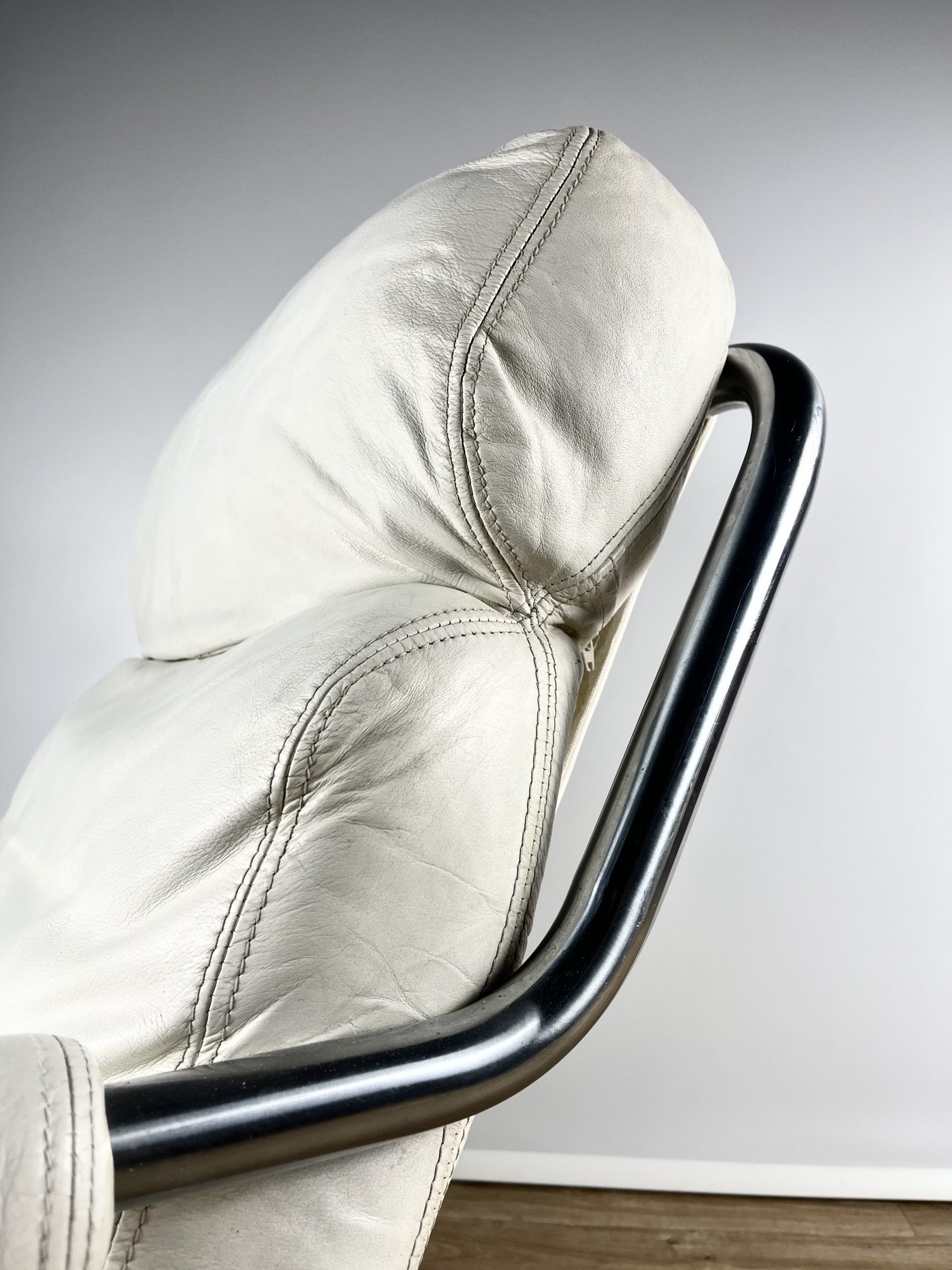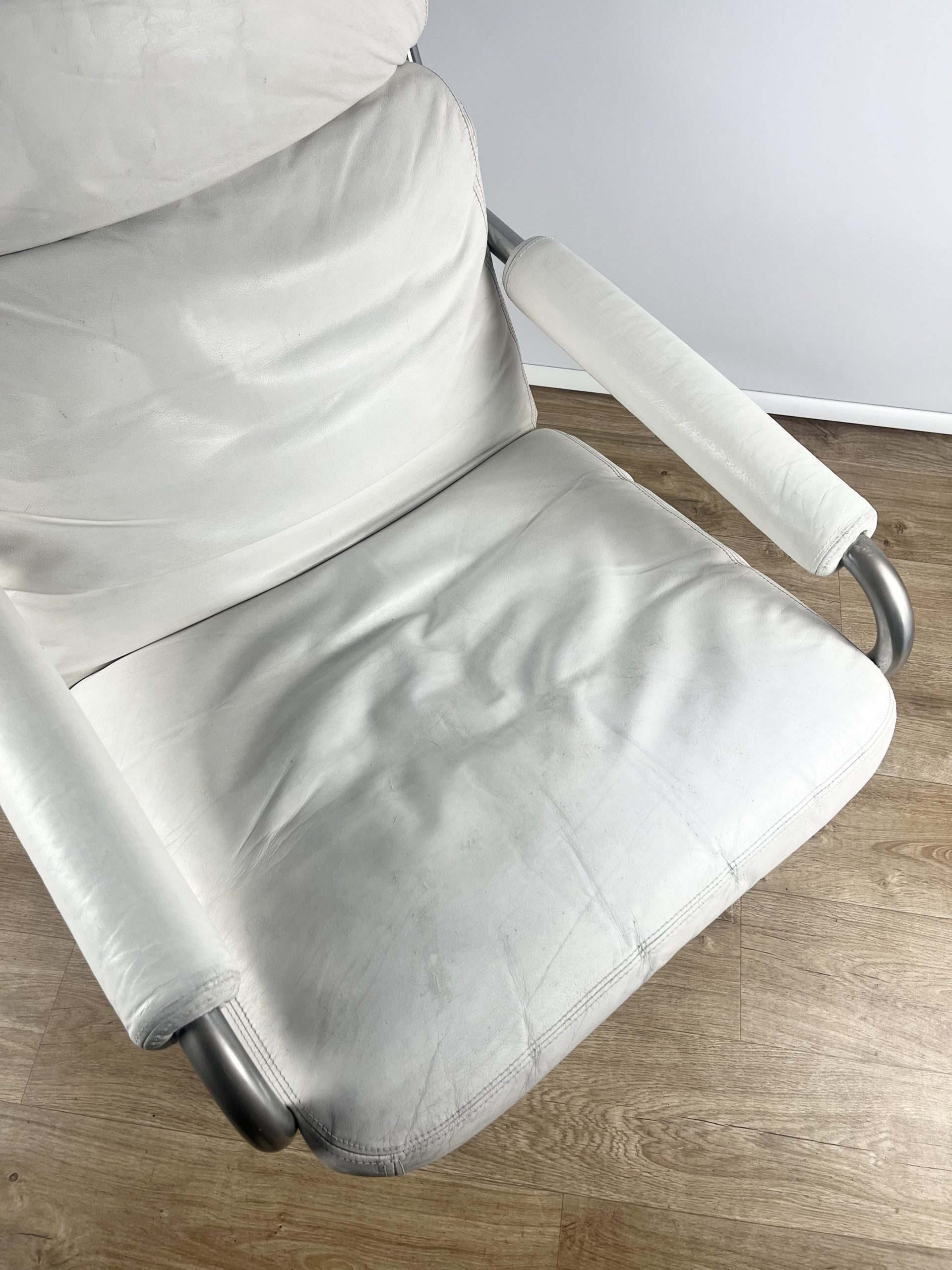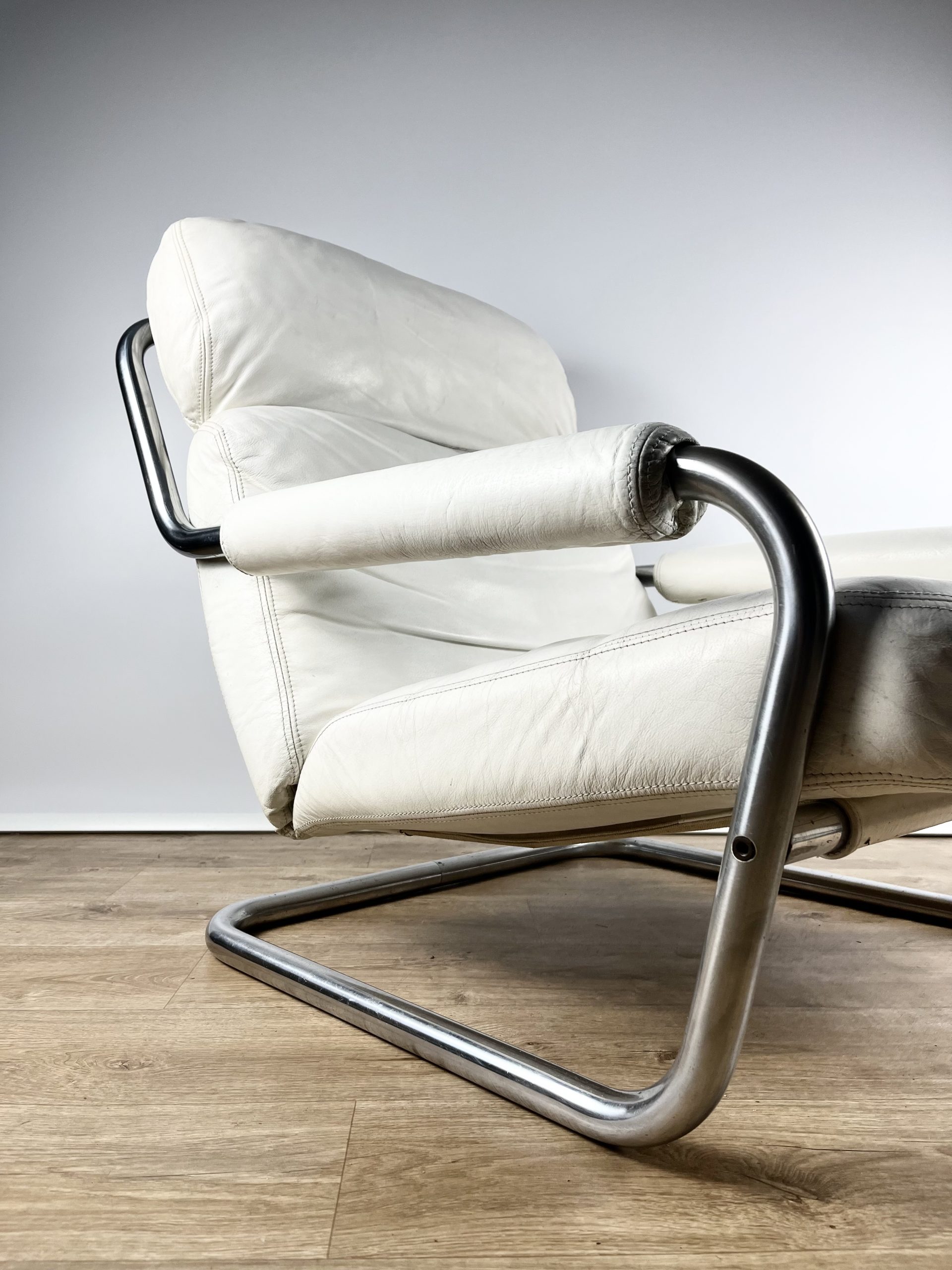 A slick looking leather and chrome easy chair, designed by Dutch architect, Jan des Bouvrie.