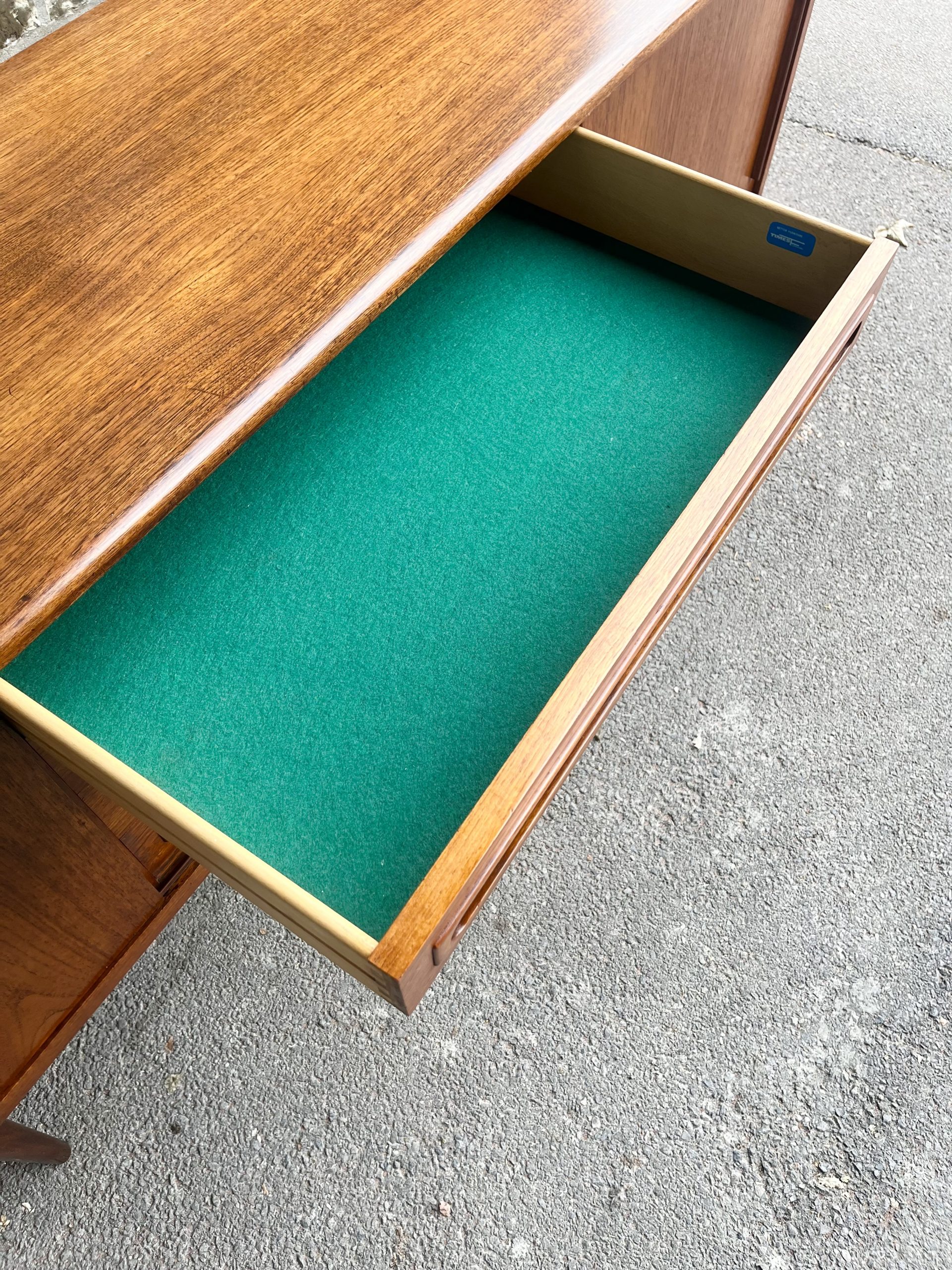 With the felt-lined top drawer still complete with original retailer labels, it comes in very good vintage condition with only minor signs of age… and in that deep teak colour which you just don’t get from modern furniture.