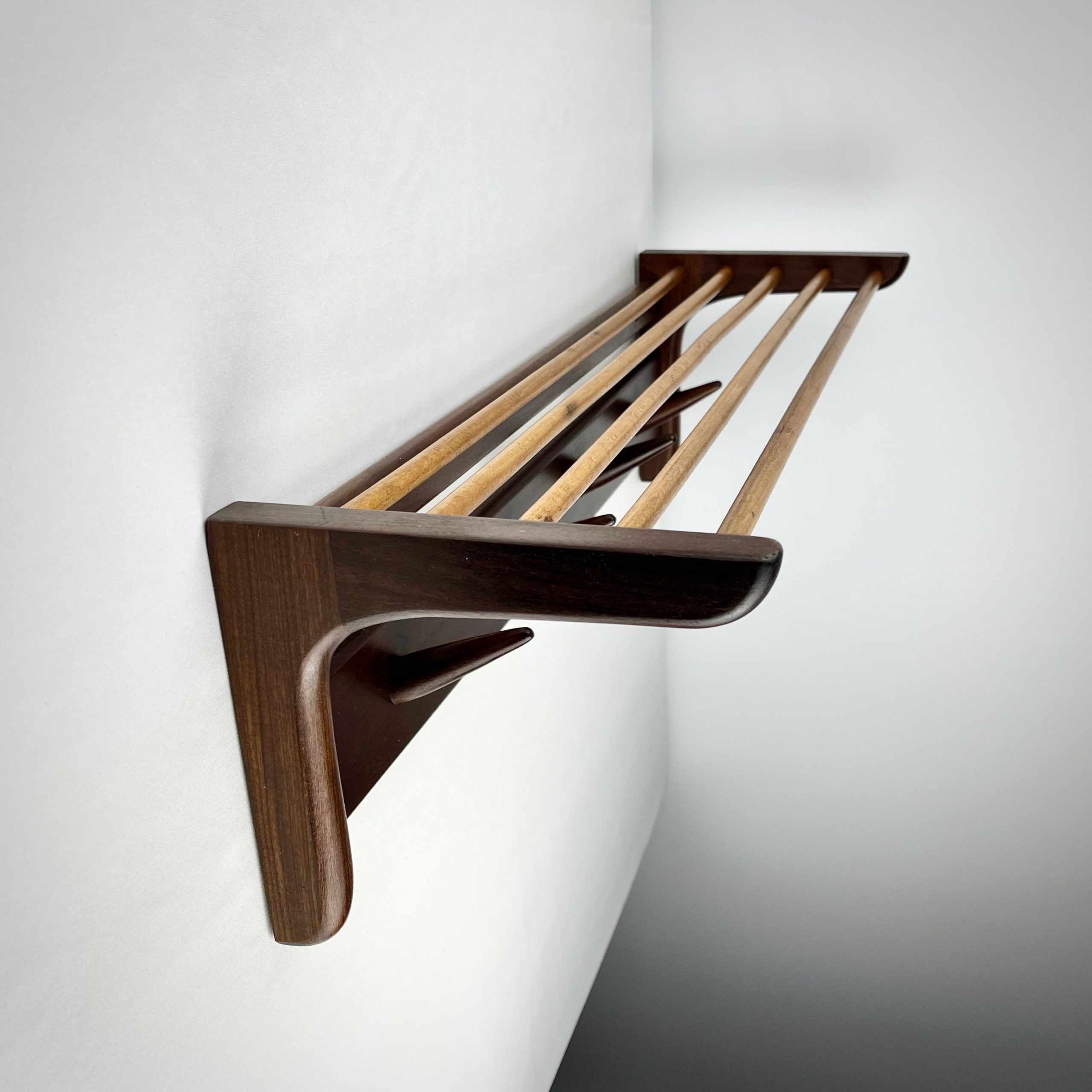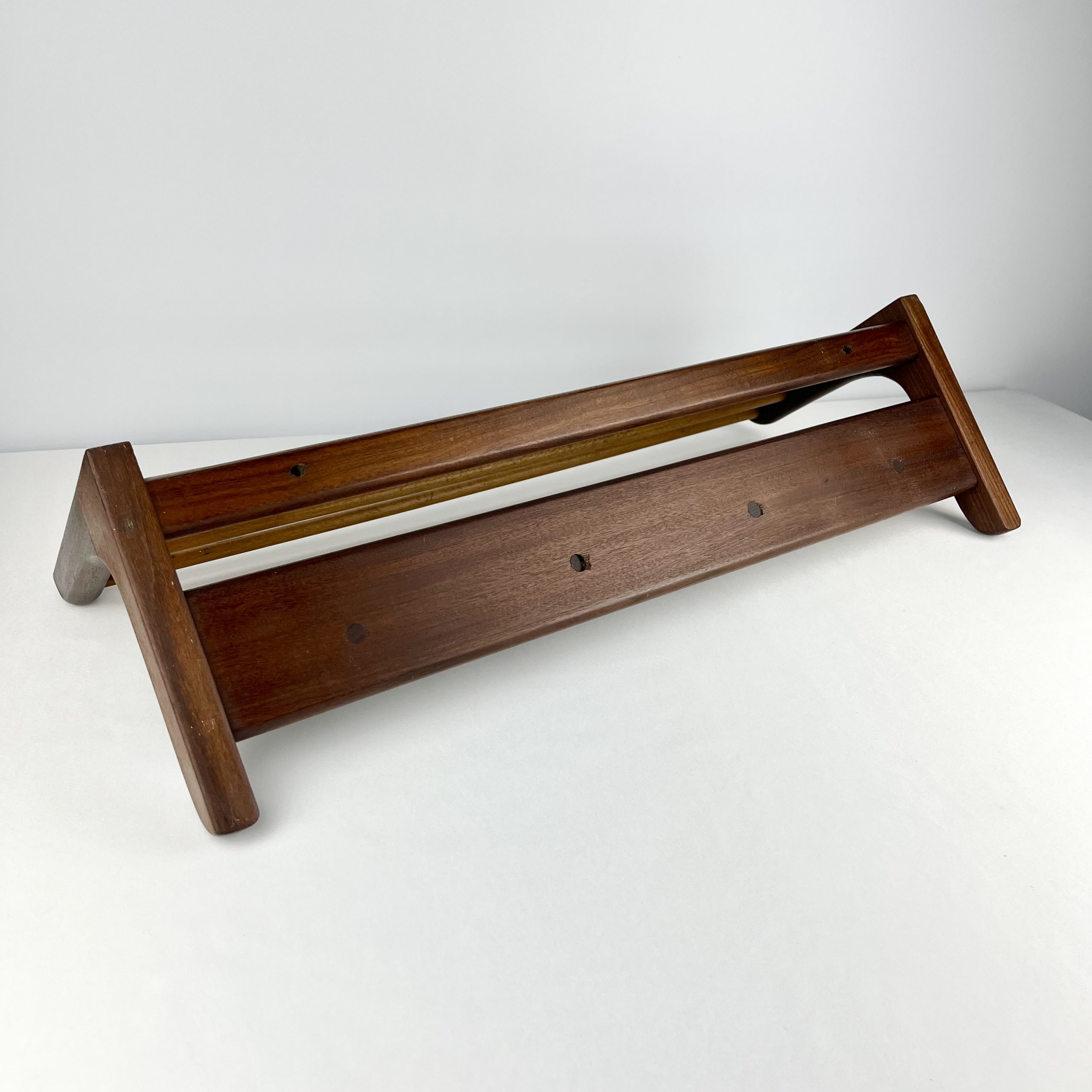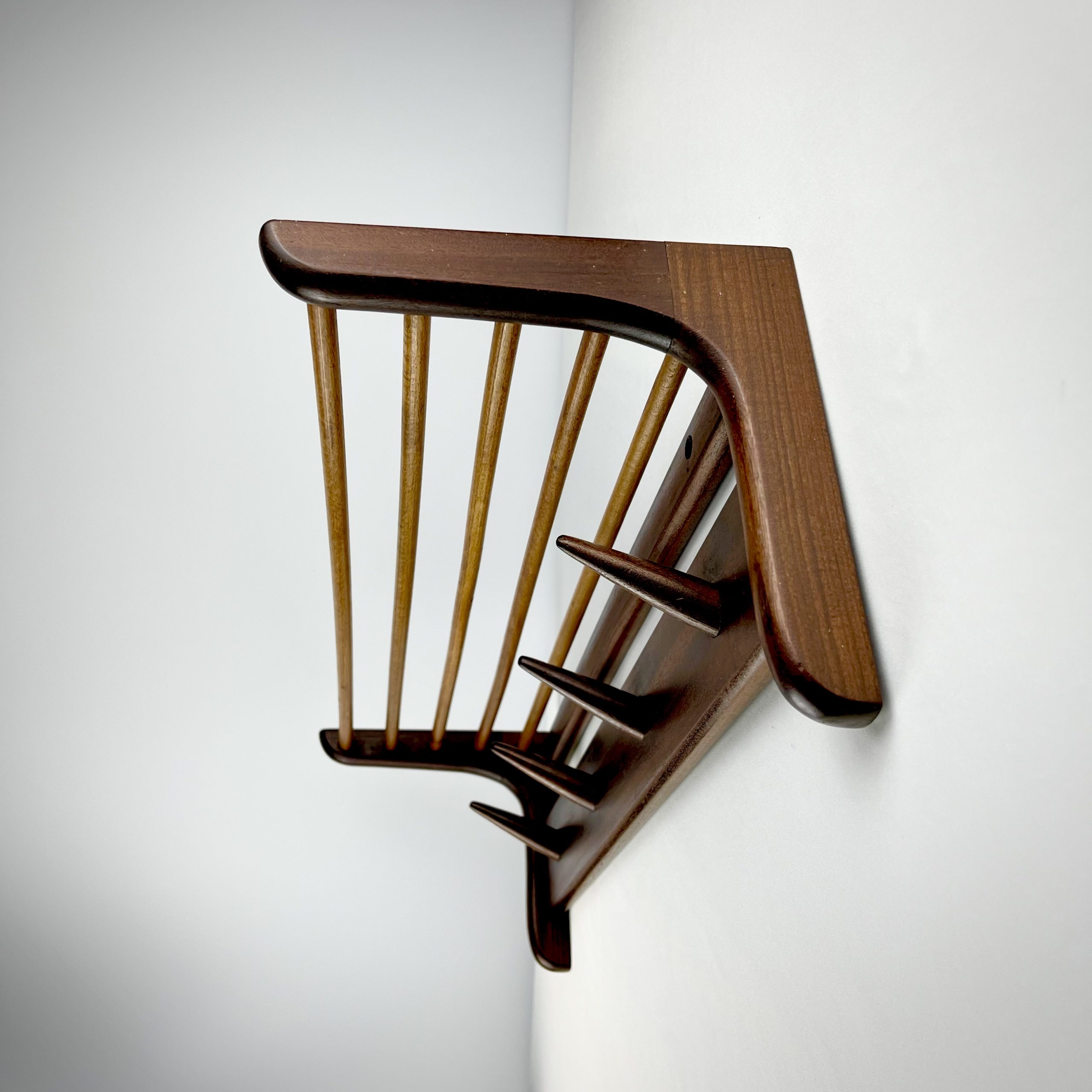 Produced in the 1960s by quality furniture manufacturer A. Younger Ltd, this iconic, sculptural design features a slatted beech hat rack and a solid afrormosia frame, with four tusk-like coat hooks.