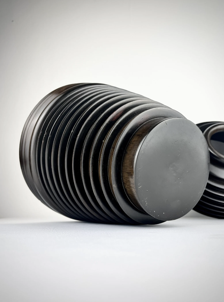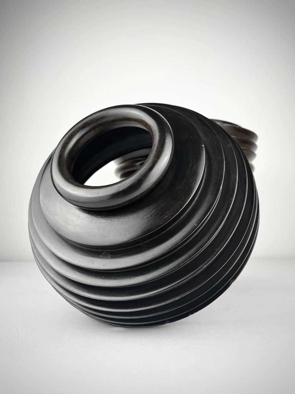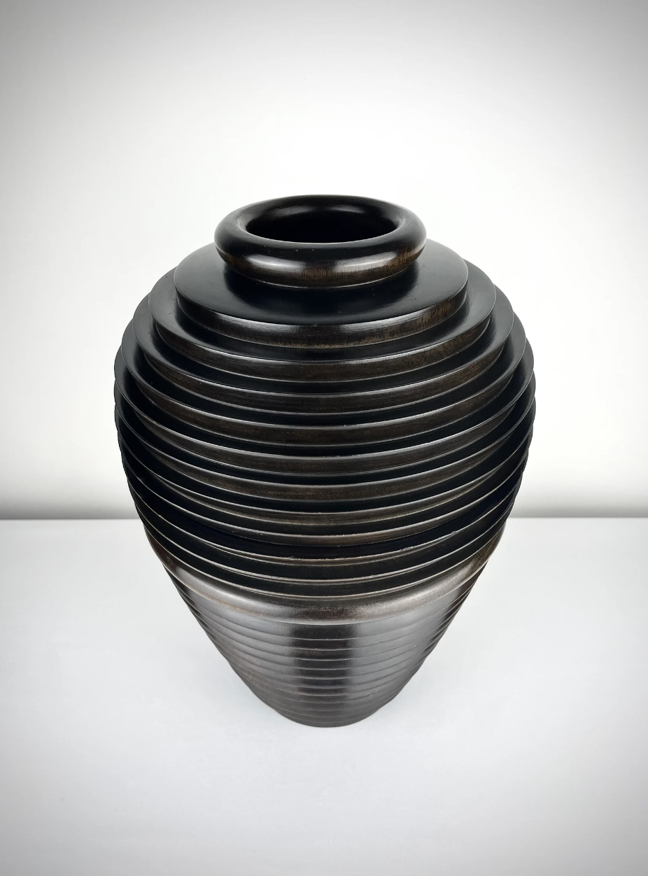This large and spectacular beehive vase is made from dark lacquered wood, but has an almost Bakelite feel to it!