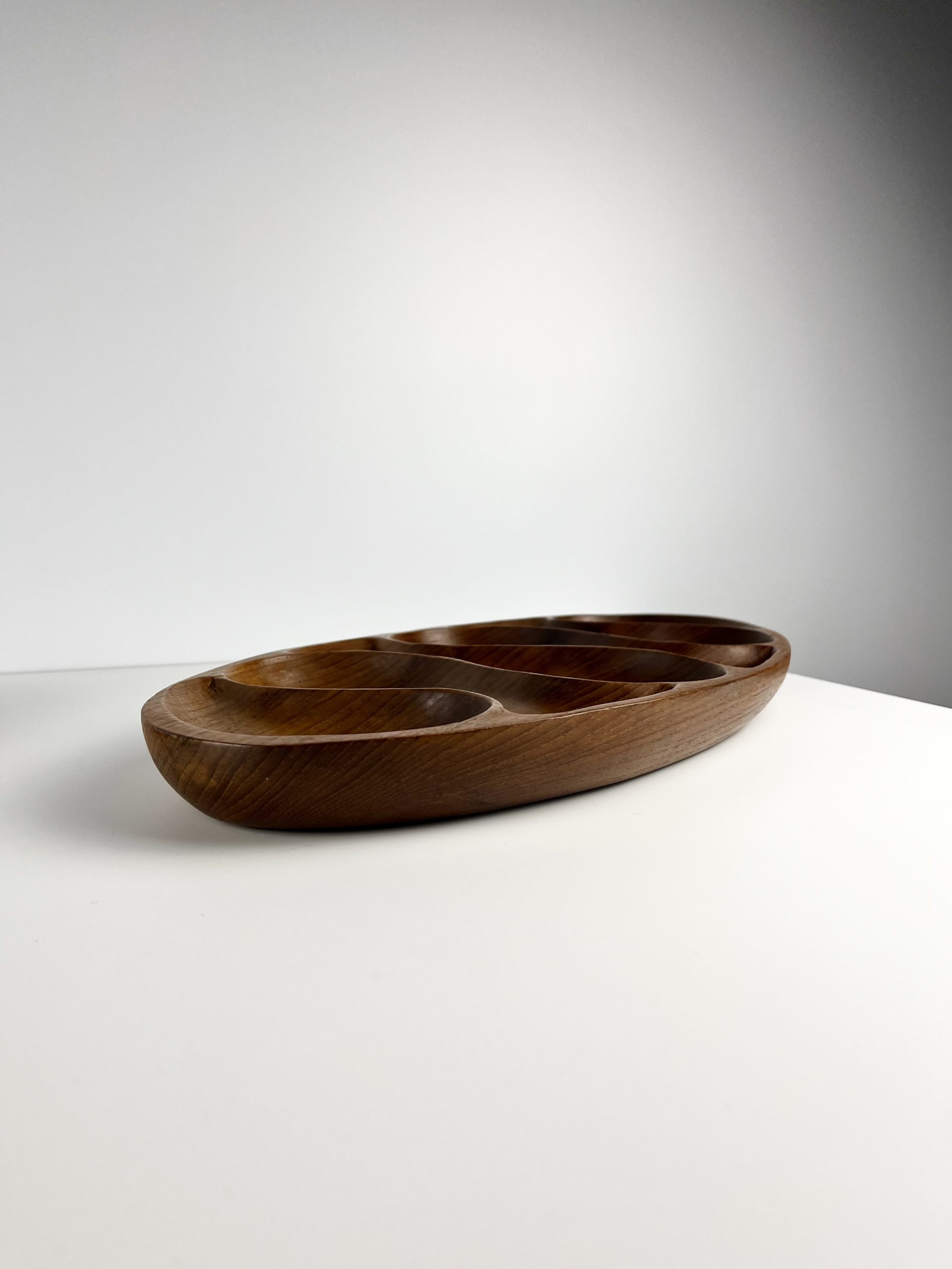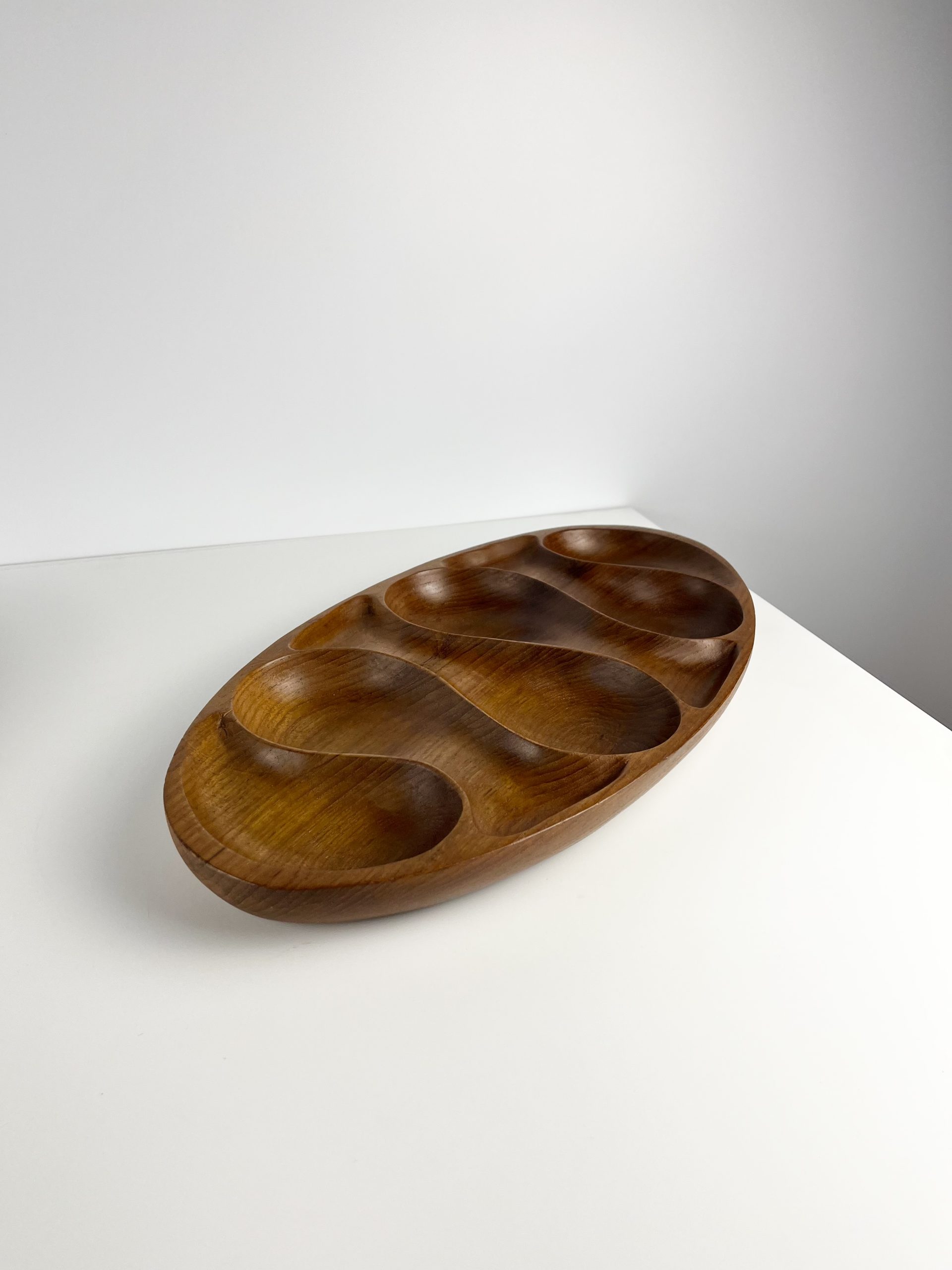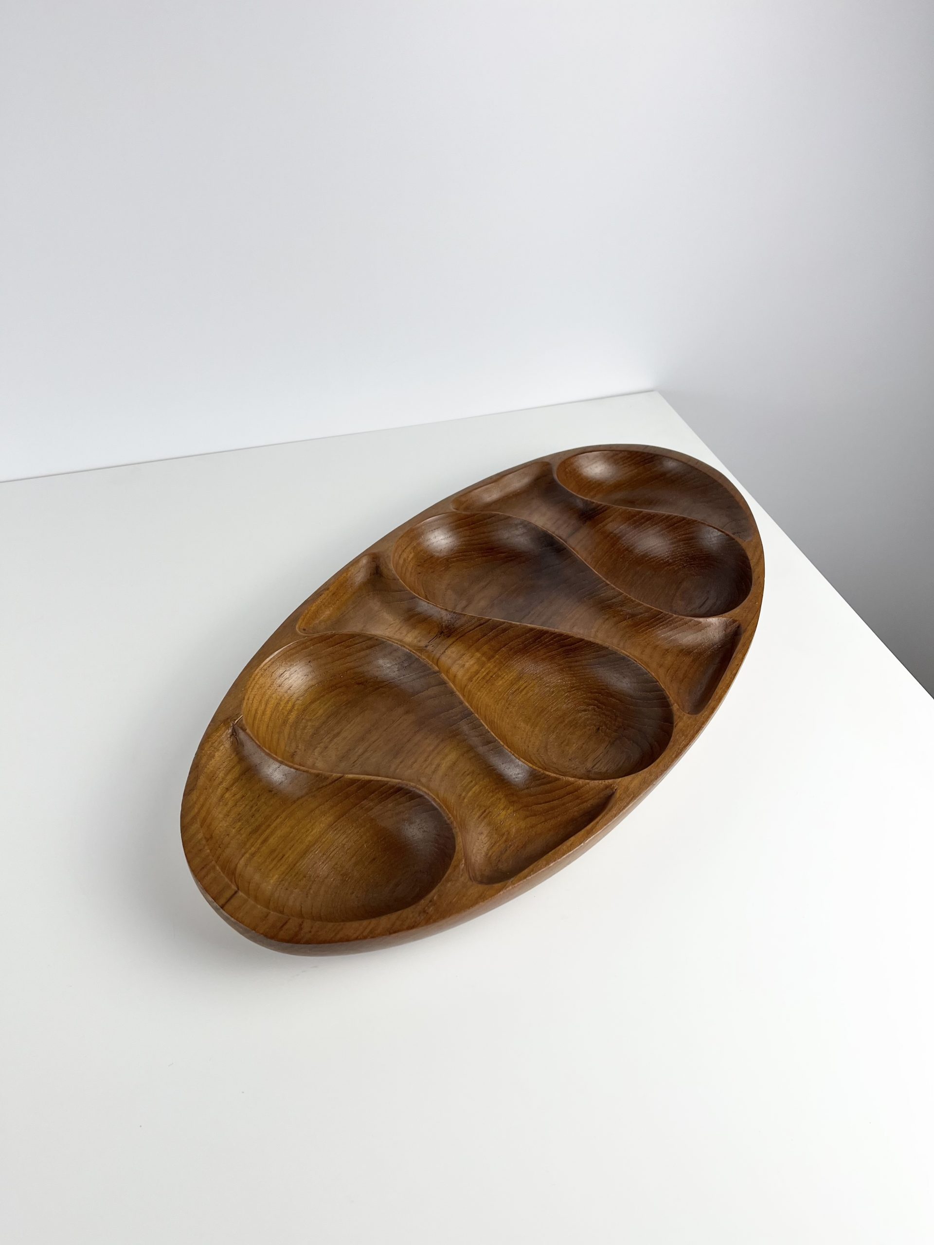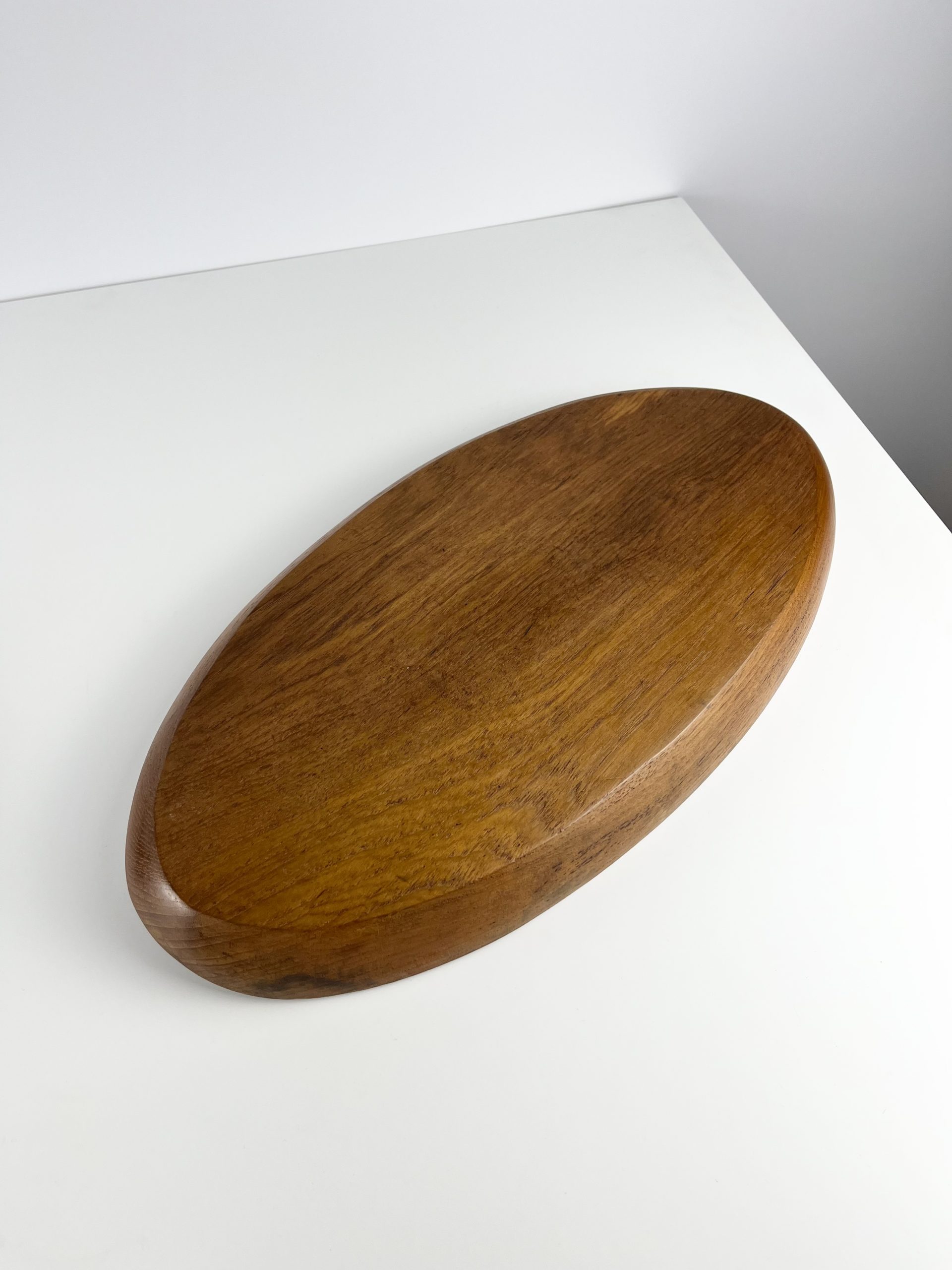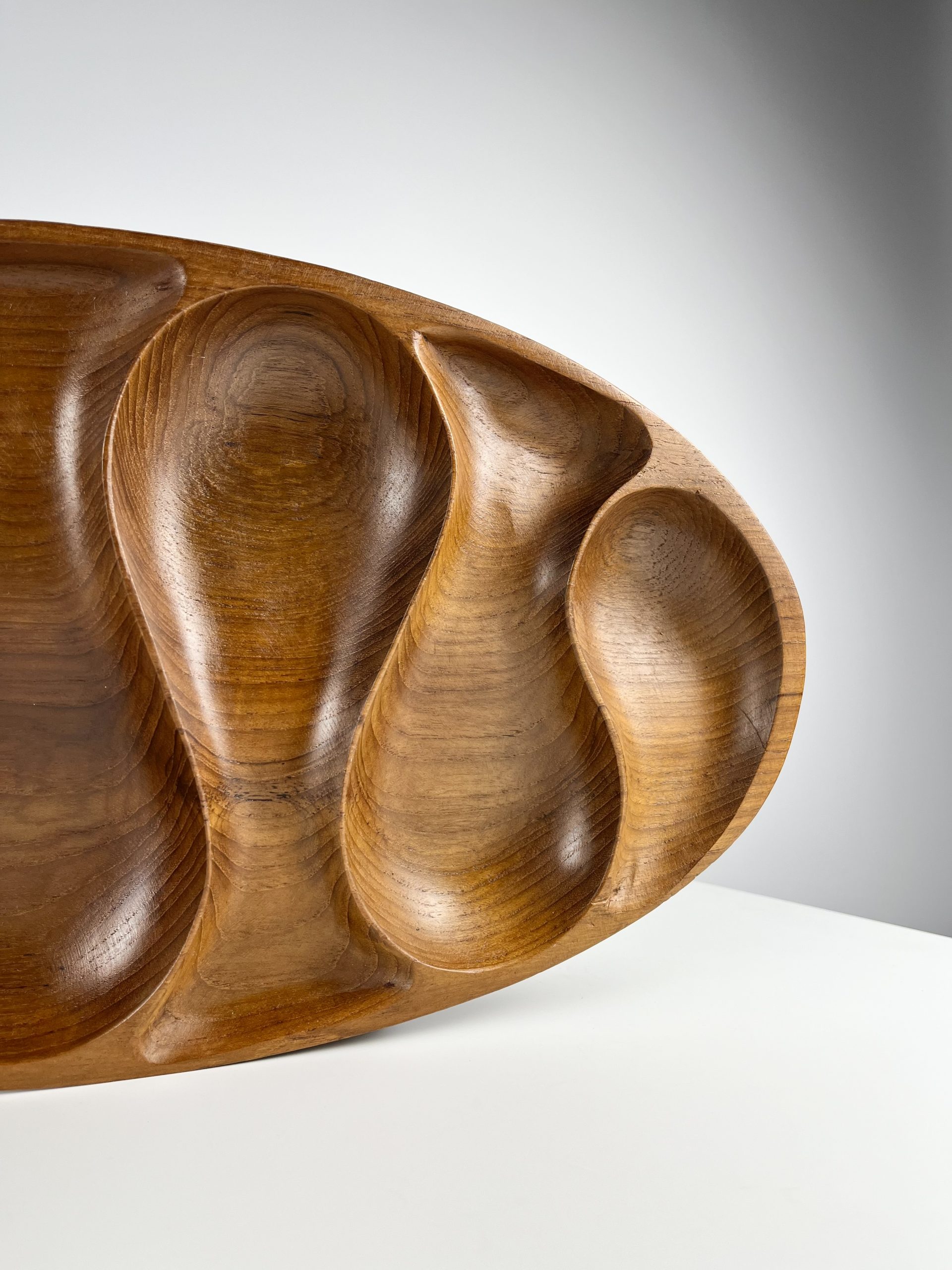 A large and sculptural solid teak snack bowl, hand carved into this distinctive, undulating form.