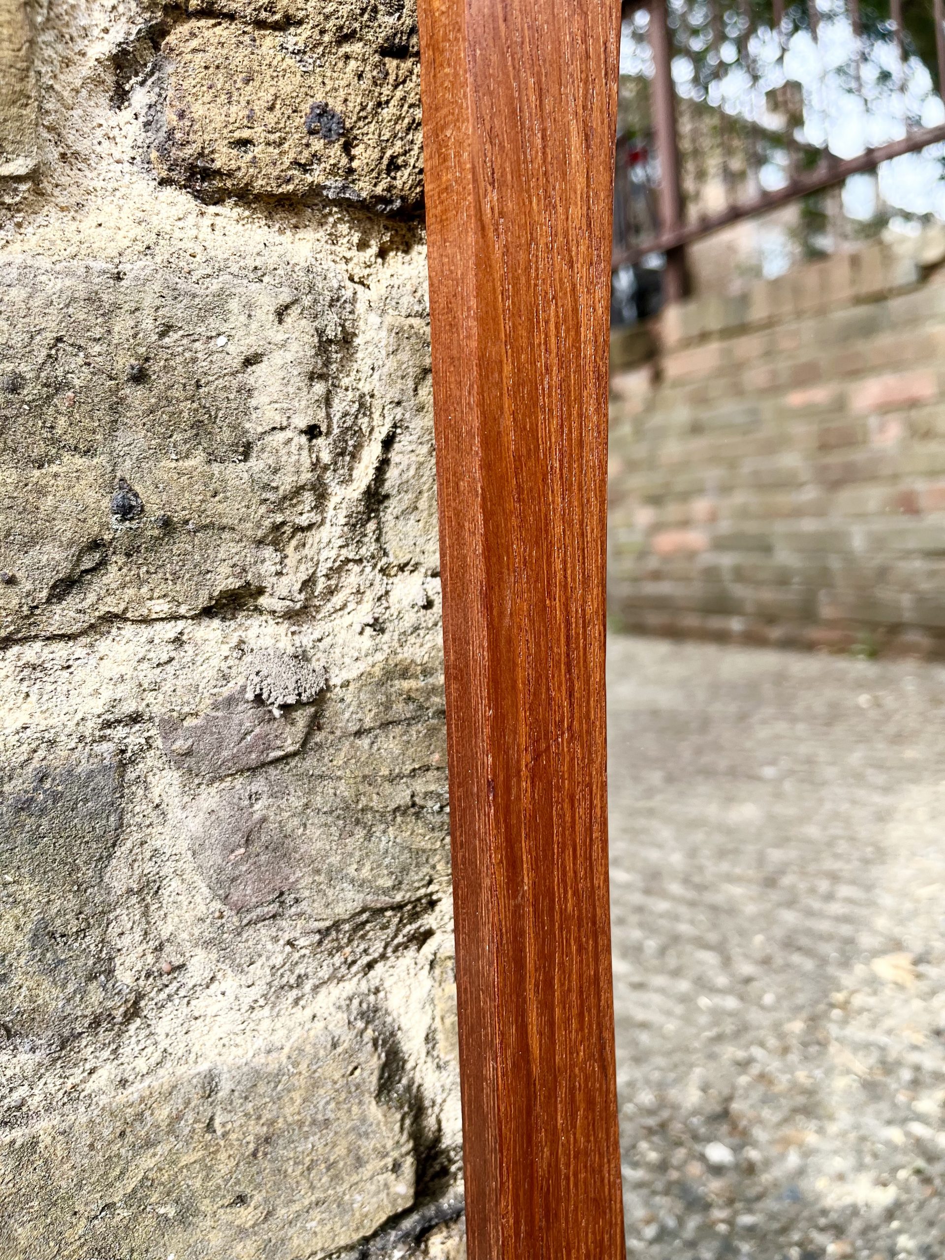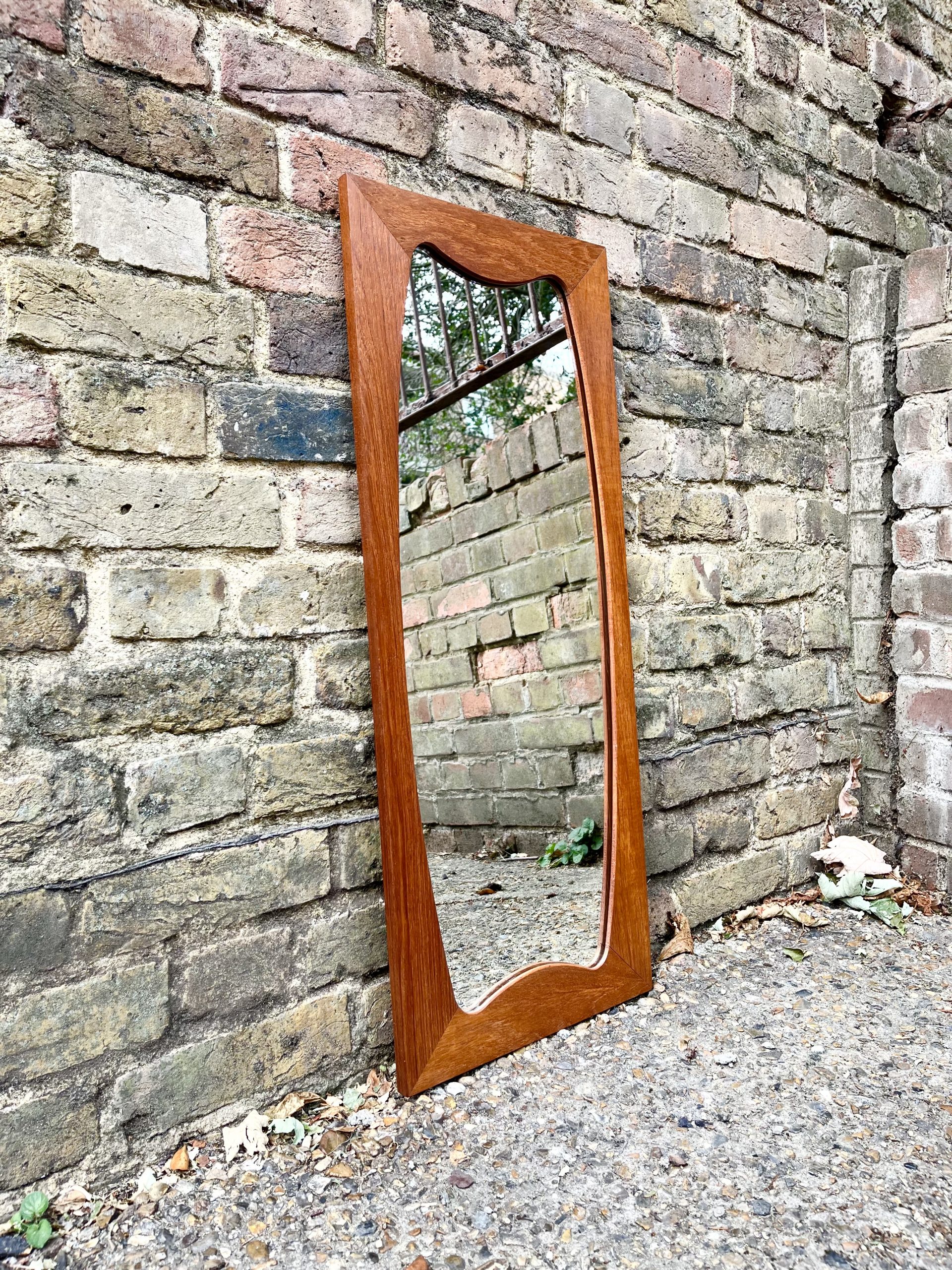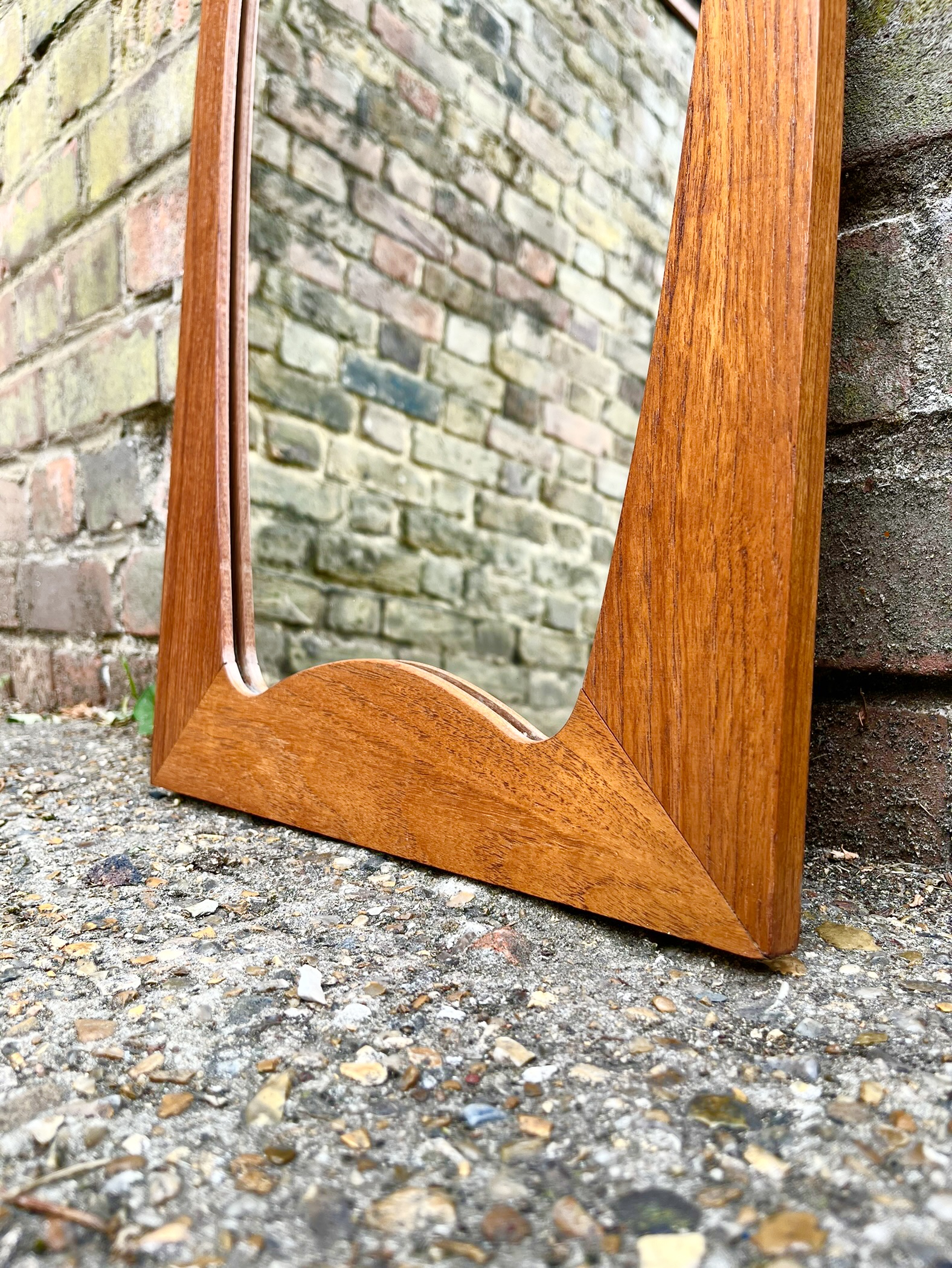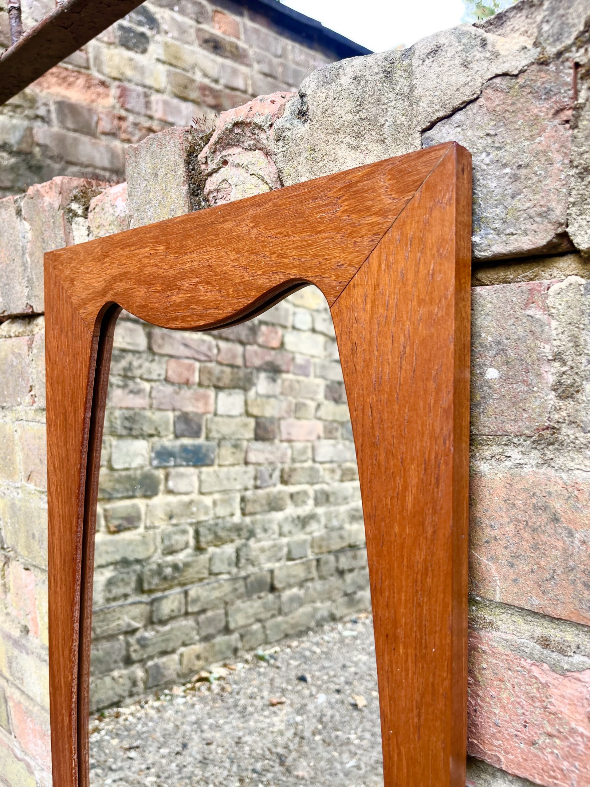 Just catching the early morning rays, this mid-century wall mirror with an unusual sculpted teak frame!