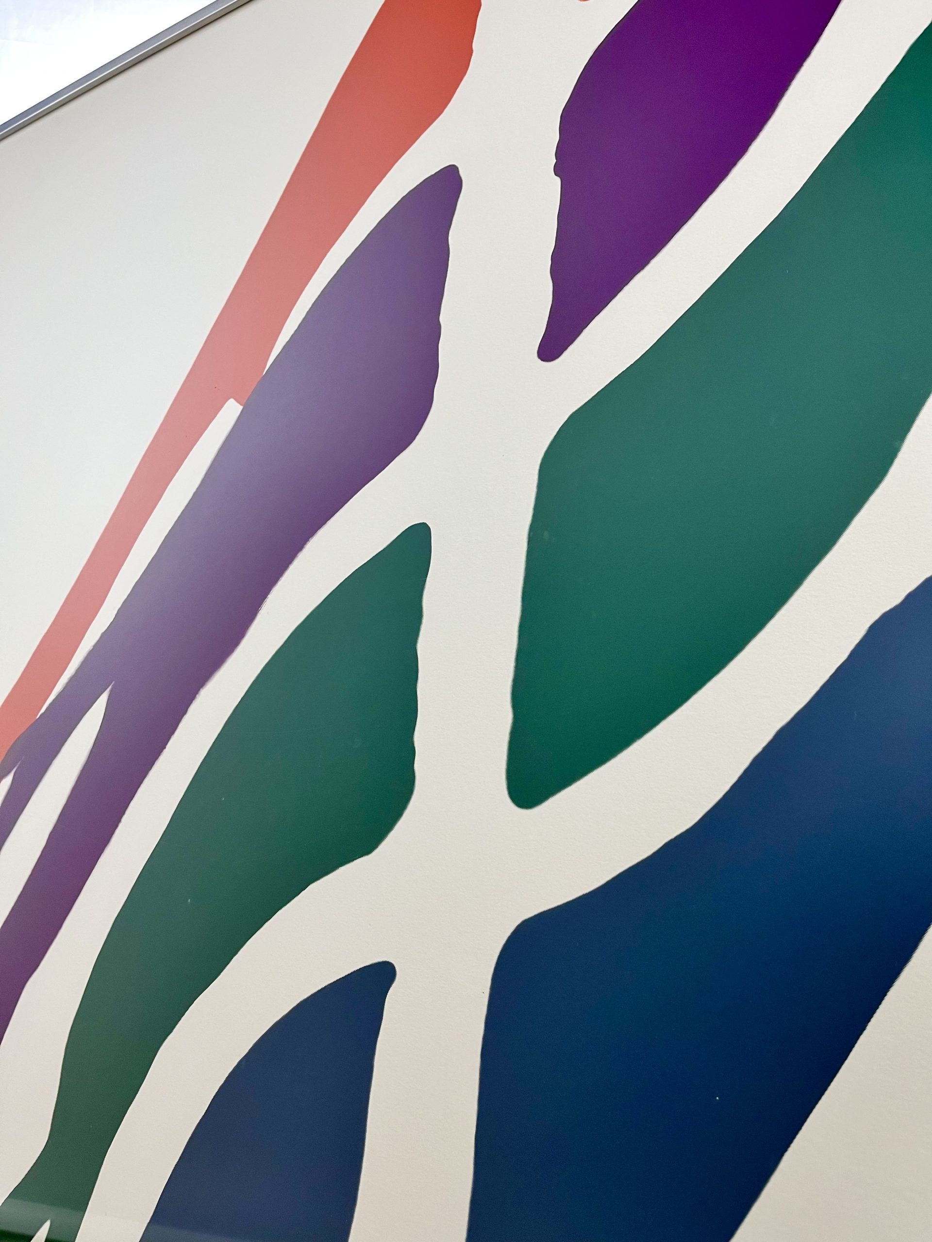 And impressive art too, this original and large museum lithograph of Morris Louis’s ‘Delta Eta’ (1960).
