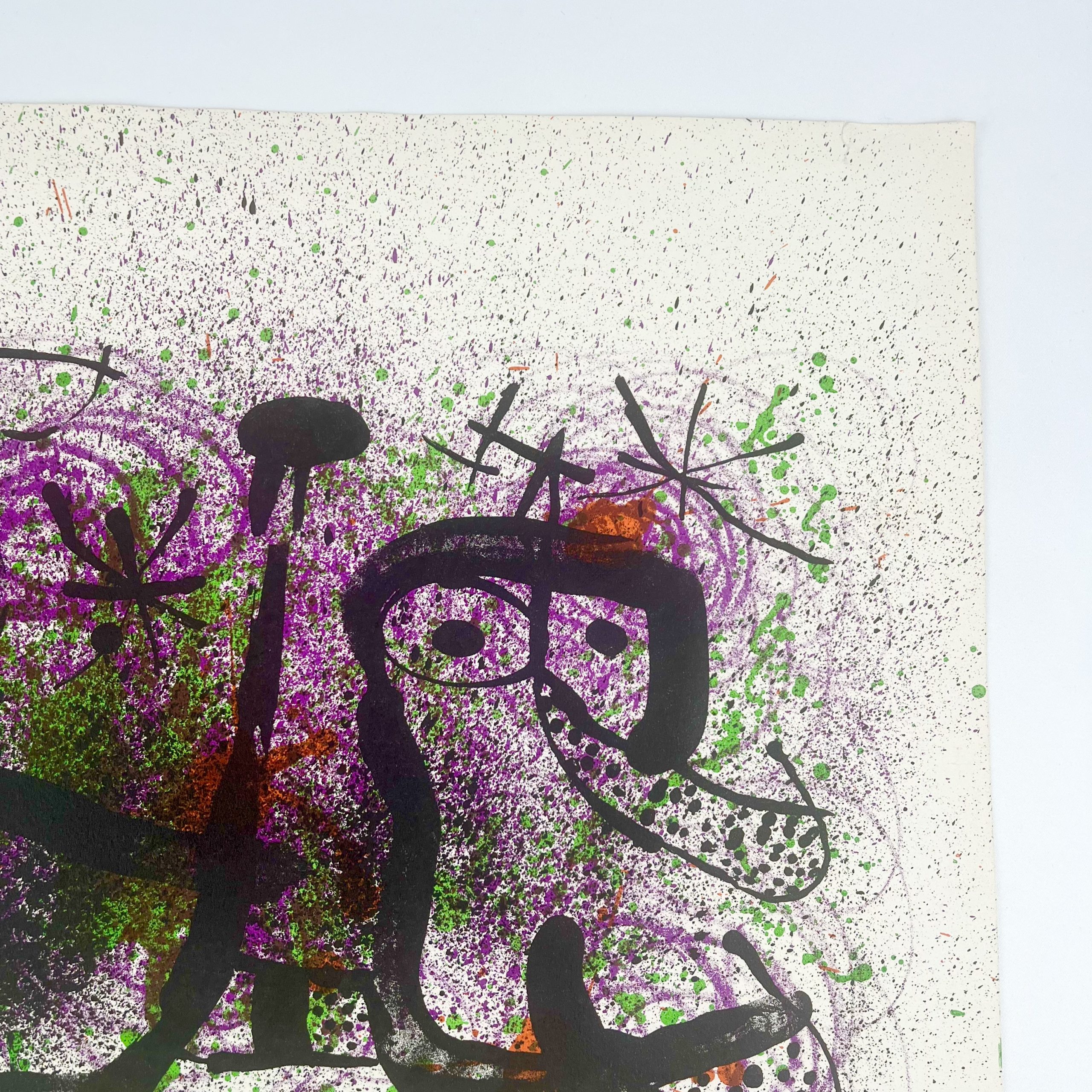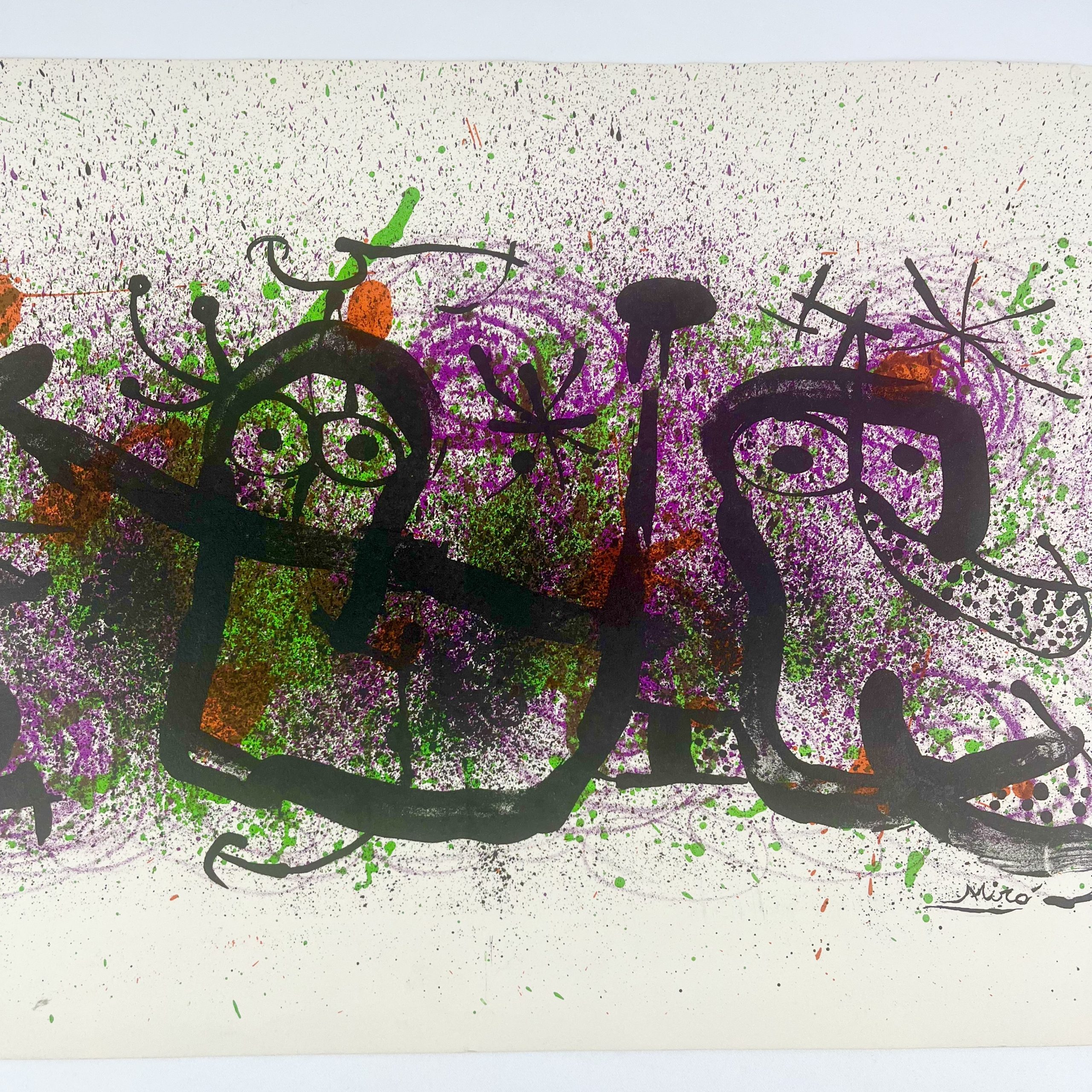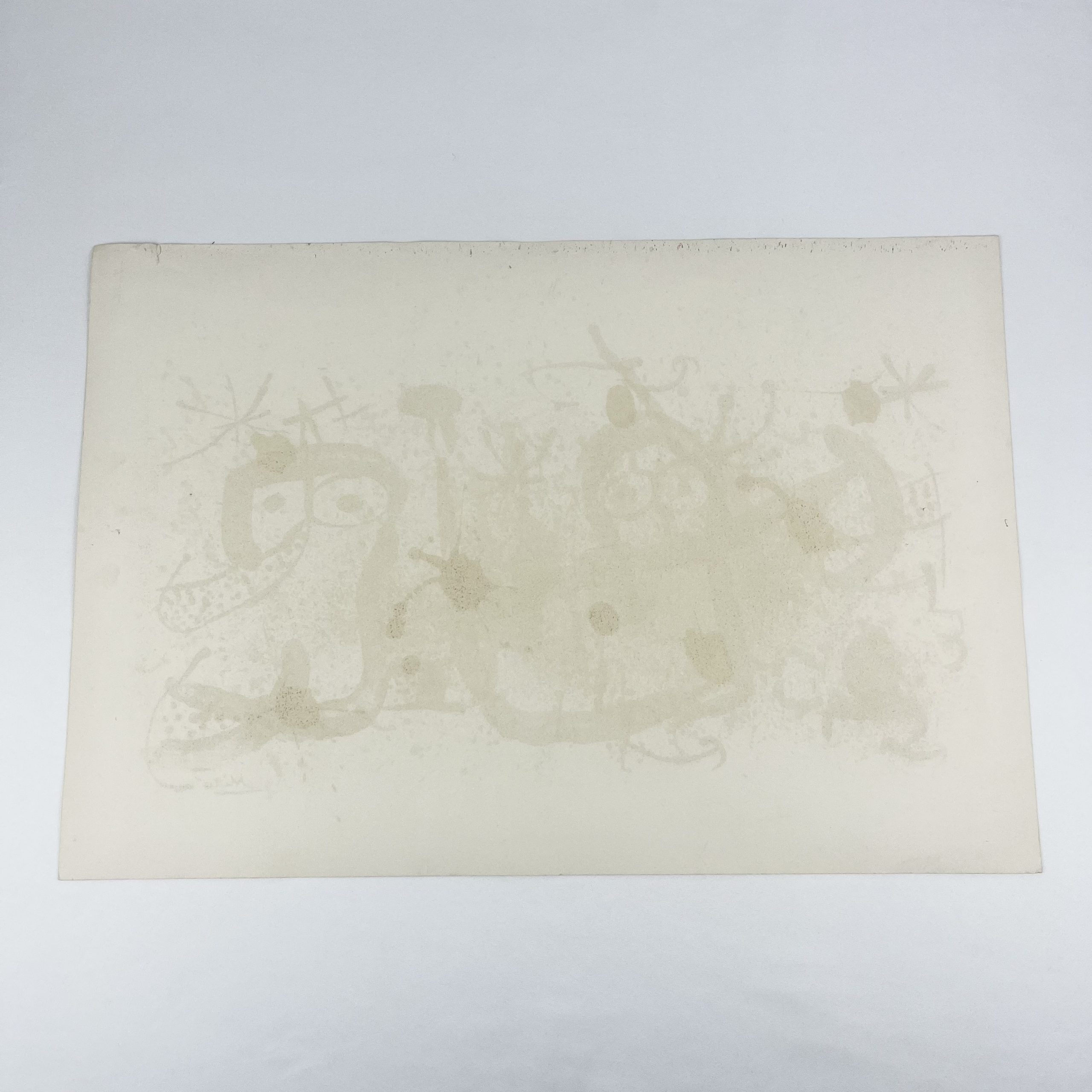 Joan Miró was a Spanish artist who was known for his abstract and surrealist artwork. He was active in the printmaking medium, creating lithographs, etchings, and linocuts. Miró’s prints often feature biomorphic shapes, bold colours and abstract patterns that are inspired by nature, and the subconscious mind.