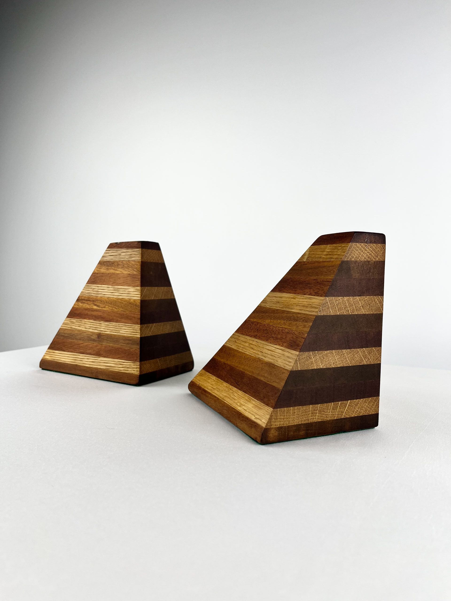 I have two different pairs of these sharp, geometric mid-century bookends!