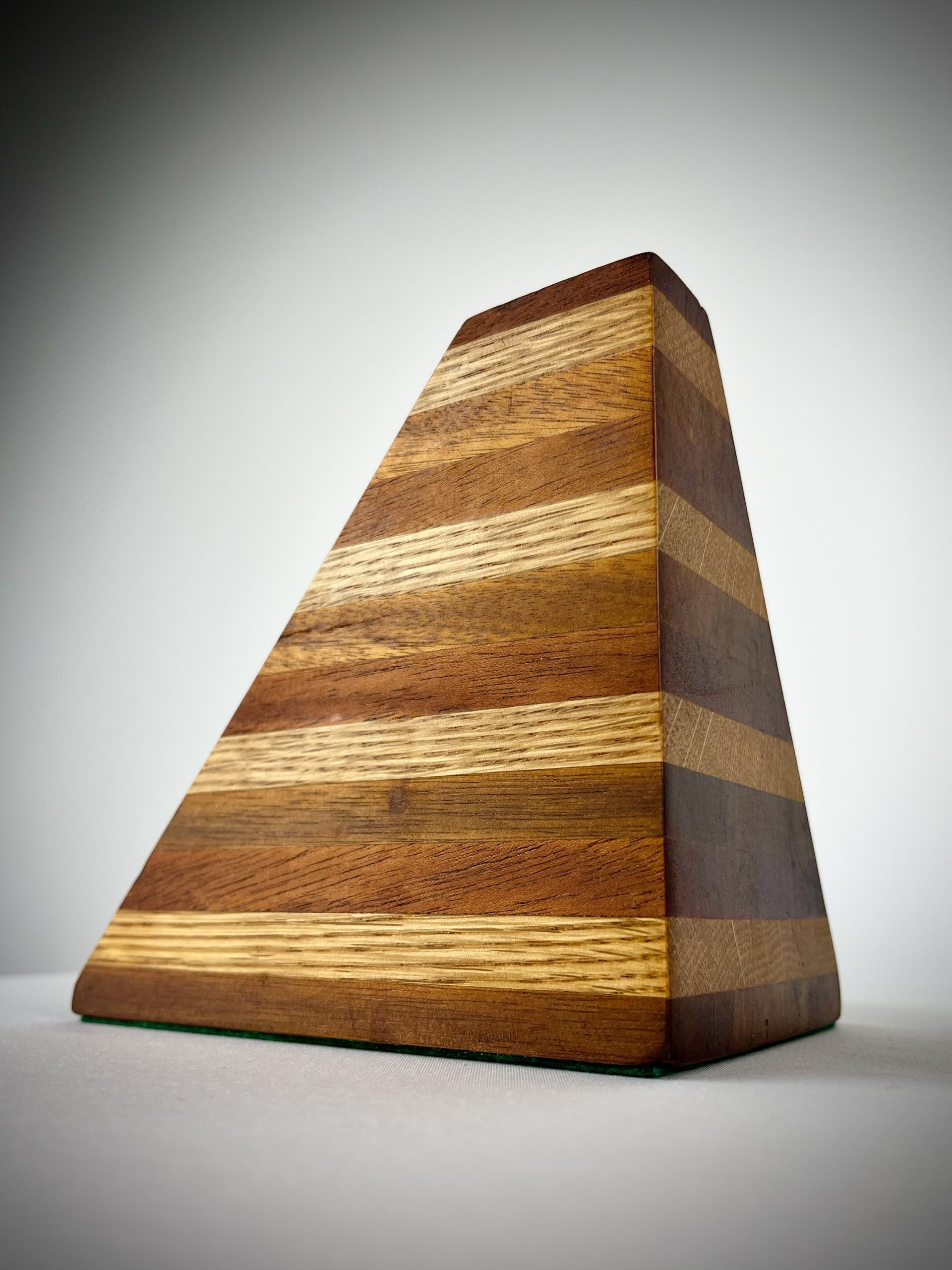 Made from a composite of different hardwood types then shaped into these beautiful angular forms, they come in very good vintage condition and are surprisingly weighty.