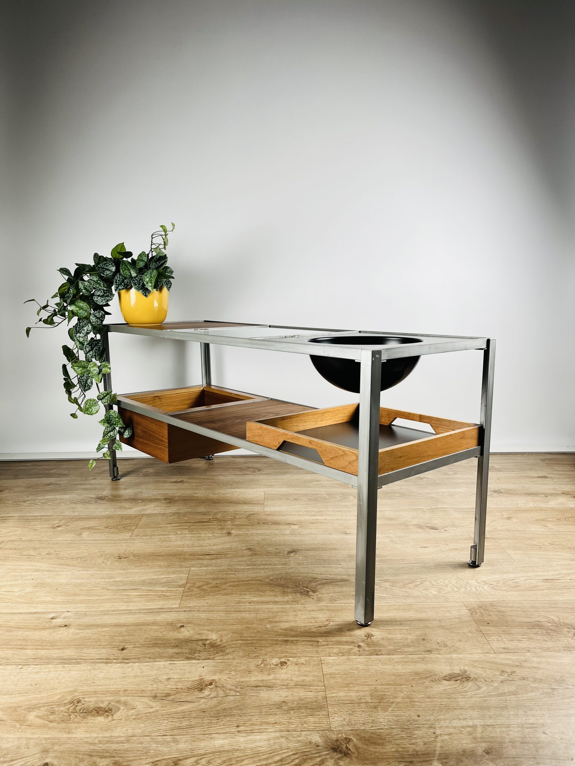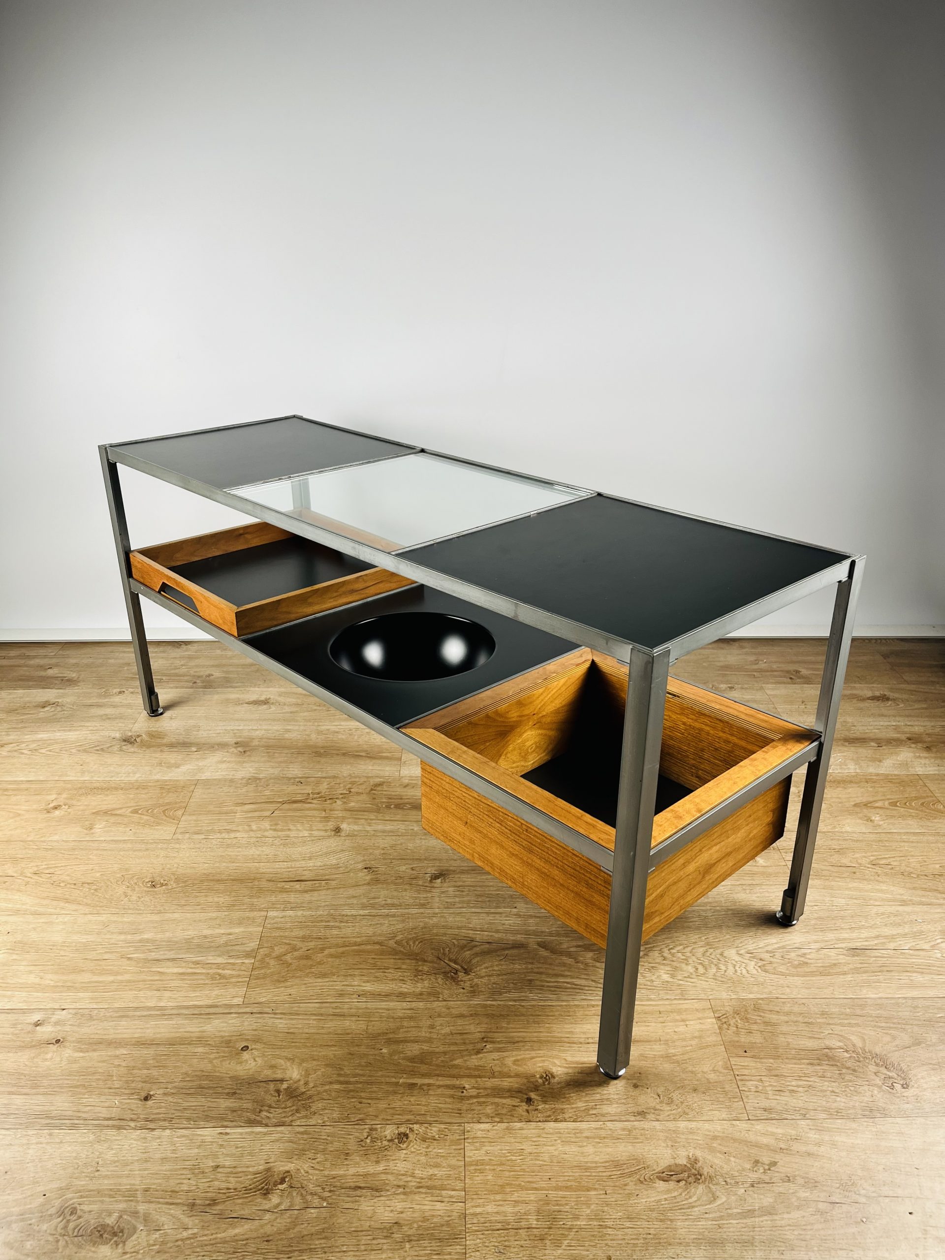 There’s a lot going on with this rare and ingenious modular console table…