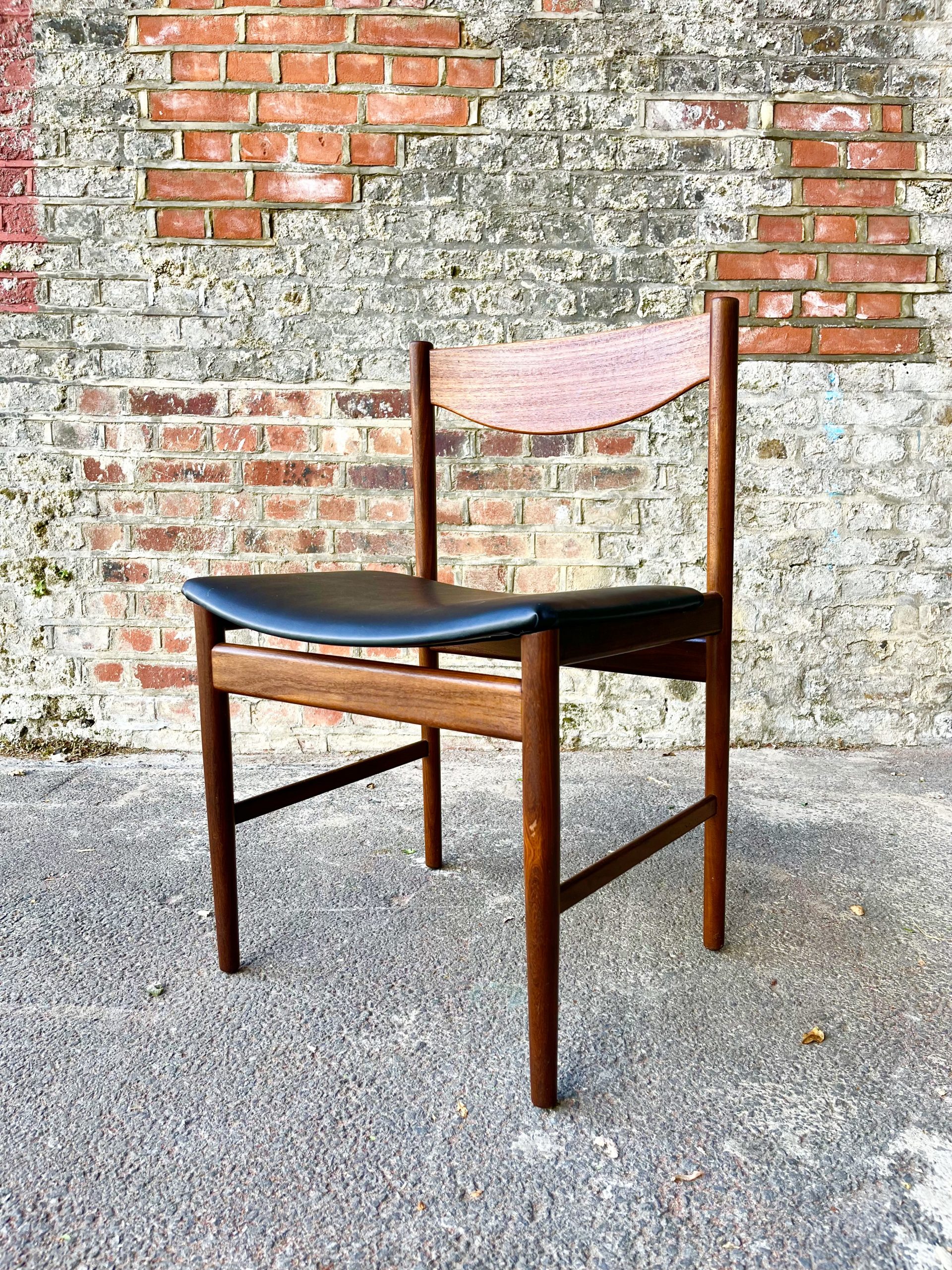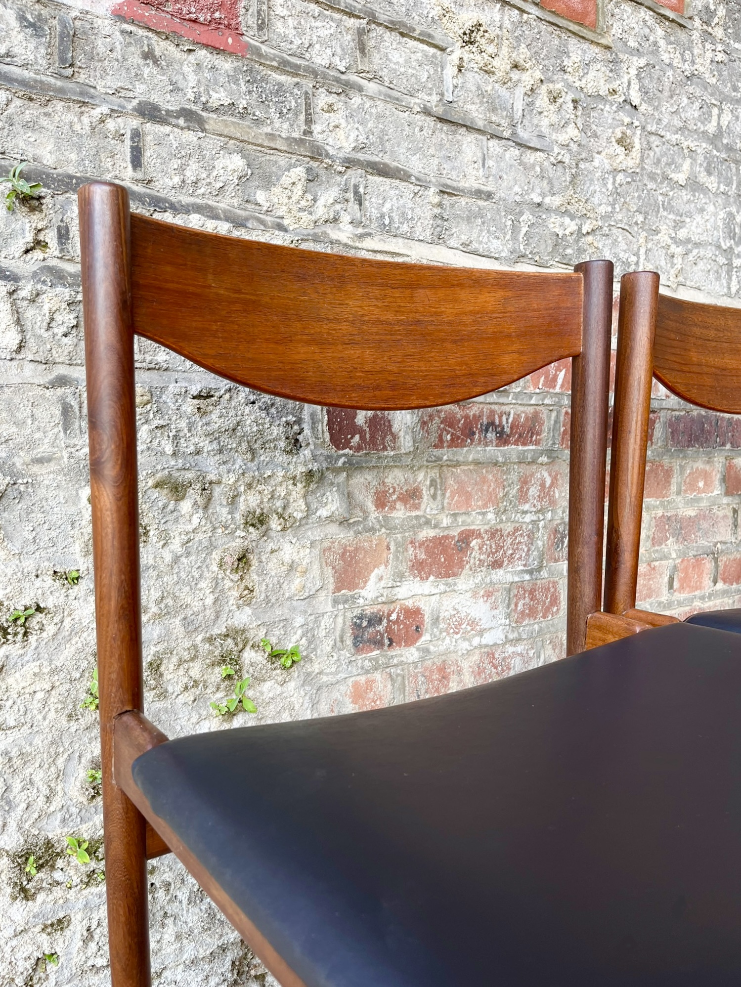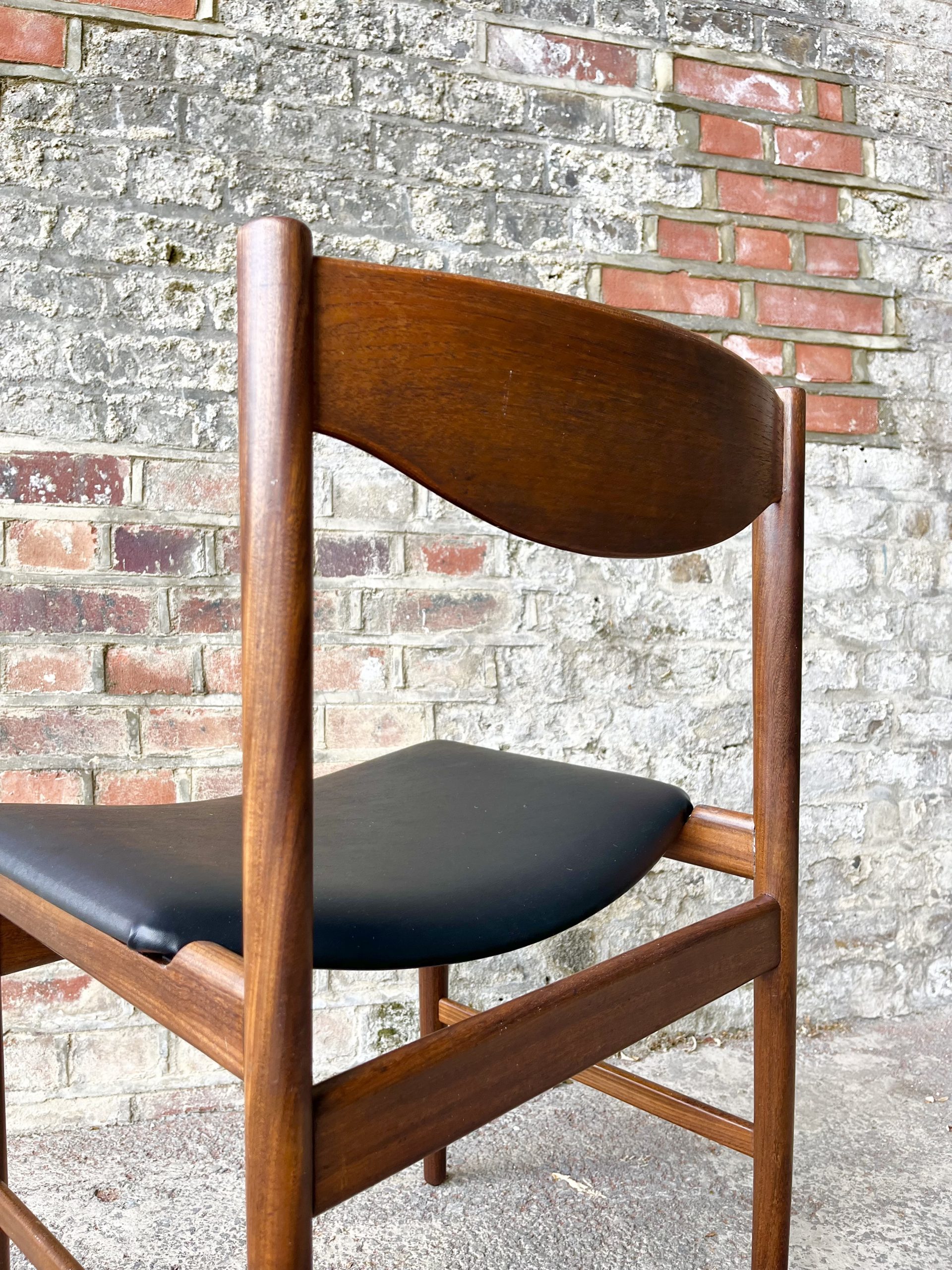 This beautiful set of four teak dining chairs have been recently upholstered in a quality black leatherette and come in very good vintage condition with only minor signs of age… and have that rich teak colour that you just don’t get from modern furniture!