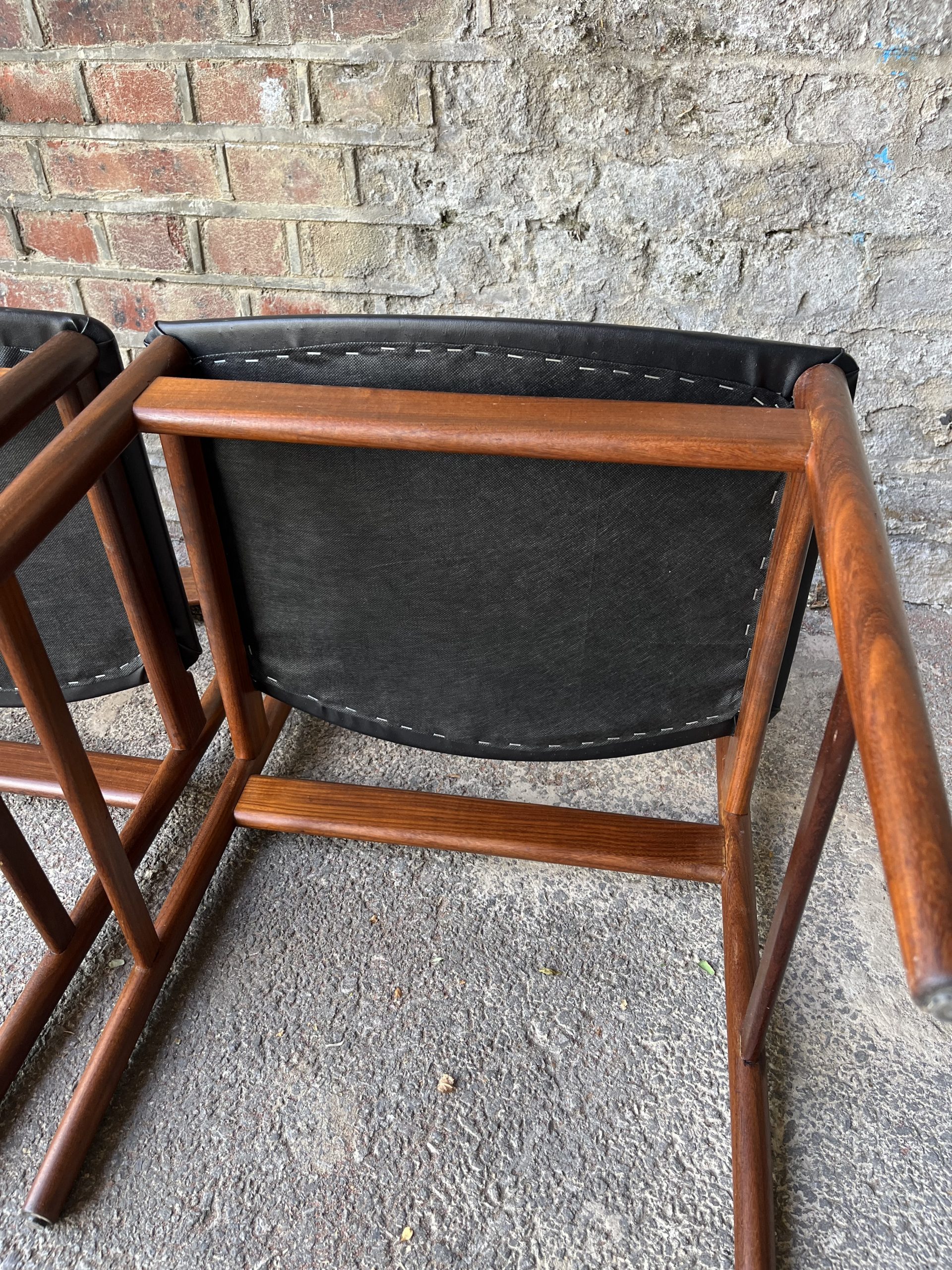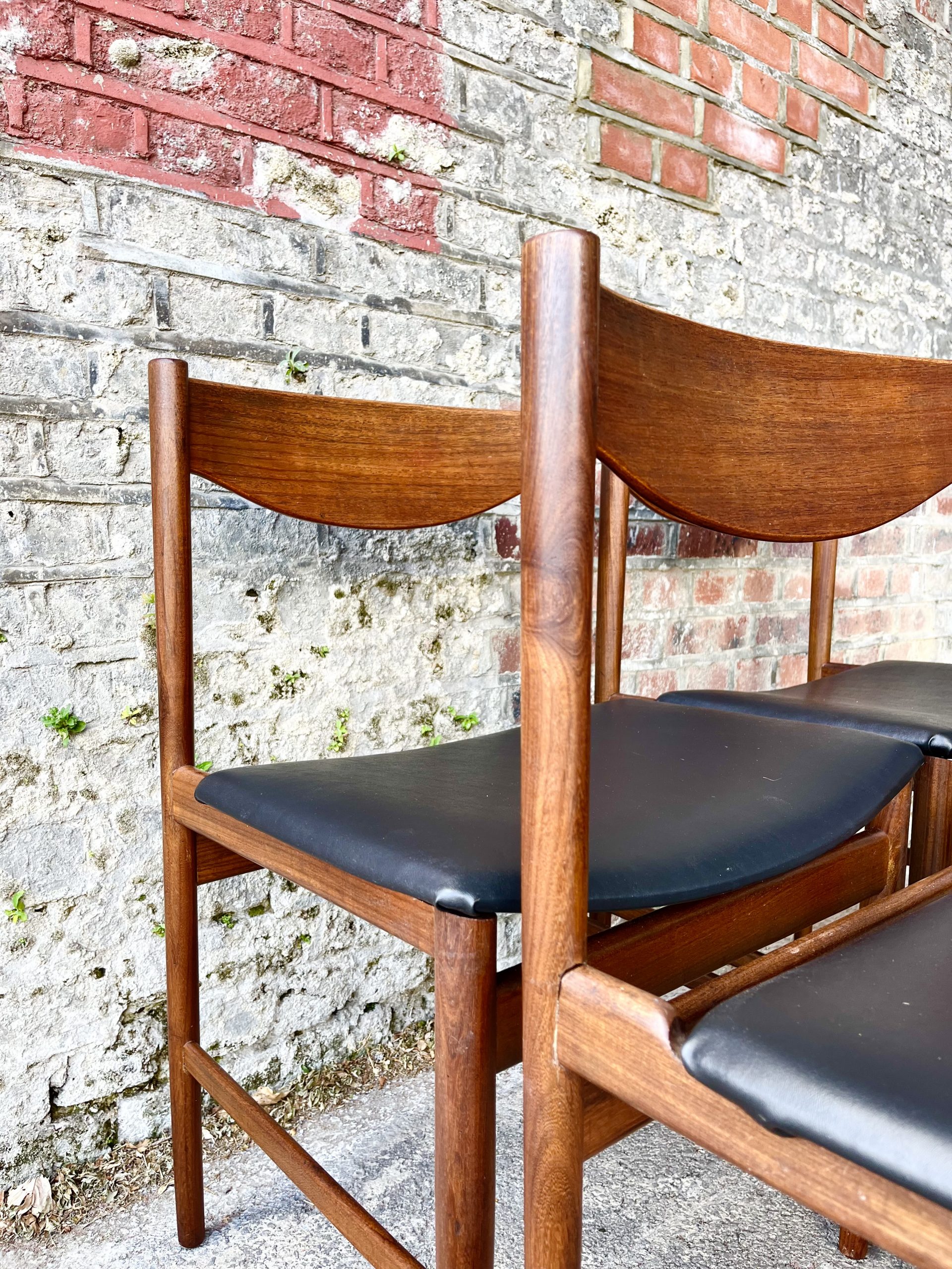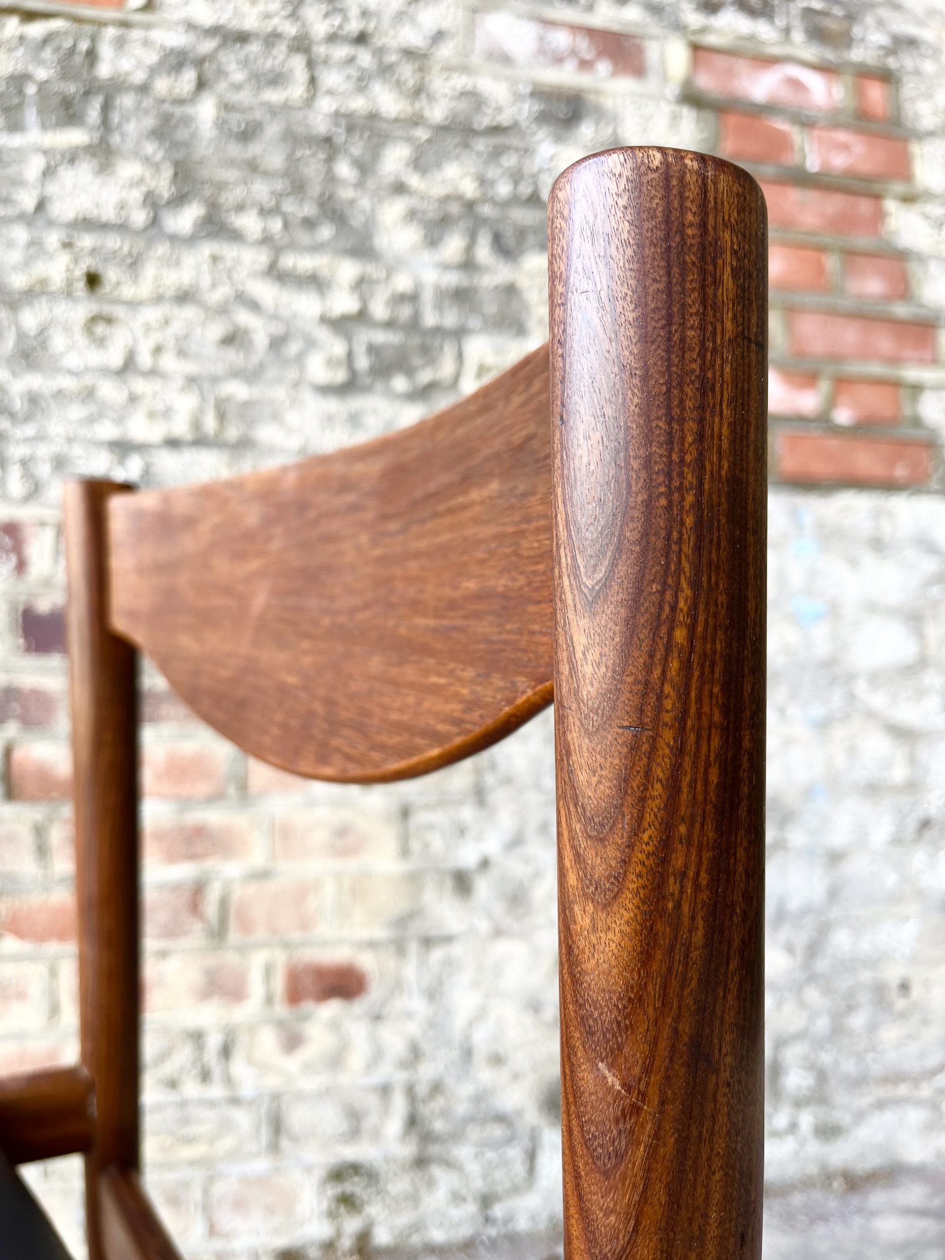 This beautiful set of four teak dining chairs have been recently upholstered in a quality black leatherette and come in very good vintage condition with only minor signs of age… and have that rich teak colour that you just don’t get from modern furniture!