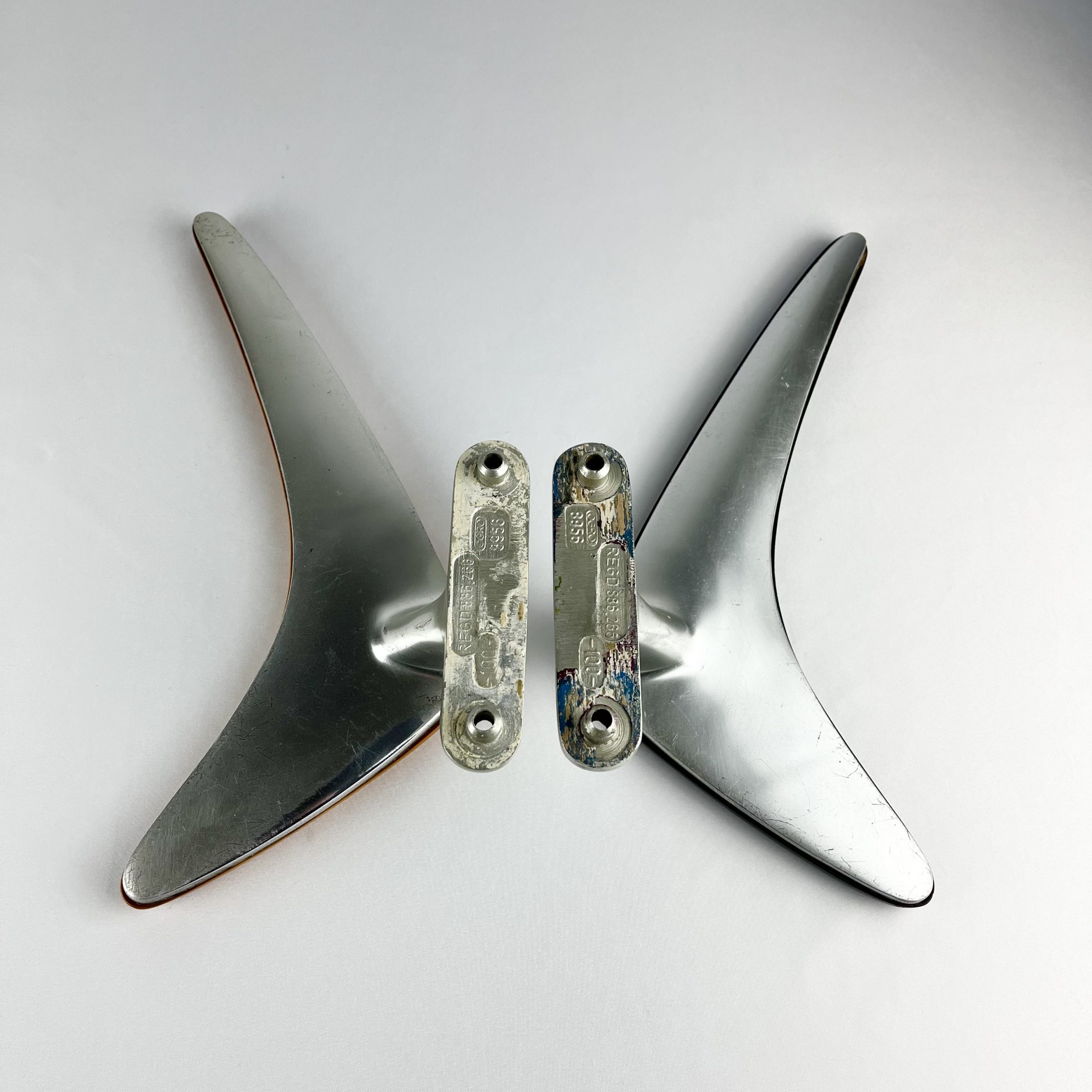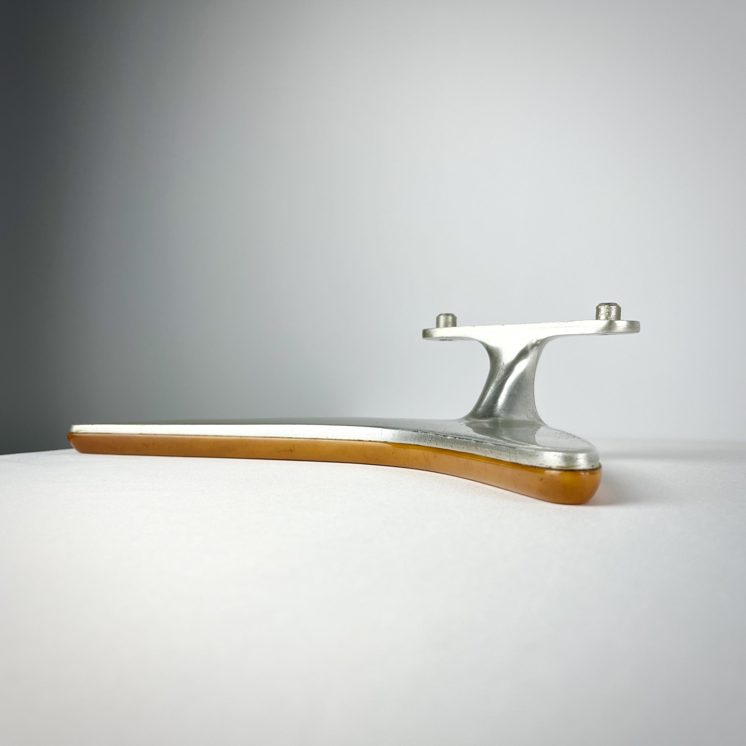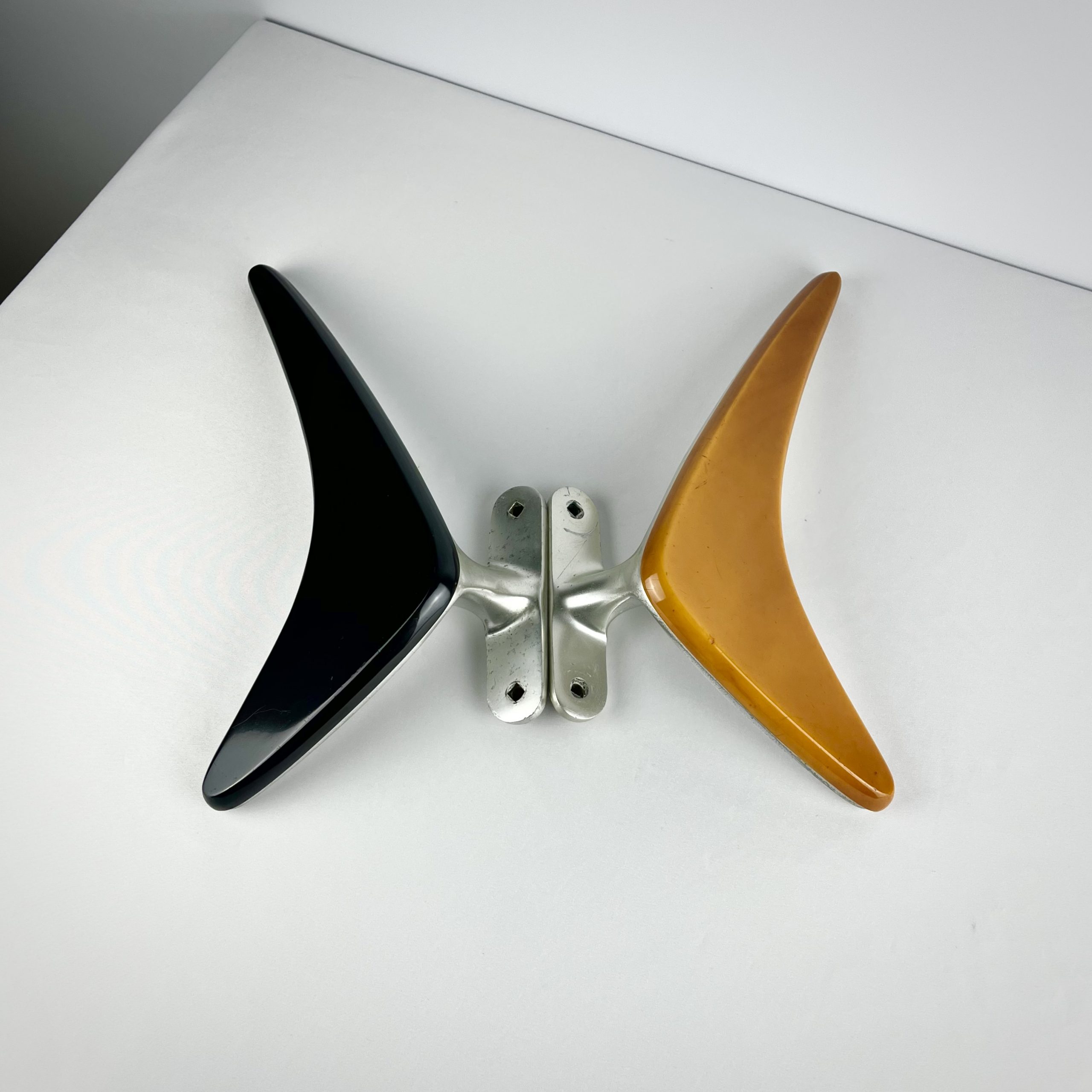 Constructed from aluminium and hard resin, their boomerang shaped design gives them a distinctive, aerofoil-like appearance!