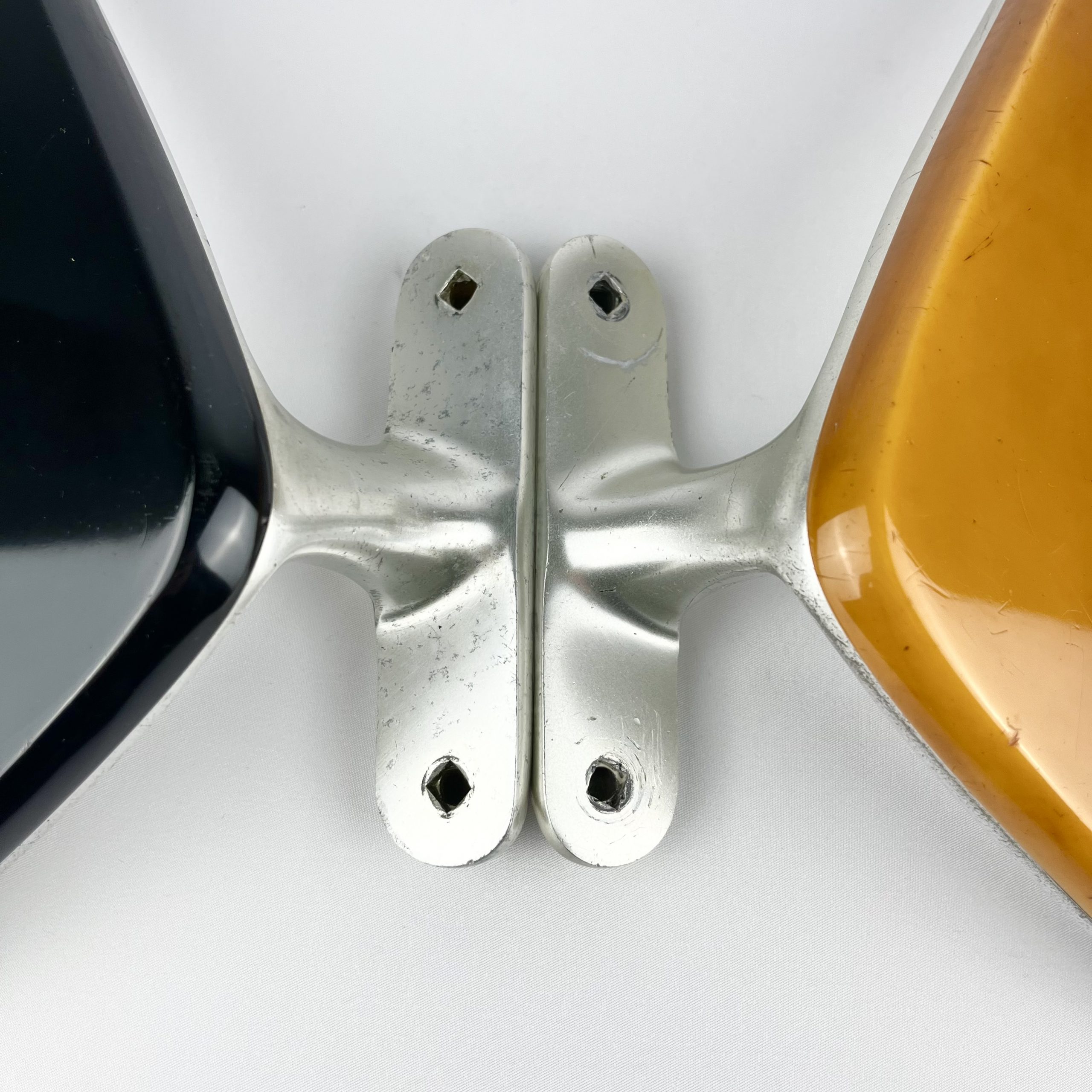 One in black and the other in amber, these large door pulls can be fixed to a pair of double doors or each side of a single door, with their contrasting colours complimenting the interior of each room.