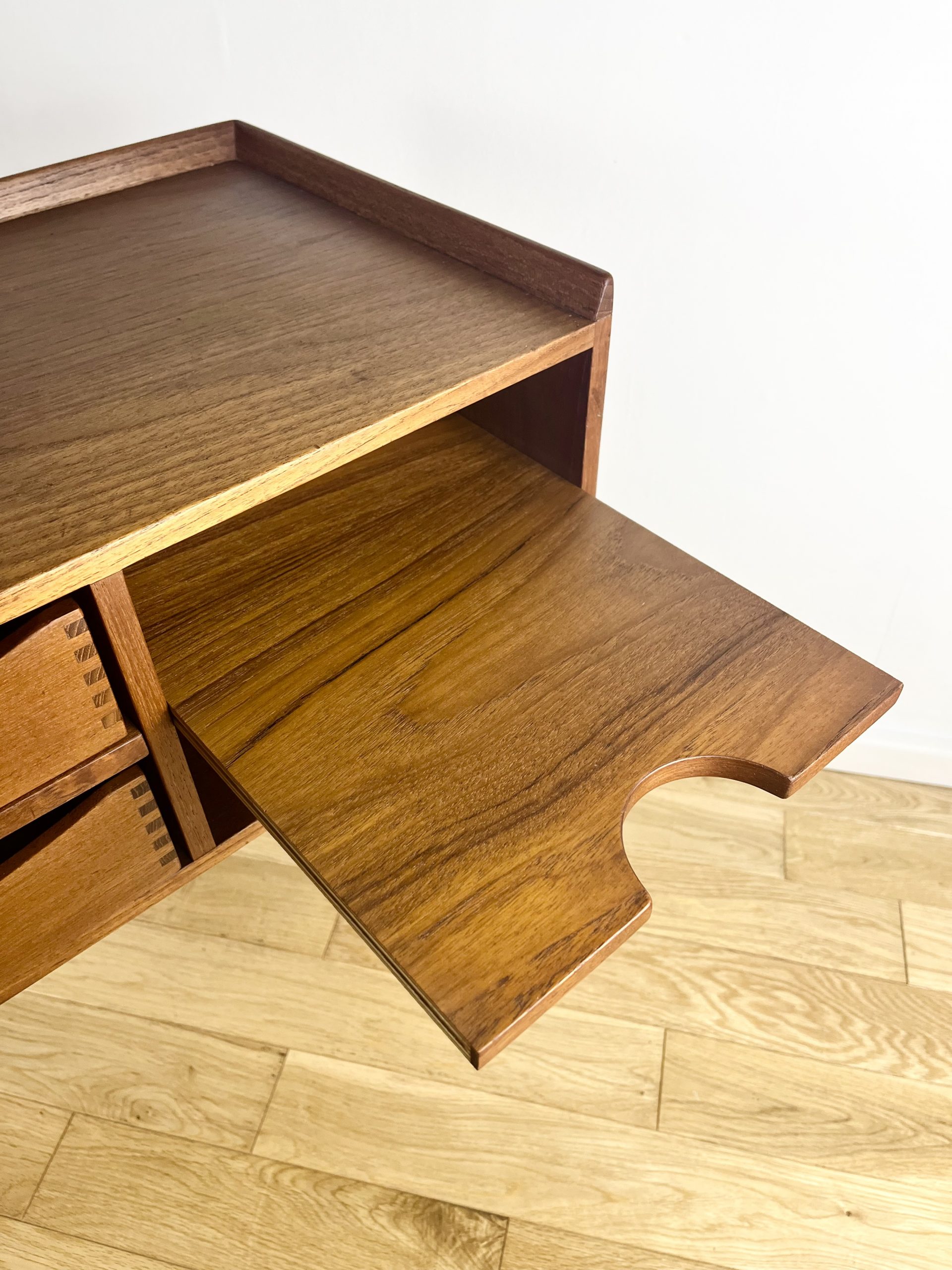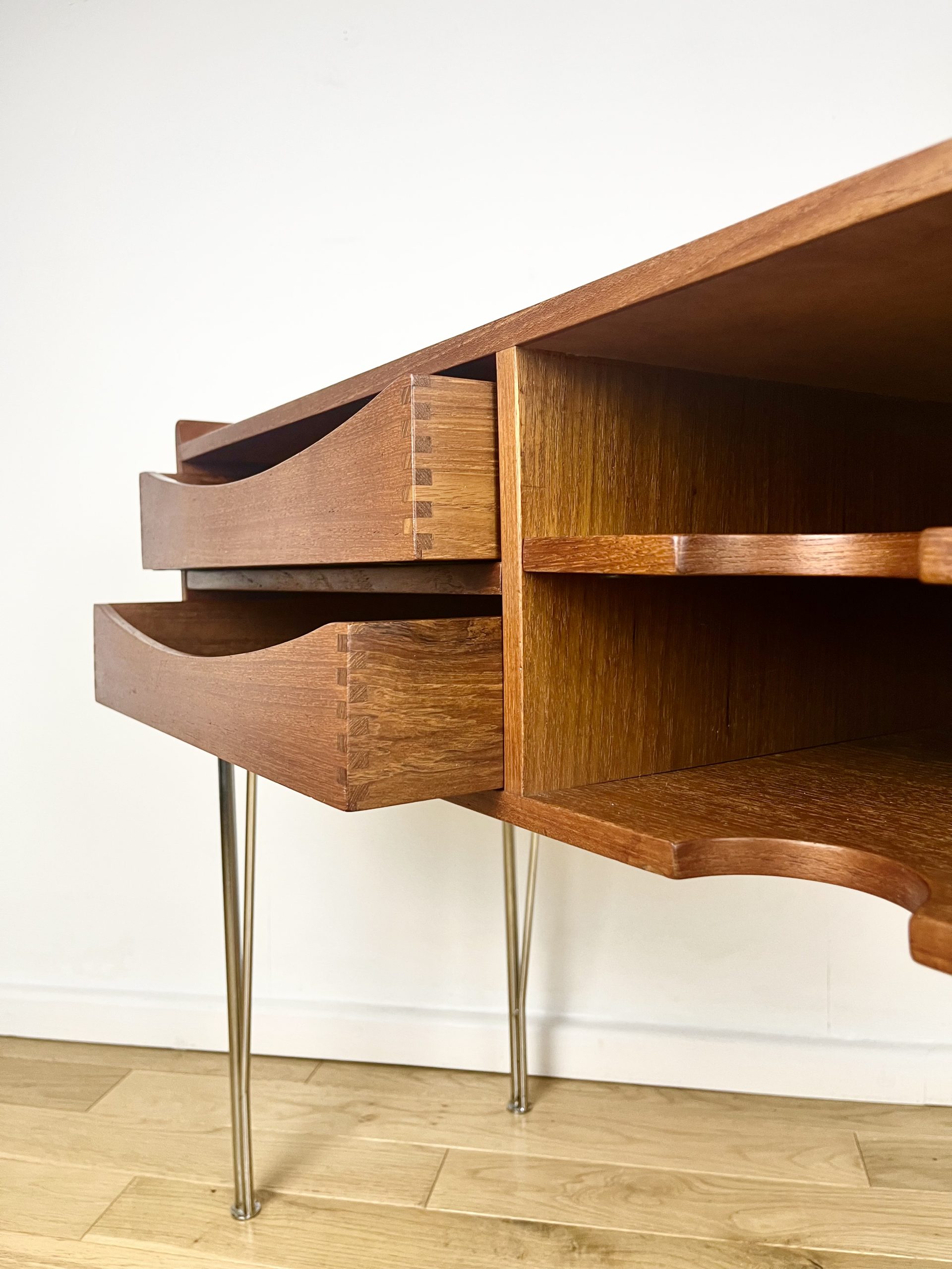 The few examples I can find of this oddball design are attributed to Danish designer, Heinrich Roepstorff, I think due to those distinctive chrome legs. While I can’t find any definitive evidence of this, it is a beautifully made piece of furniture and is surprisingly solid and weighty! It also has a veneered back, which is another indication of quality.