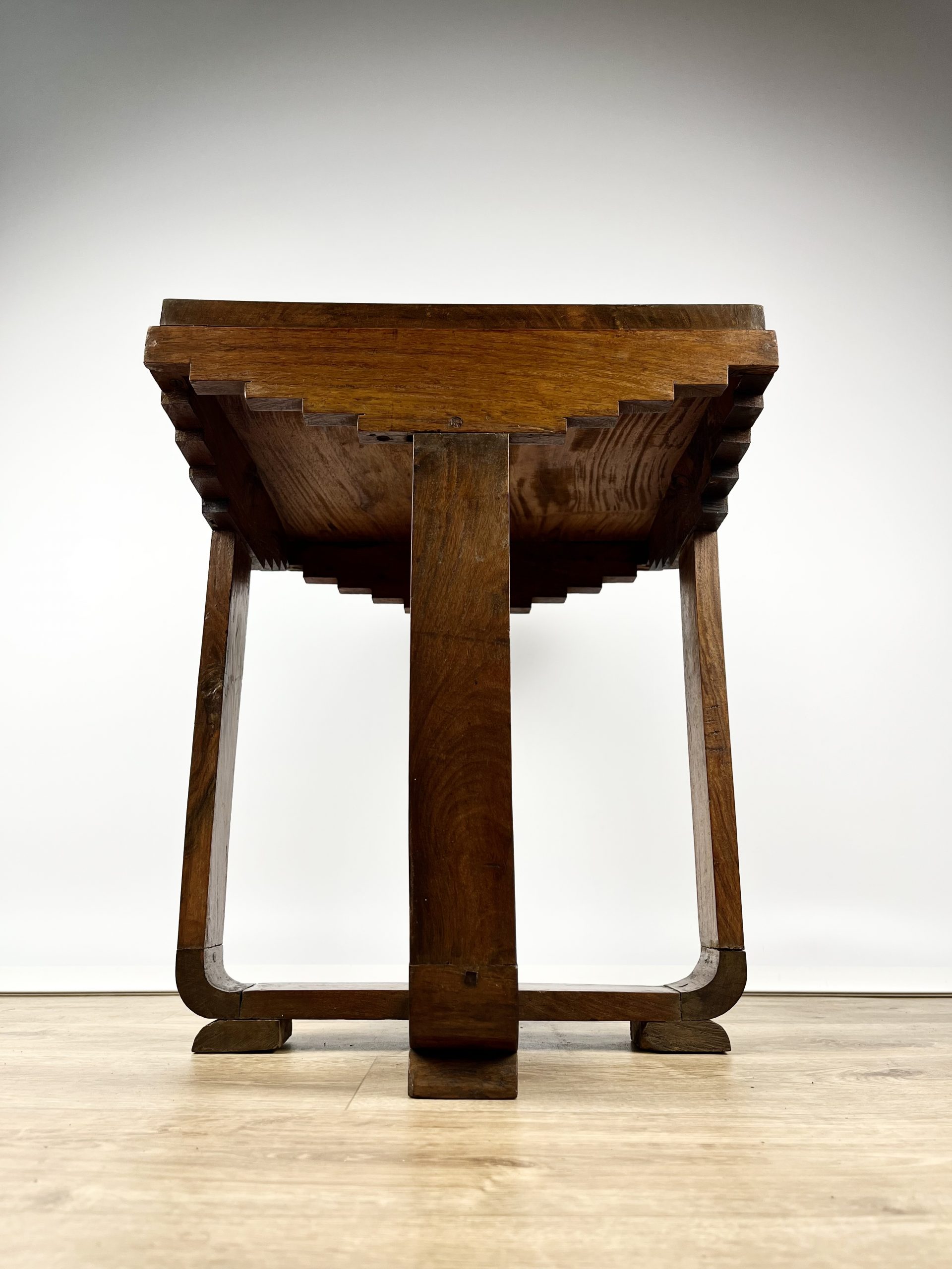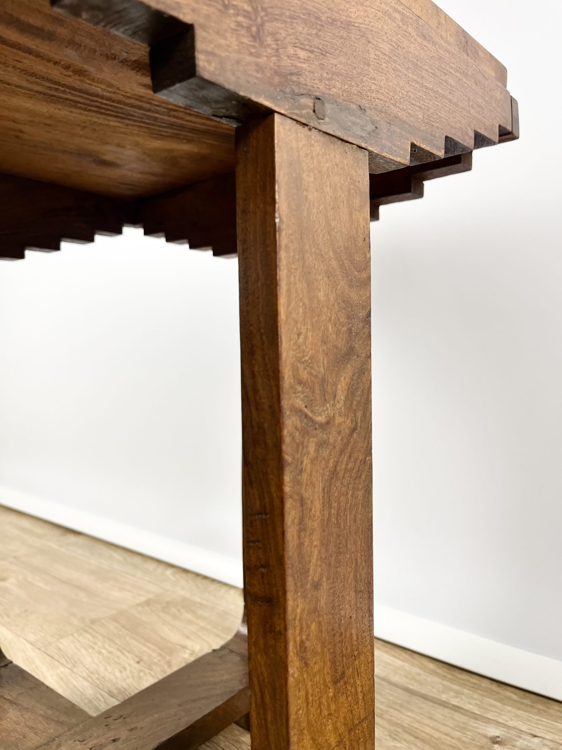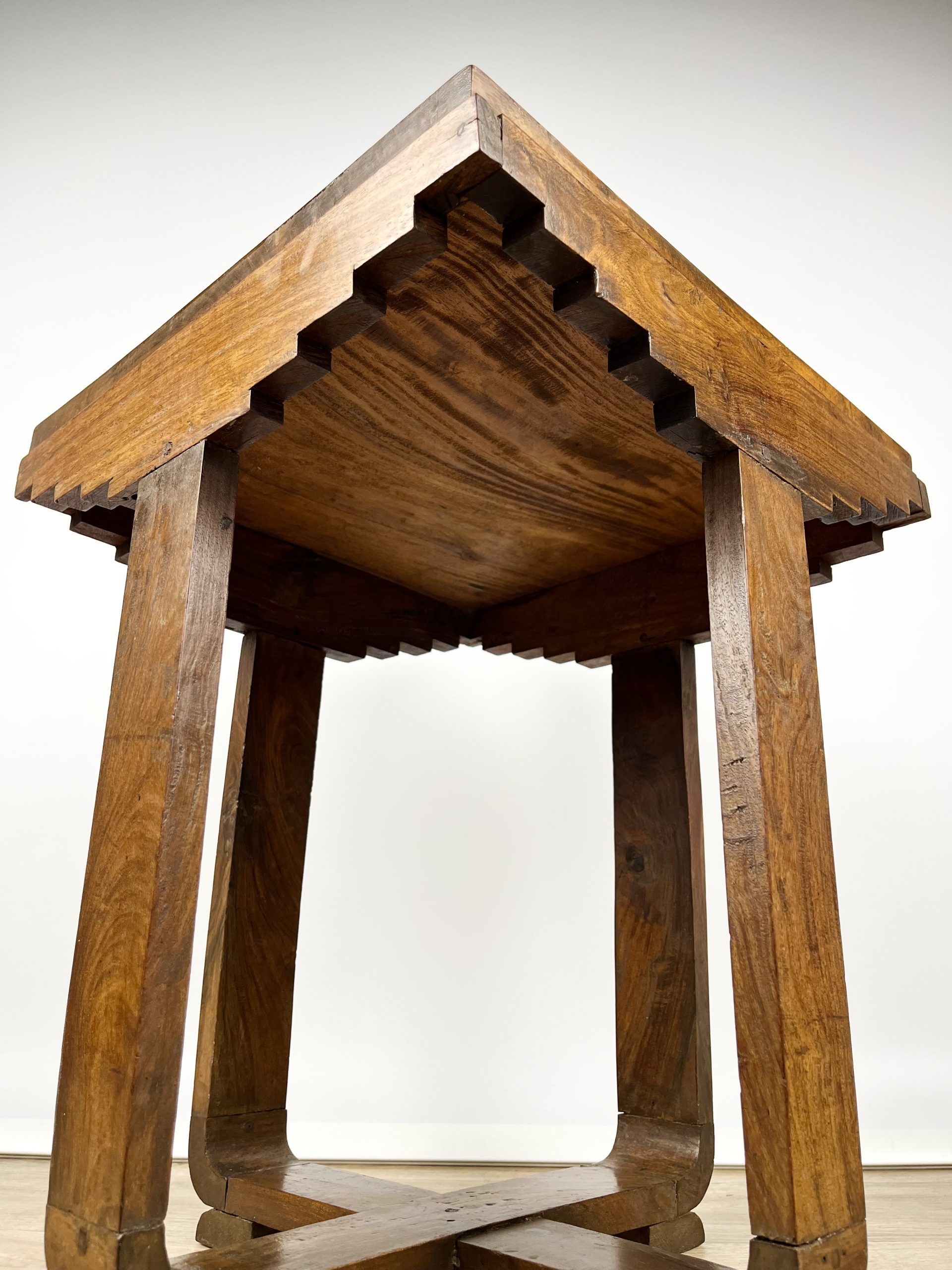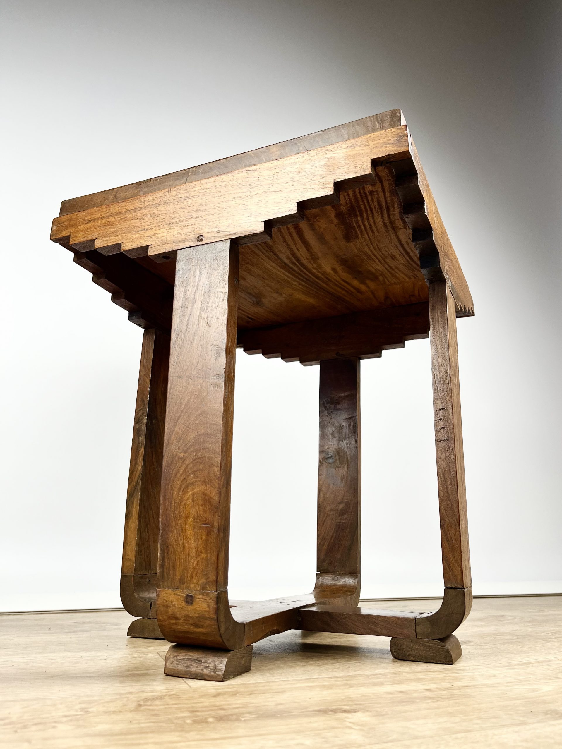 Crudely constructed from solid walnut, it features a geometric stepped design which gives it an almost Tramp Art aesthetic.