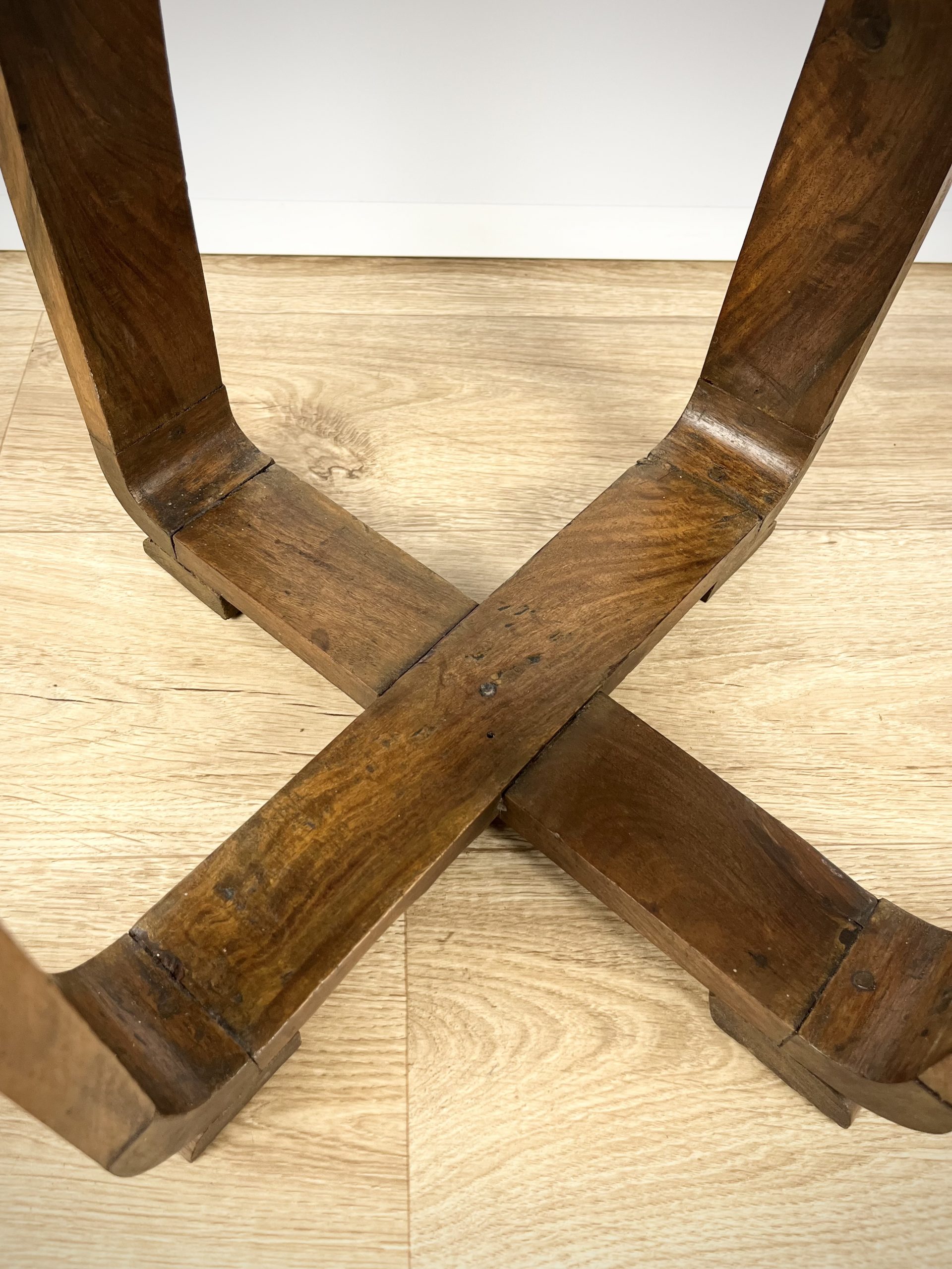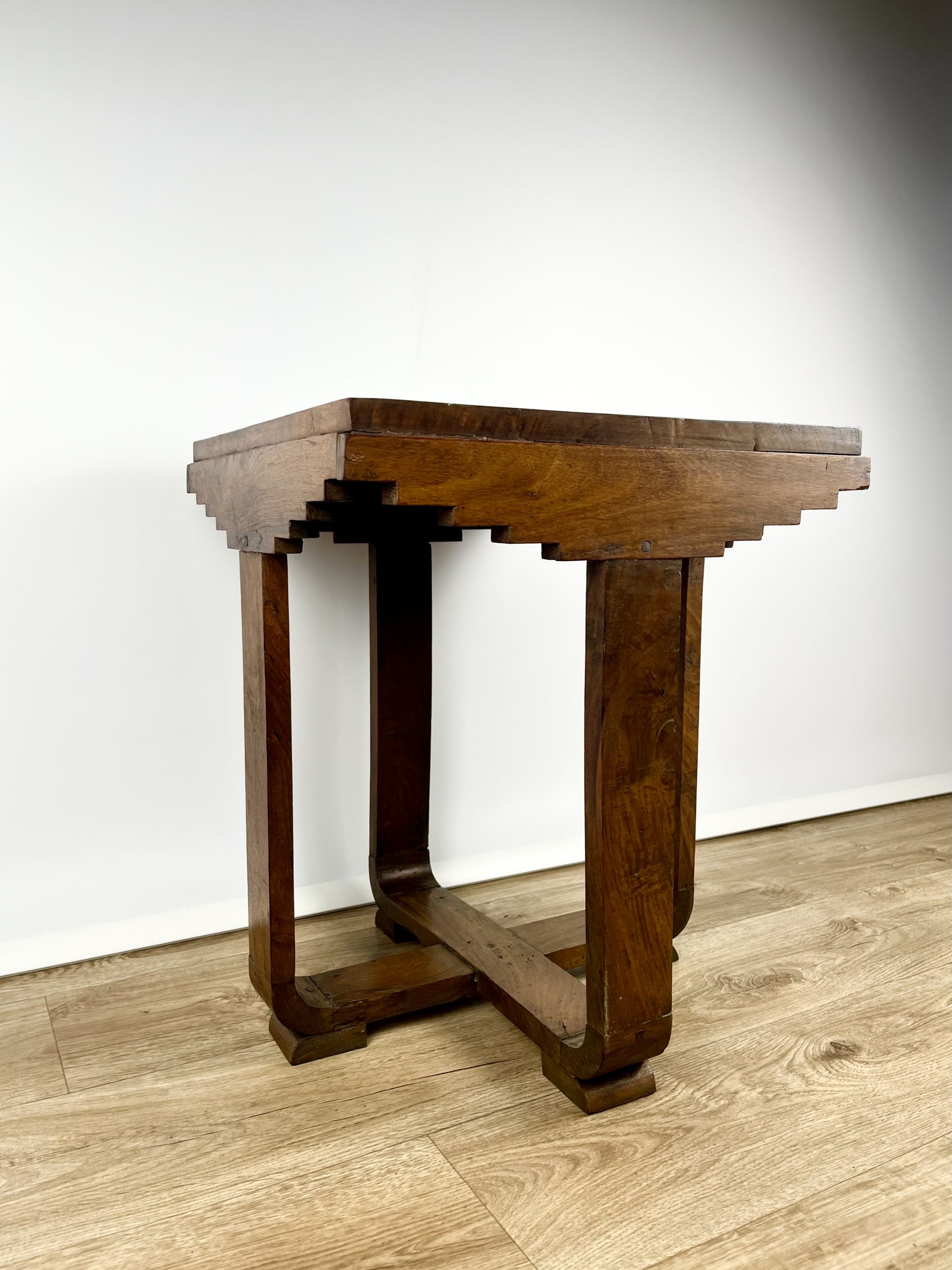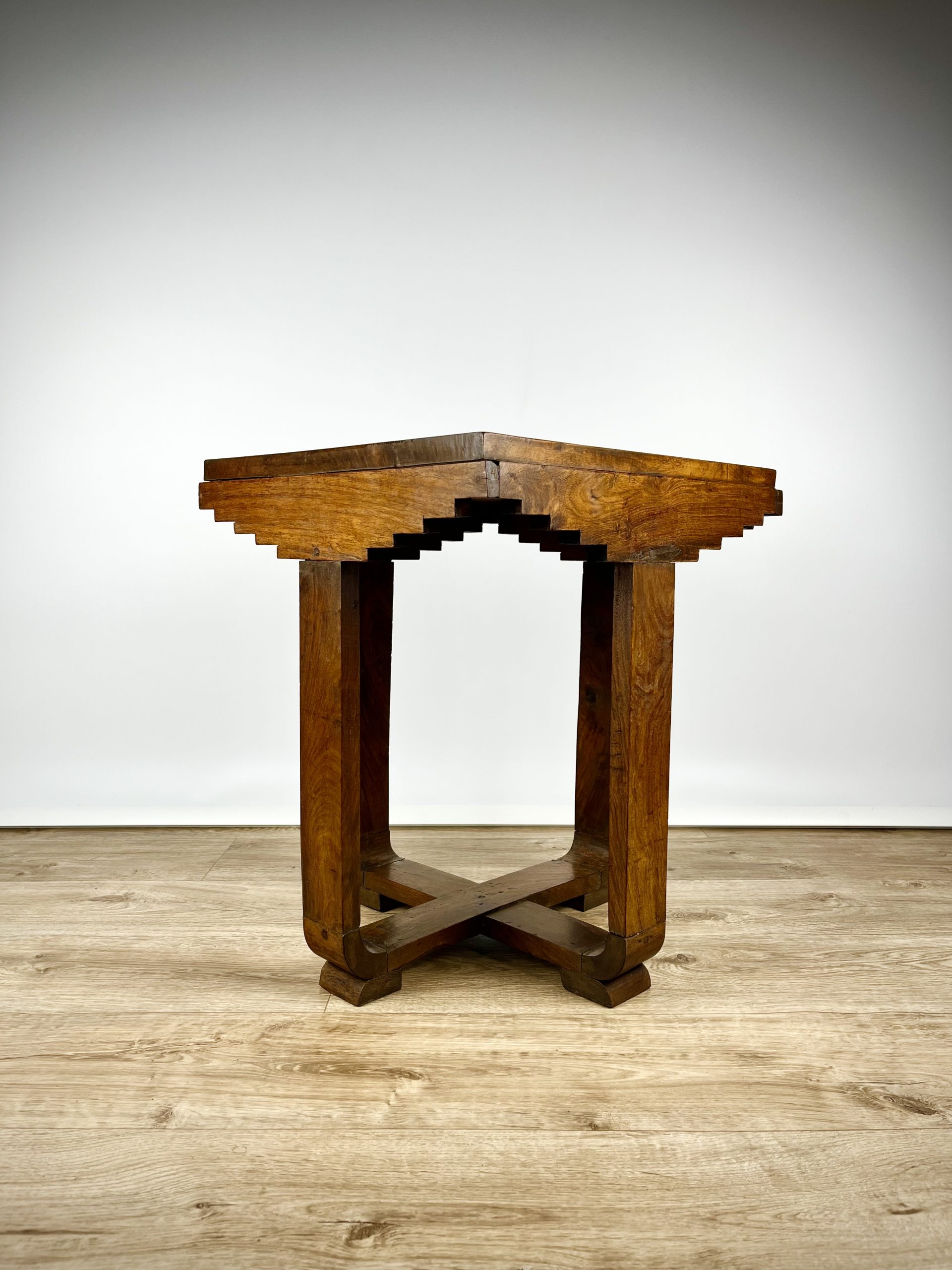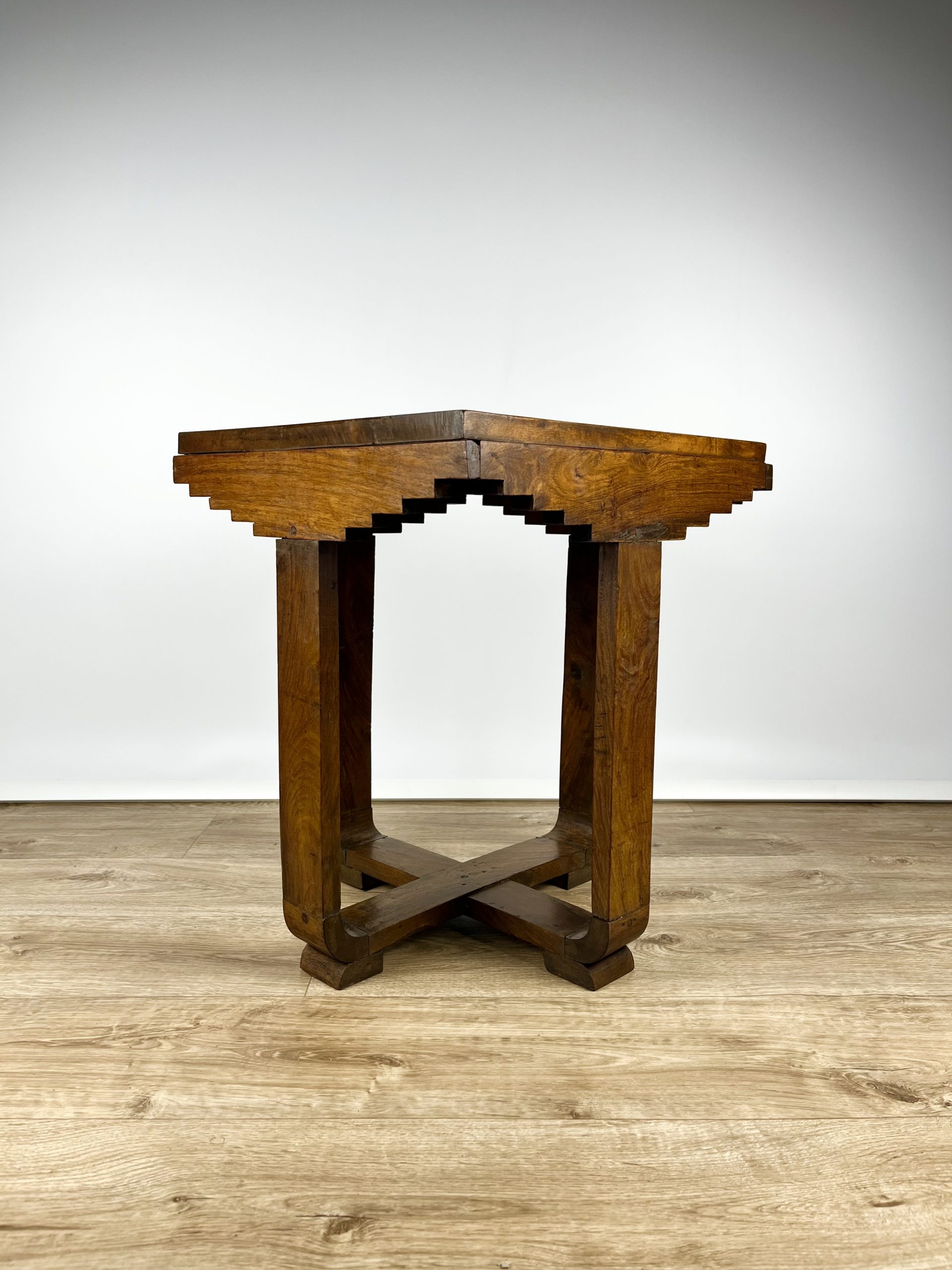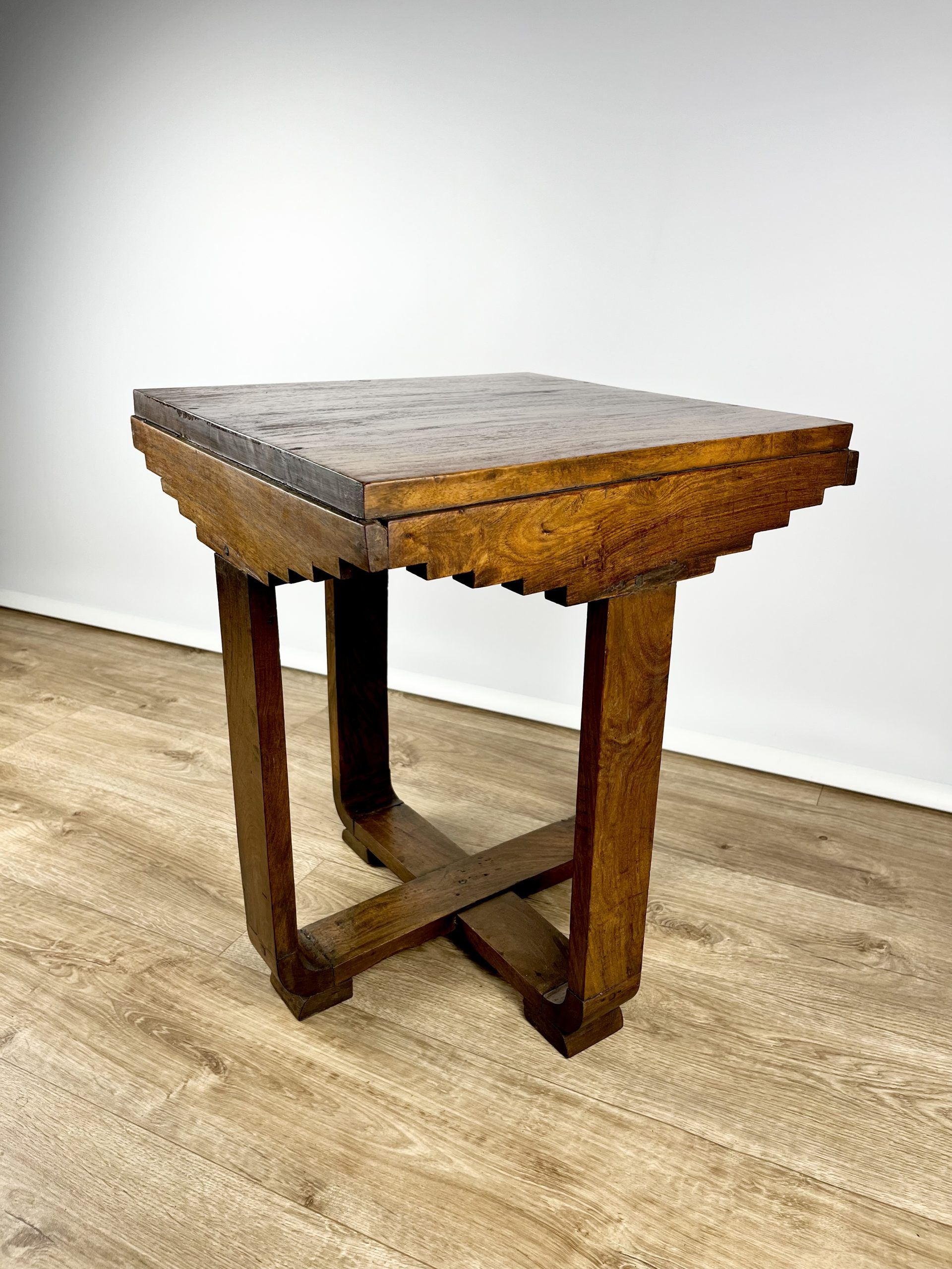 Crudely constructed from solid walnut, it features a geometric stepped design which gives it an almost Tramp Art aesthetic.