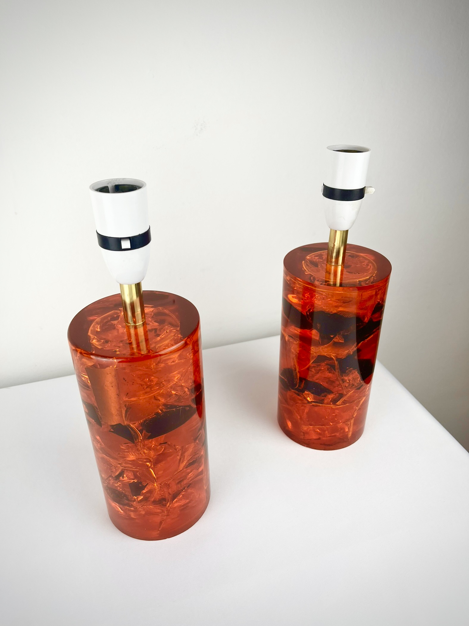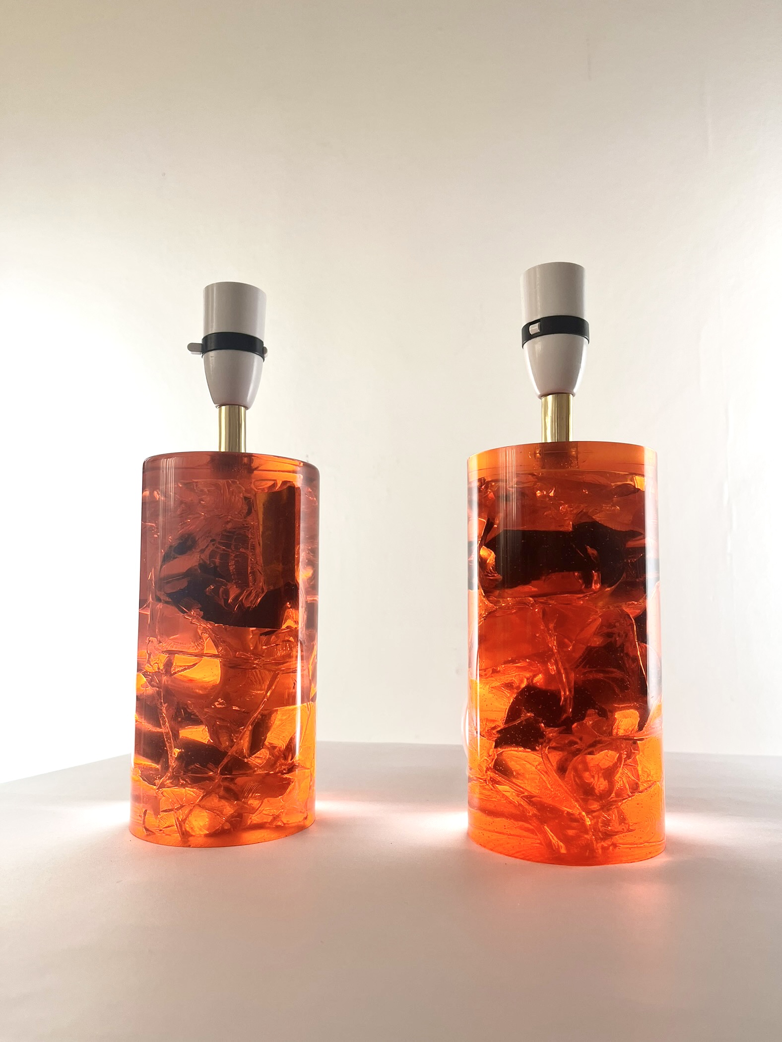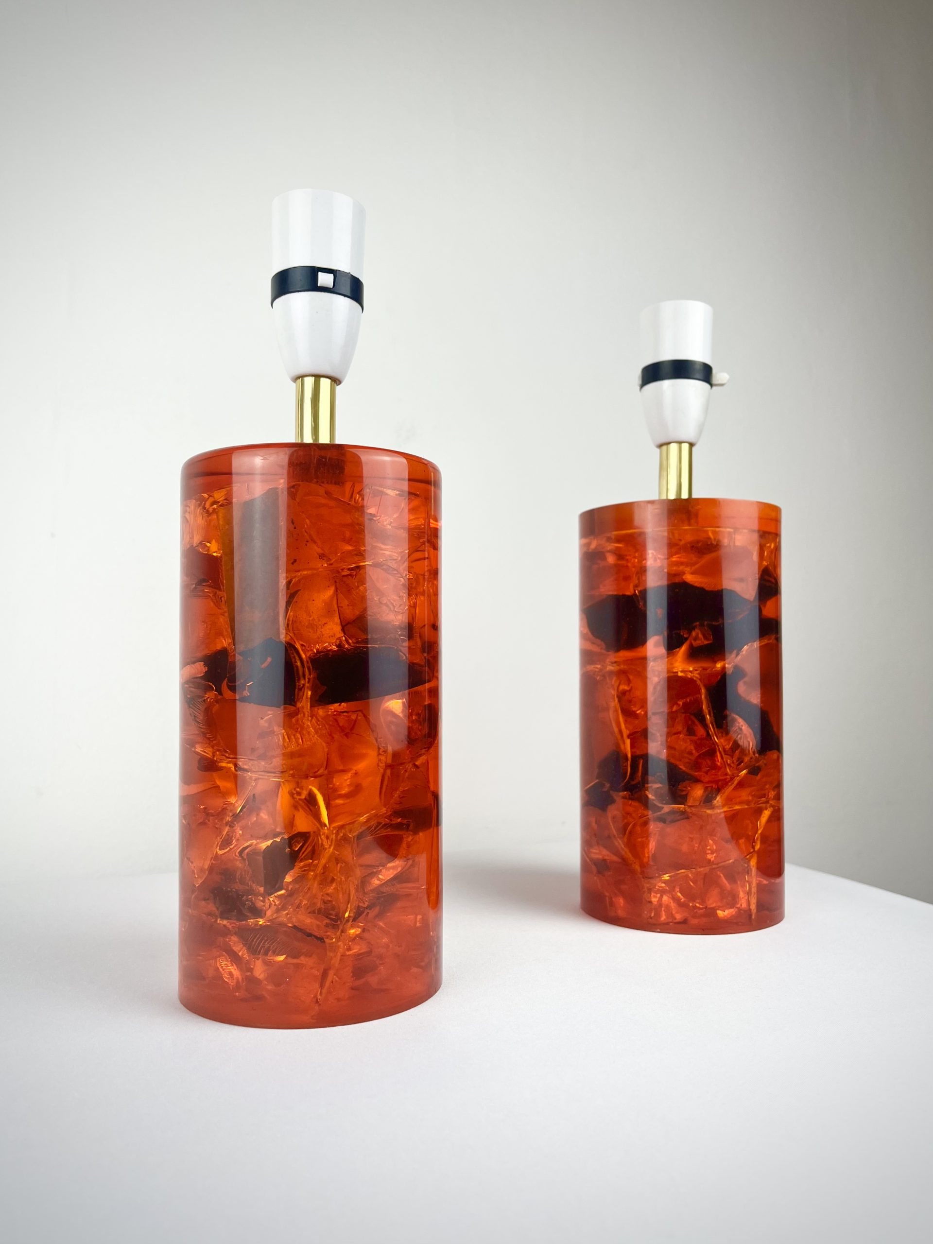 These solid resin lamps with sculptural fractured interiors come in very good vintage condition, have been recently PAT tested and are ready to pair with shades of your choice.