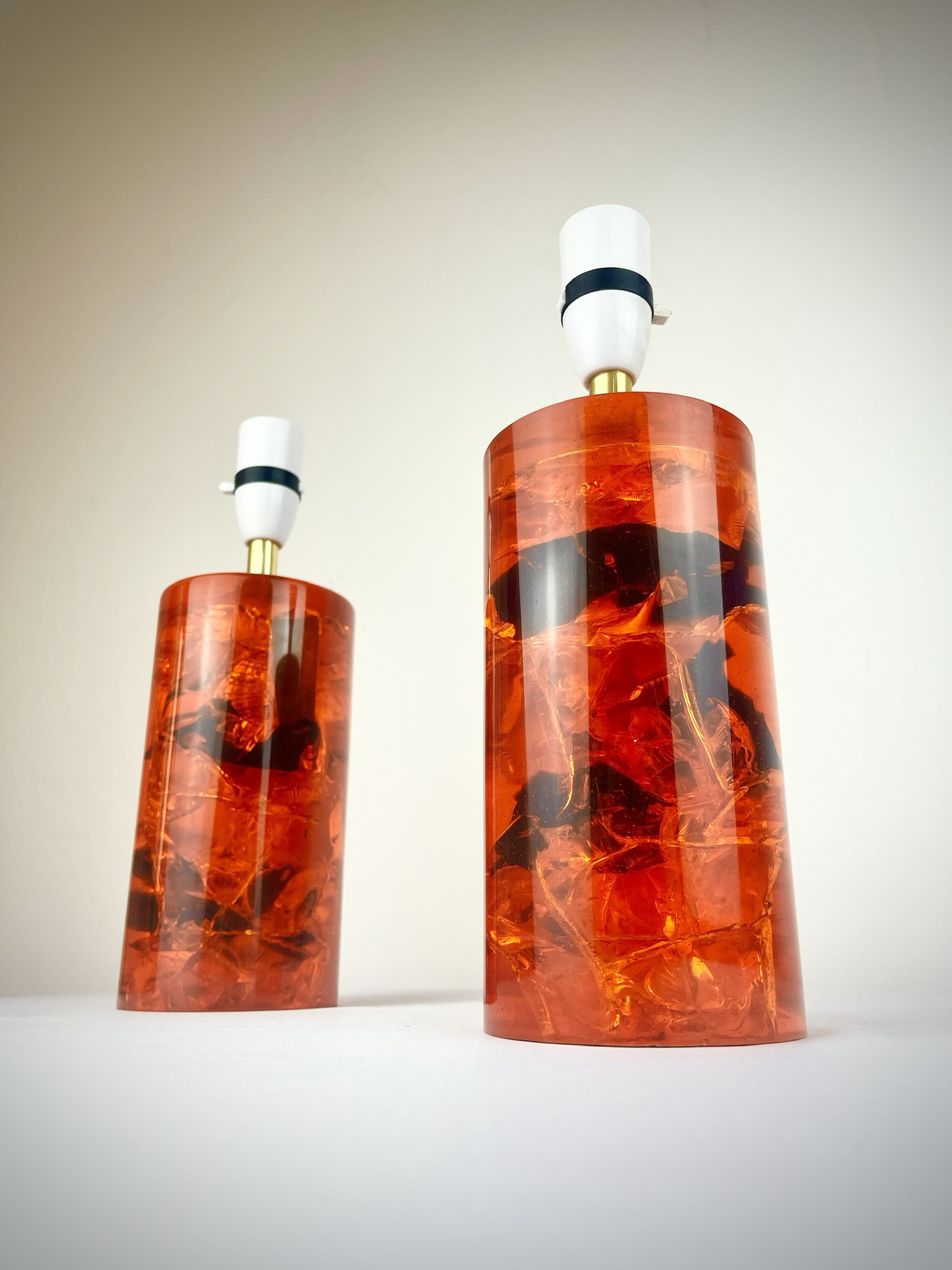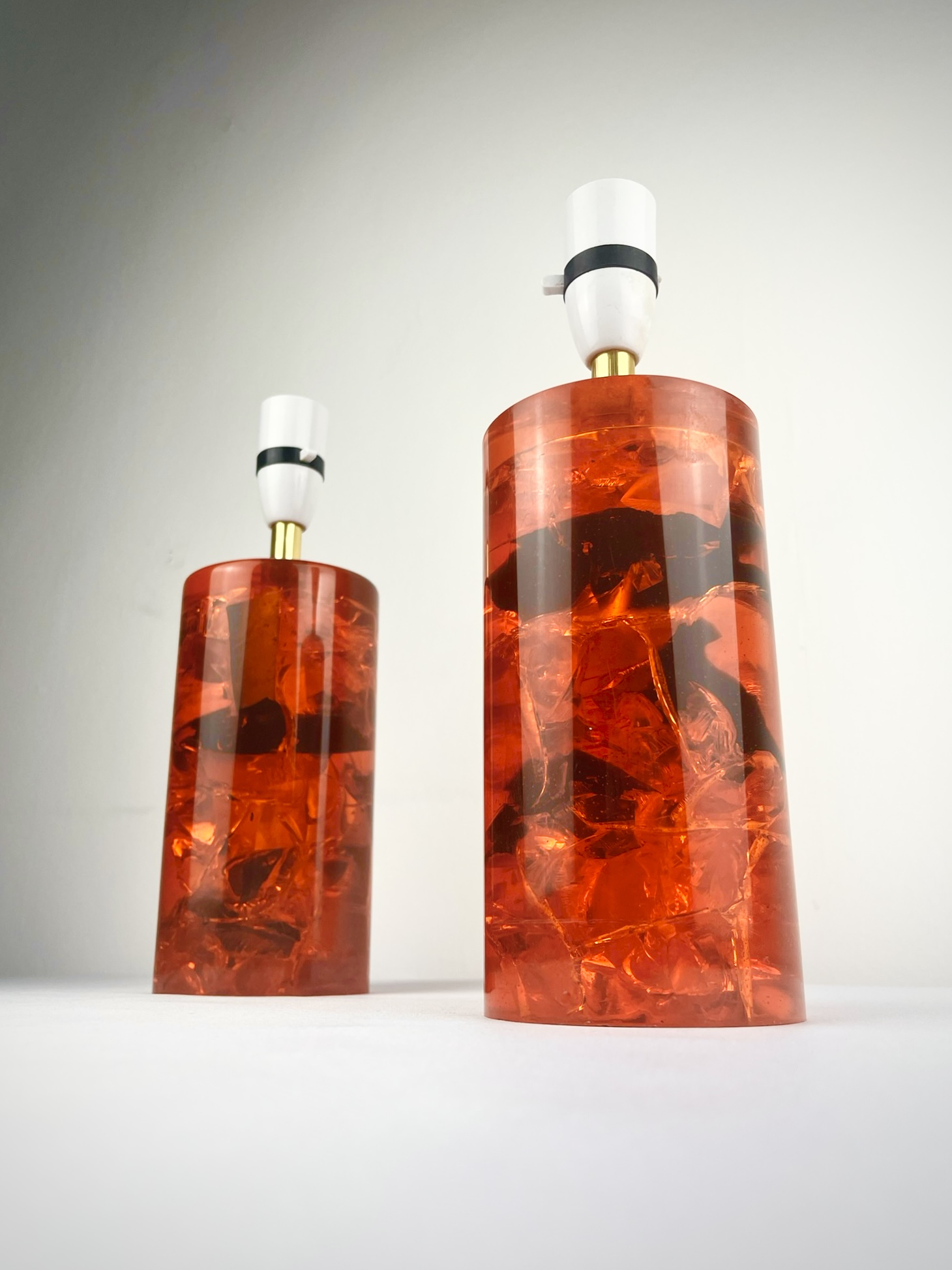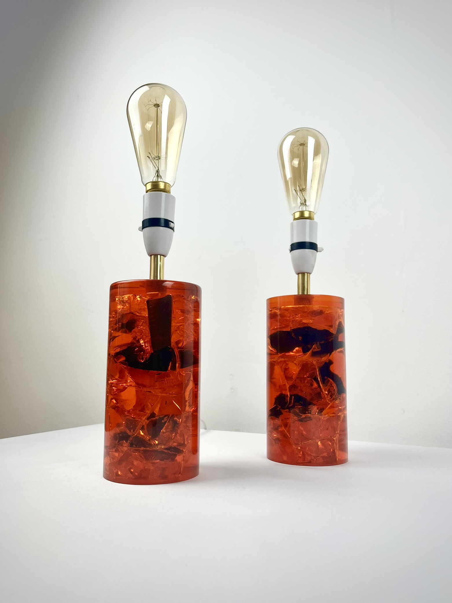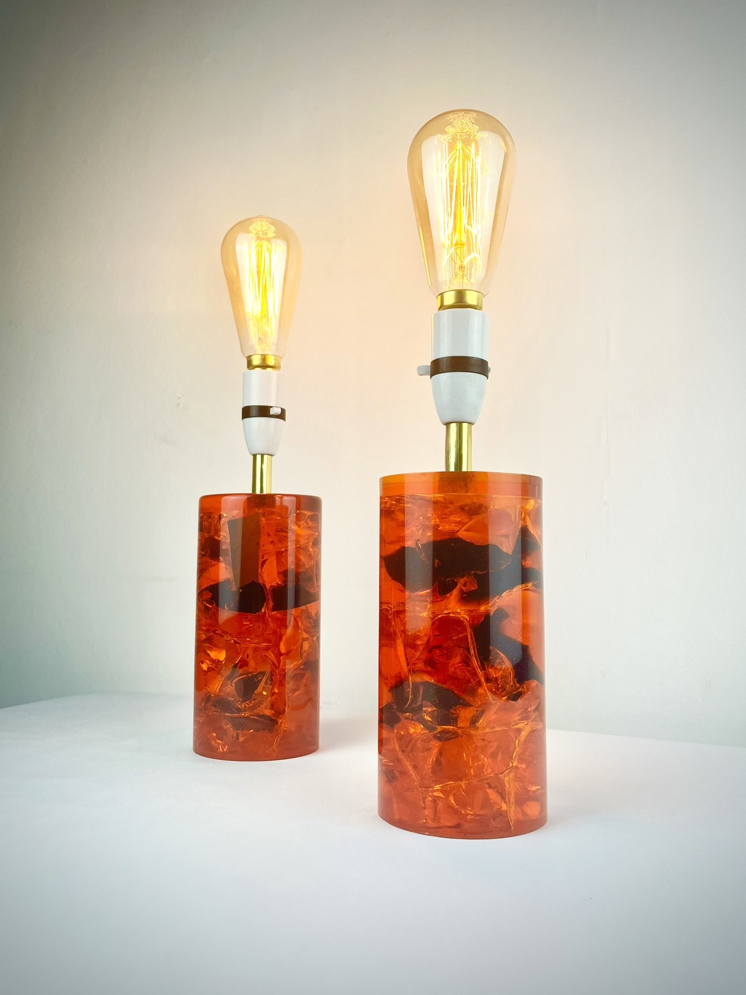 These solid resin lamps with sculptural fractured interiors come in very good vintage condition, have been recently PAT tested and are ready to pair with shades of your choice.