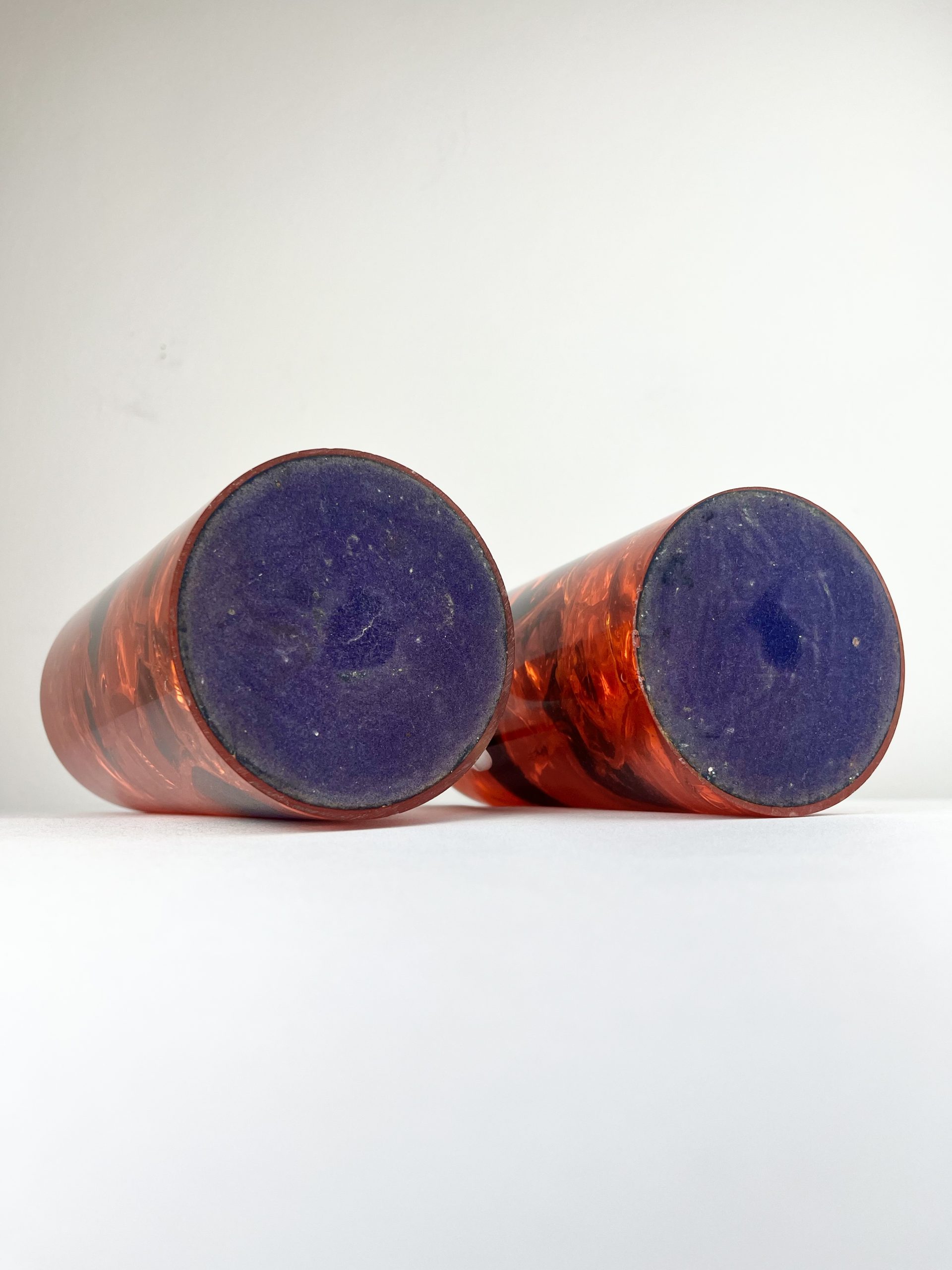 An awesome pair of mid-century ‘Shatterline’ lamp bases, in orange.